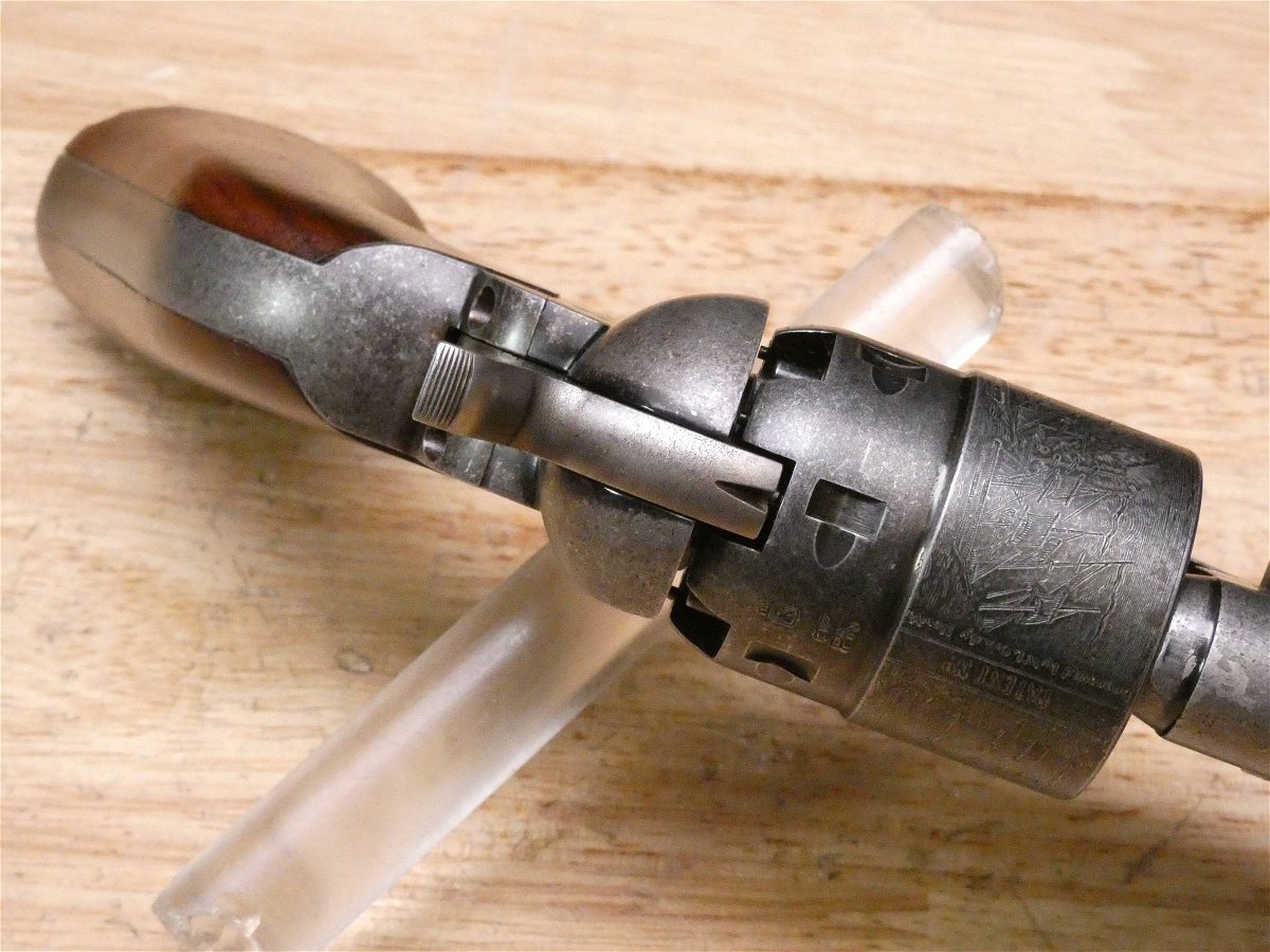 For sale is a Pietta 1860 Army revolver in .44 Cal. Serial number- P134982. This 1851 is in great condition and looks to be unfired. The 1860 Army revolver was adopted by the U.S. Ordnance and became very popular with mounted troops because of its easy handling, superior balance and excellent ballistics. This 6-shot, .44 caliber, round-barrel percussion revolver became very popular with mounted troops and went on to be the issue sidearm for the U.S. Army for many years. This authentic reproduction is 44 Caliber with a round barrel, brass trigger guard, 6-shot cylinder, fixed sights and walnut grips. Note: The pin to lock the barrel in place doesn't seen to seat correctly. V2-I4-NV Barrel Length: 8 Bore condition: Excellent Year Manufactured: 2019