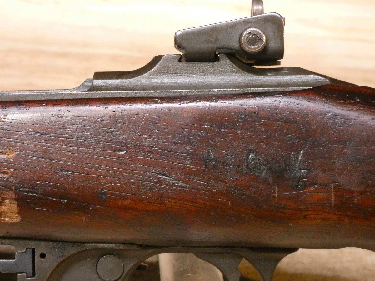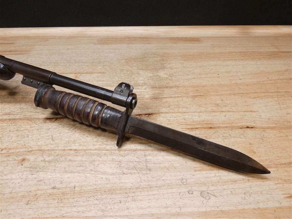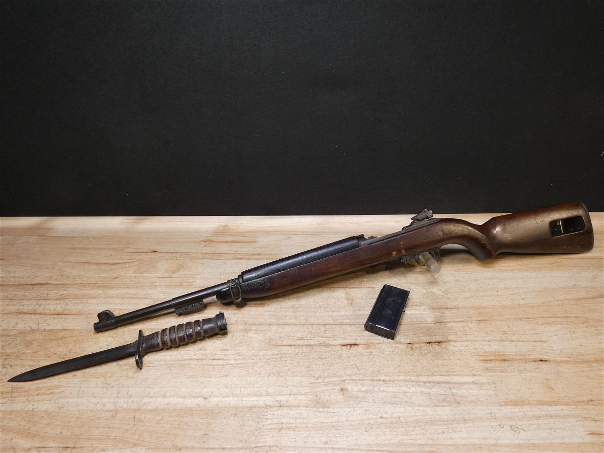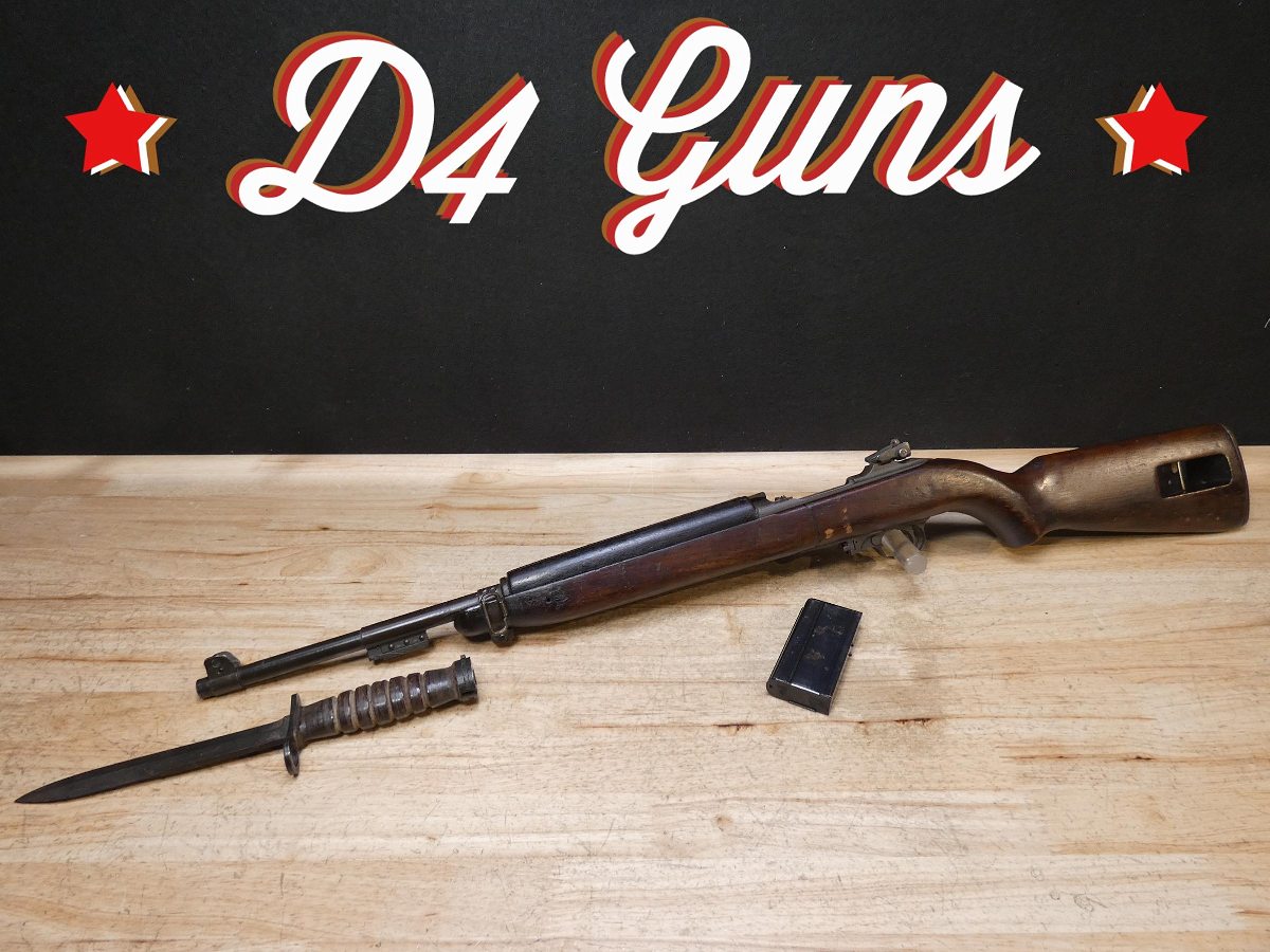 For sale is a Quality Hardware M1-Carbine semi-automatic rifle in .30 Cal Carbine. Serial number – 1620760. The barrel stamp indicates a June 1943 MFG date. This rifle is in fair condition and comes with a U.S.M4 Utica bayonet, and 1 magazine. Quality Hardware only made M1 receivers during the war and depended on other manufactures for other parts such as the stock and barrel. This rifle has an Underwood barrel and flaming bomb stamp. This is a perfect example of a wartime M1 carbine. V2-K1 Barrel Length: 18 Bore condition: Good Year Manufactured: 1943