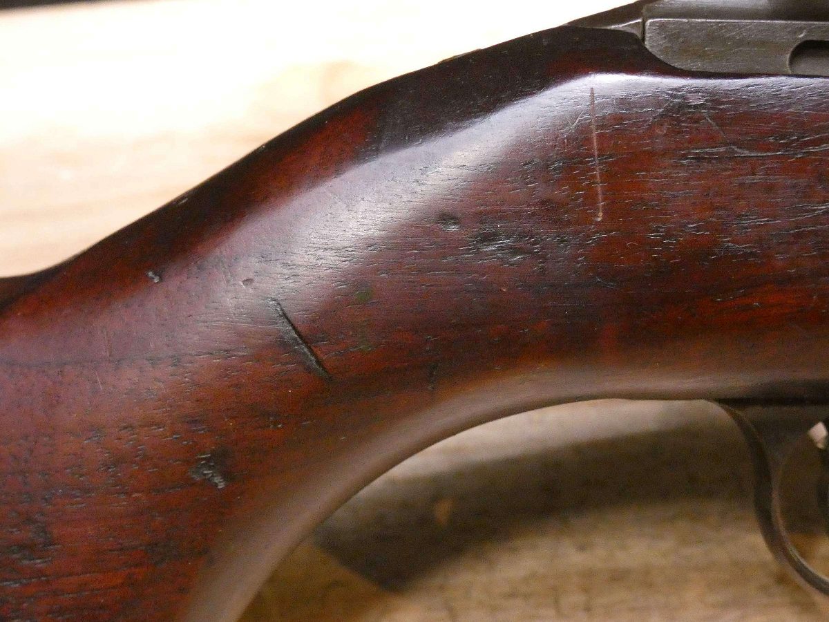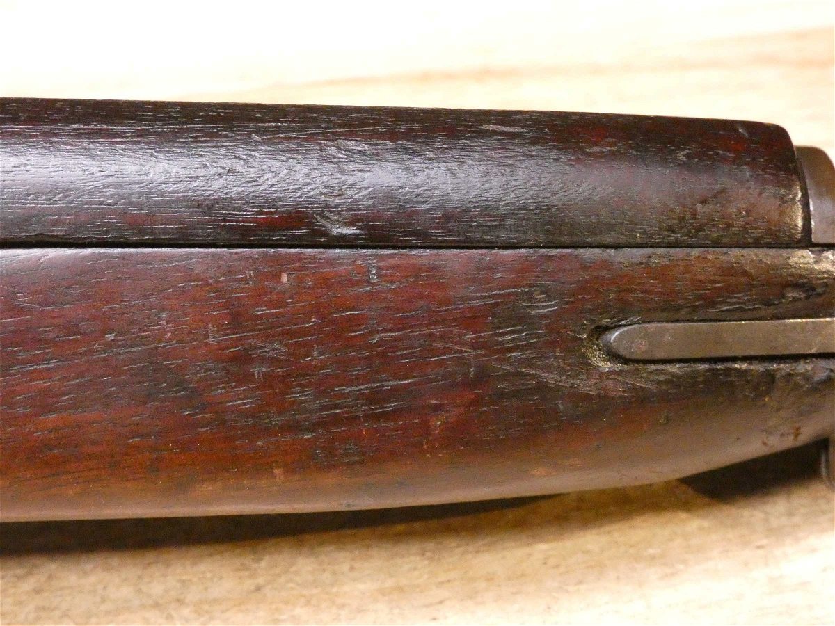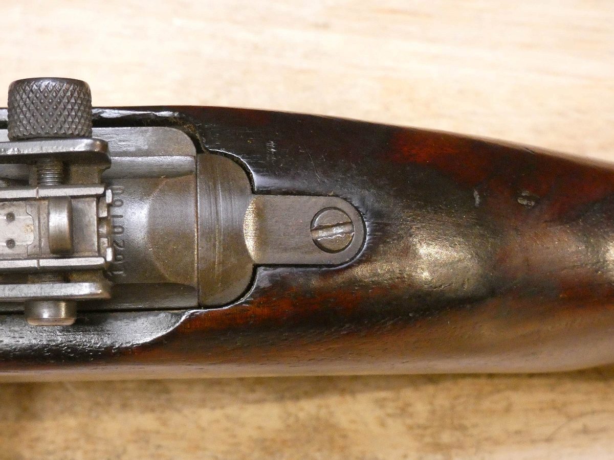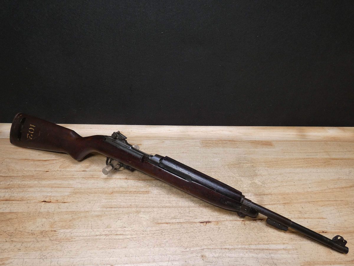 For sale is a Quality Hardware M1-Carbine semi-automatic rifle in .30 Cal Carbine. Serial number – 1620760. The barrel stamp indicates a June 1943 MFG date. This rifle is in fair condition and comes with a U.S.M4 Utica bayonet, and 1 magazine. Quality Hardware only made M1 receivers during the war and depended on other manufactures for other parts such as the stock and barrel. This rifle has an Underwood barrel and flaming bomb stamp. This is a perfect example of a wartime M1 carbine. V2-K1 Barrel Length: 18 Bore condition: Good Year Manufactured: 1943