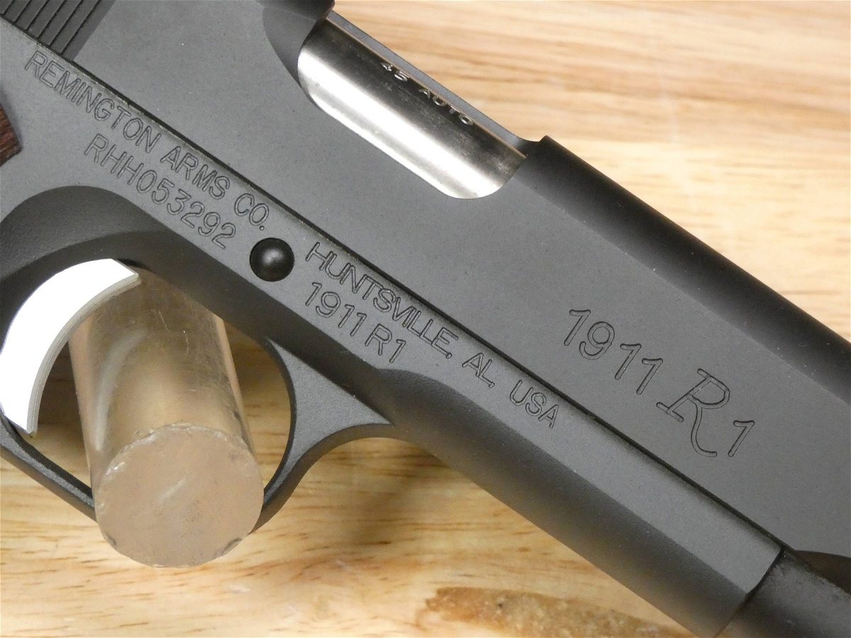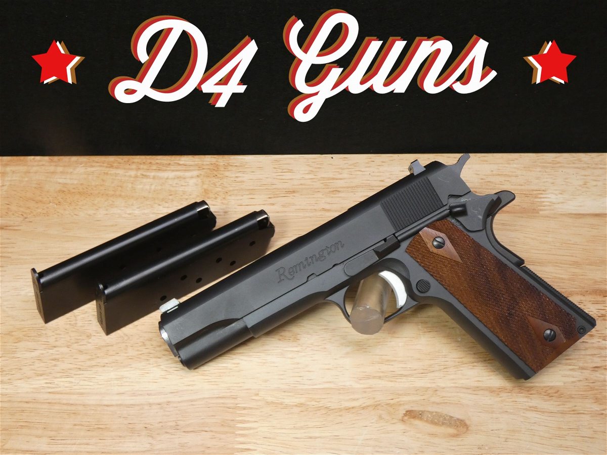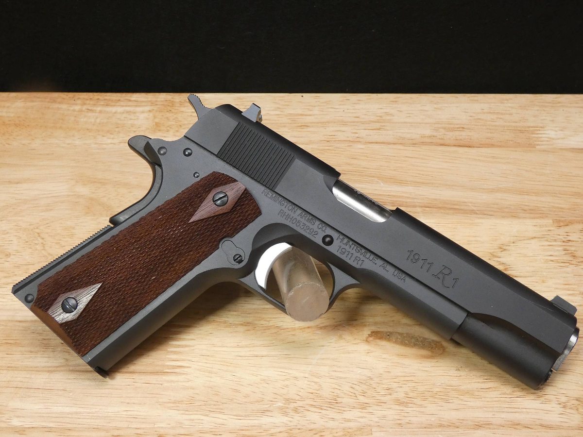 For sale is a Remington 1911R1 semi-automatic pistol in .45ACP. Serial number- RHH053292. This pistol is in great condition and comes with (2) 7-round magazines. A sweet-shooting advancement of America's most reliable, accurate, and enduring handgun. It features a crisp trigger, dovetailed rear and front sights, precision-machined slide and frame, and checkered double-diamond walnut grips. V2-I4 Barrel Length: 5 Bore condition: Good