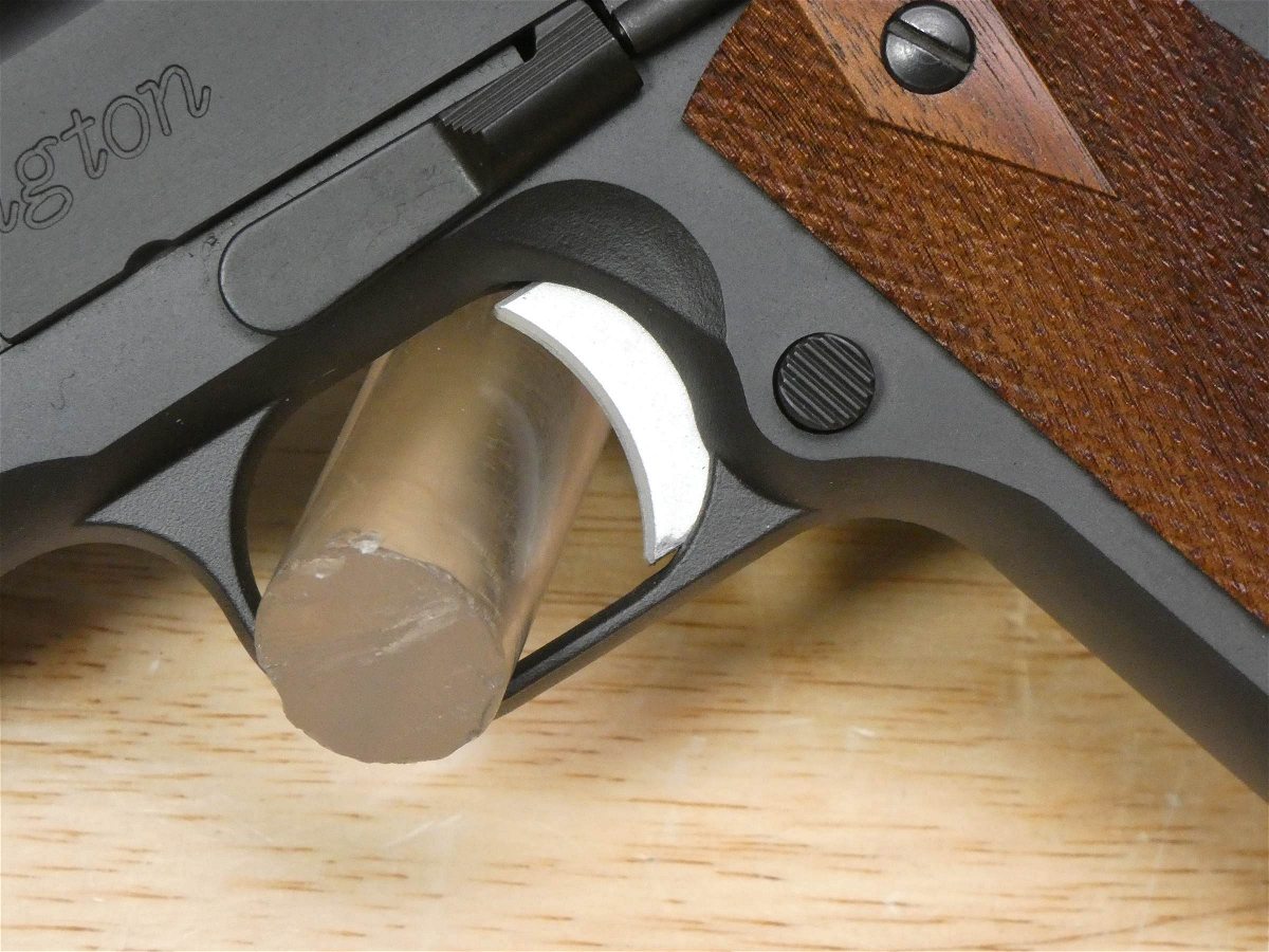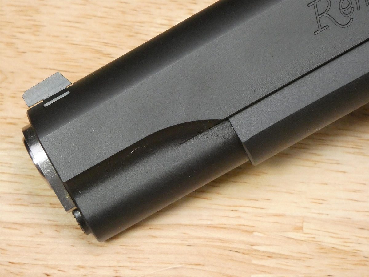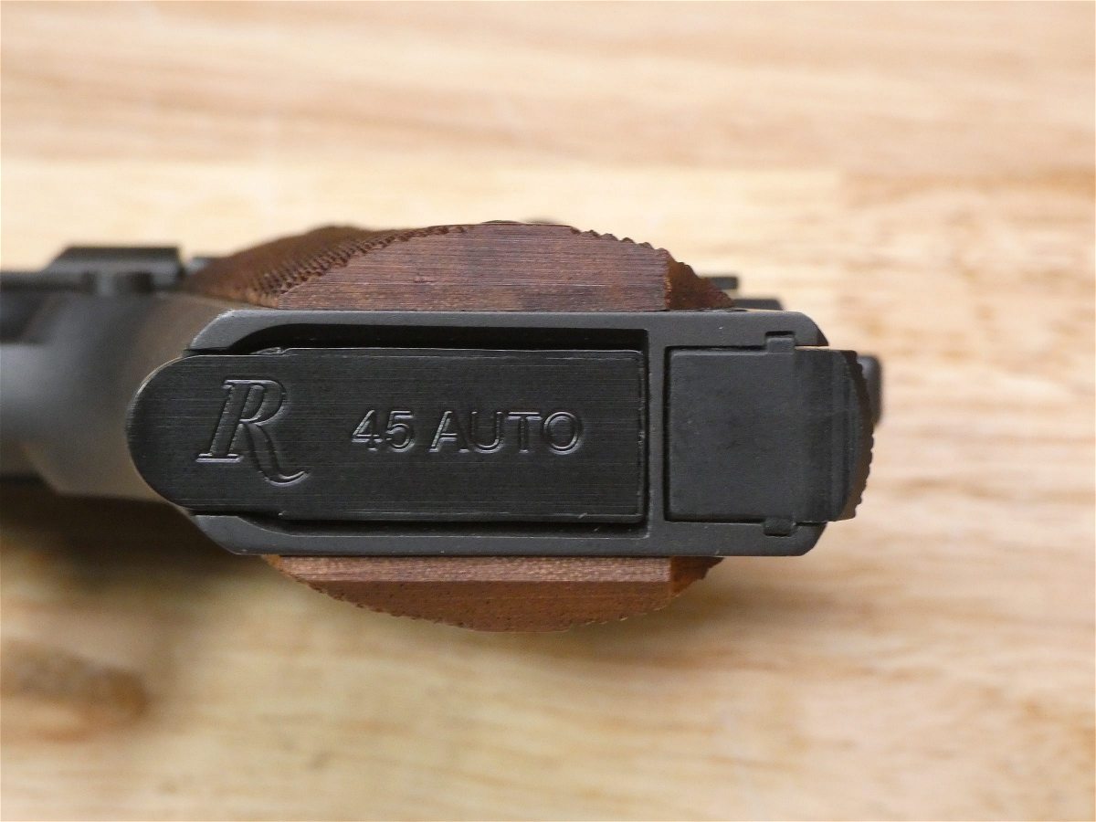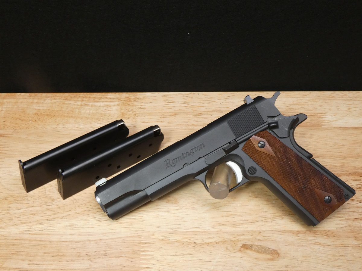 For sale is a Remington 1911R1 semi-automatic pistol in .45ACP. Serial number- RHH053292. This pistol is in great condition and comes with (2) 7-round magazines. A sweet-shooting advancement of America's most reliable, accurate, and enduring handgun. It features a crisp trigger, dovetailed rear and front sights, precision-machined slide and frame, and checkered double-diamond walnut grips. V2-I4 Barrel Length: 5 Bore condition: Good