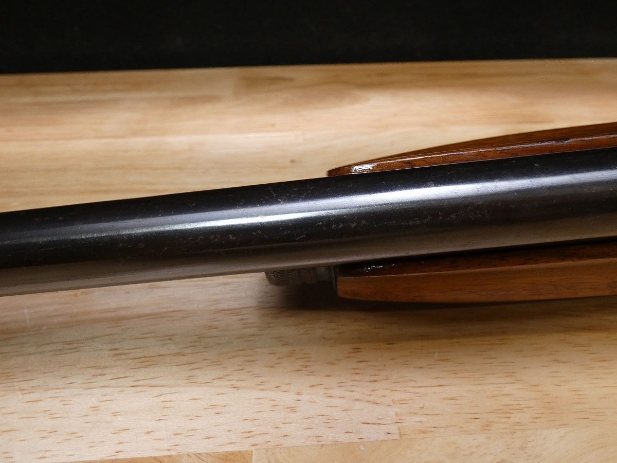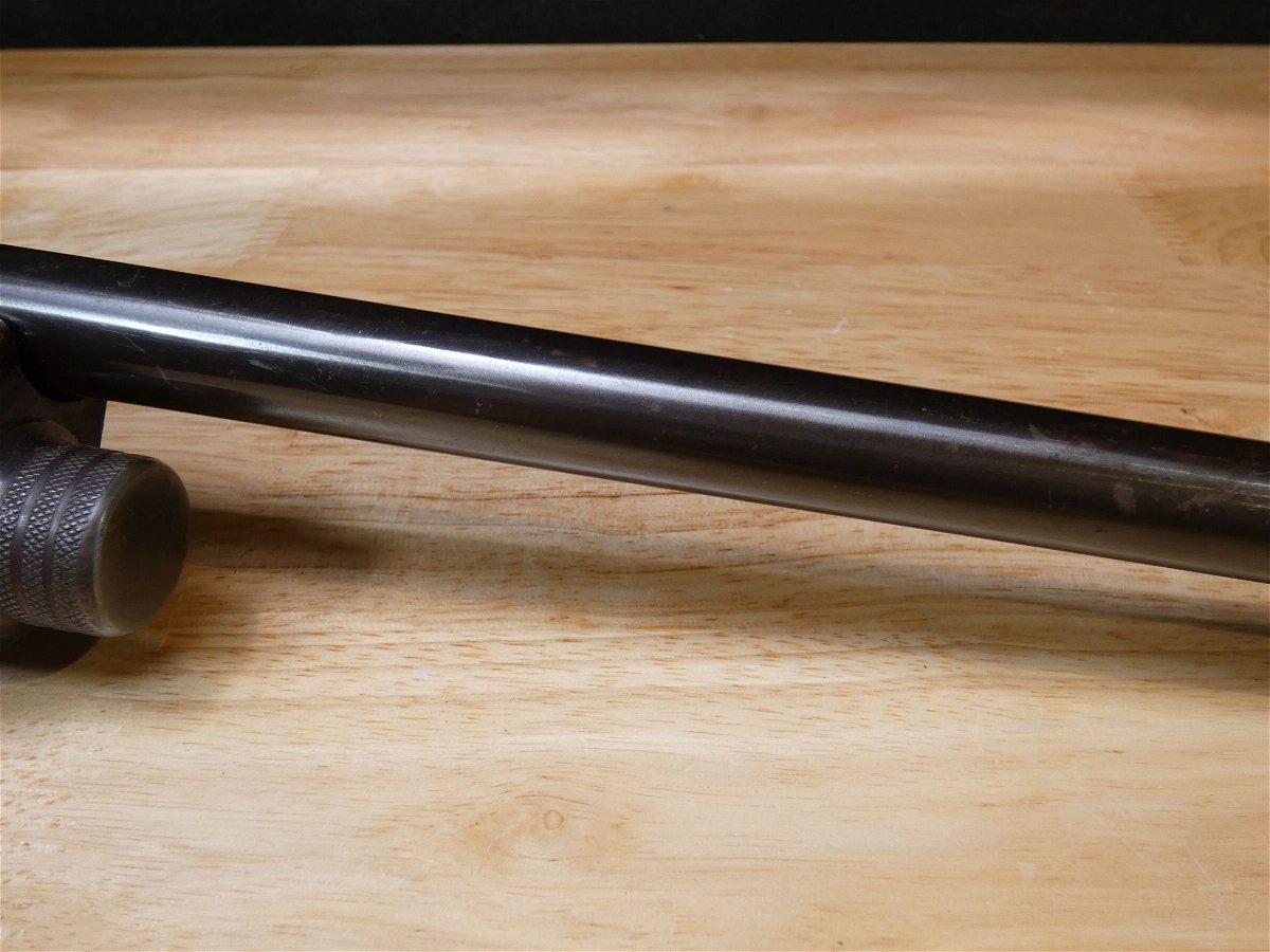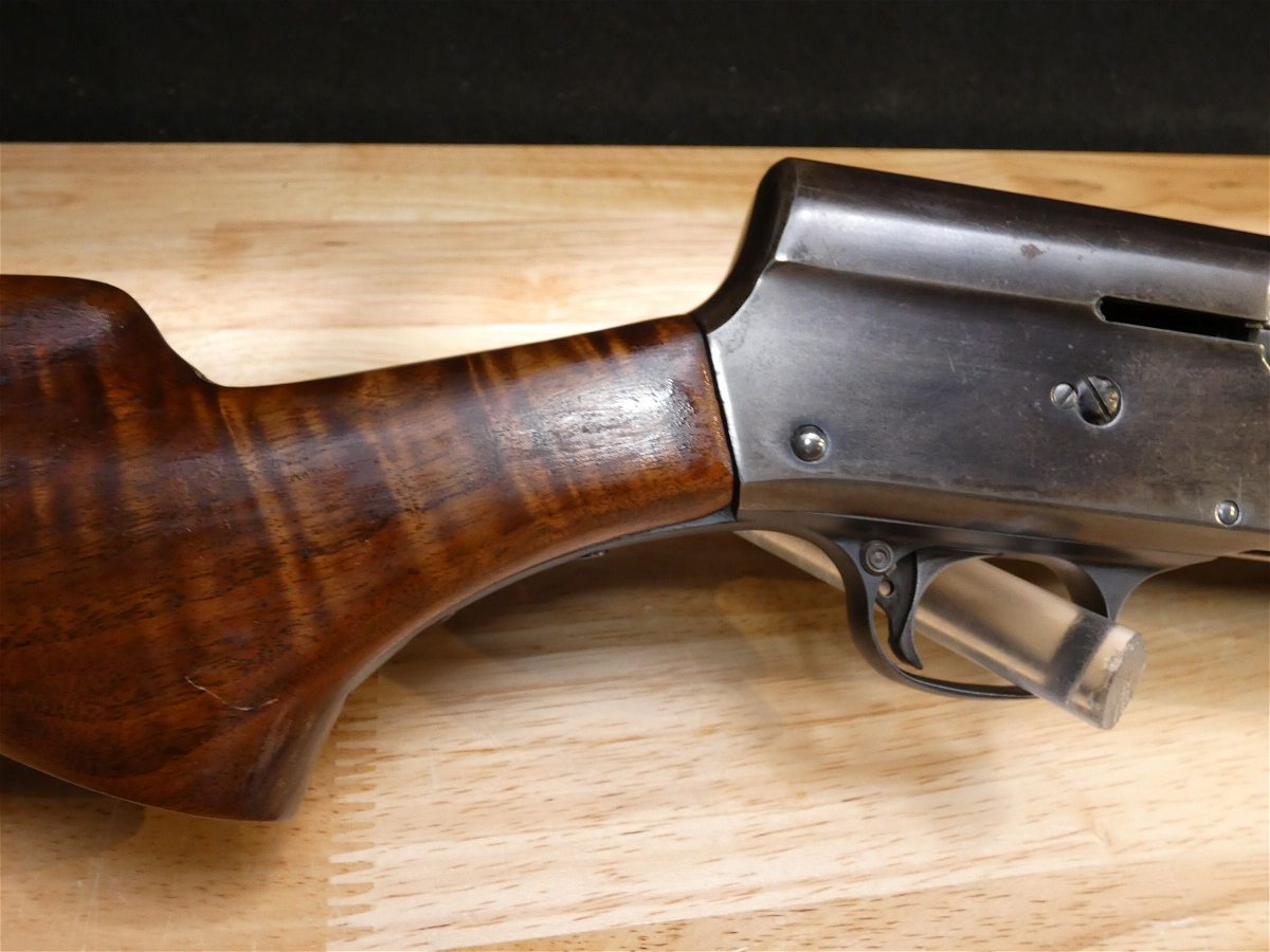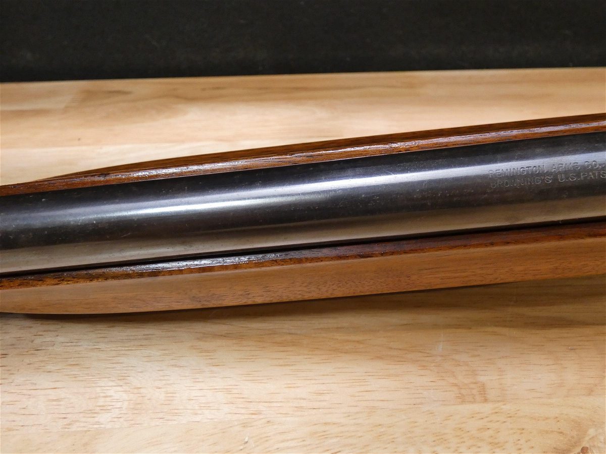For sale is a Remington Model 11 semi automatic shotgun in 16 gauge. Serial number- 1510353. This Model 11 is in good condition and features a 30" barrel with an excellent bore. No choke or chamber size is indicated. The famed Remington Model 11 was America’s first autoloading shotgun and was offered in 12-gauge, 16-gauge, and 20-gauge models. It had good ergonomics, was hammerless, recoil-operated, used side ejection, and had a tube magazine. Its profile was fairly classic except for its slightly tall raised receiver profile. The Model 11 enjoyed a popular 42-year production run from 1905 to 1947 that accounted for 850,000 built. The Model 11 was designed by none other than legendary John F. Browning. V1-B4 Barrel Length: 30 Bore condition: Excellent
