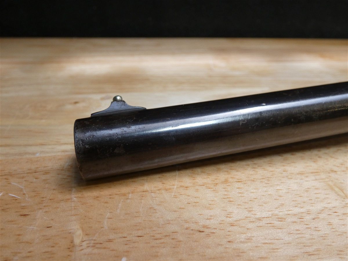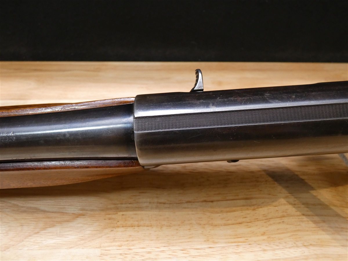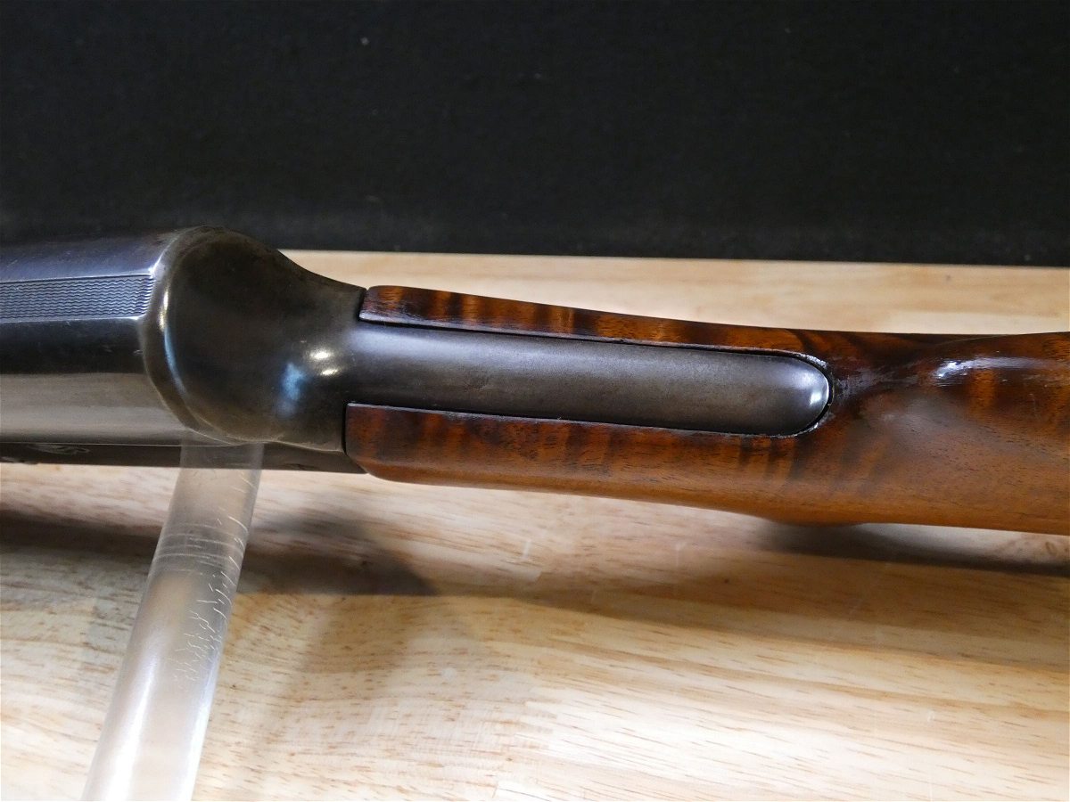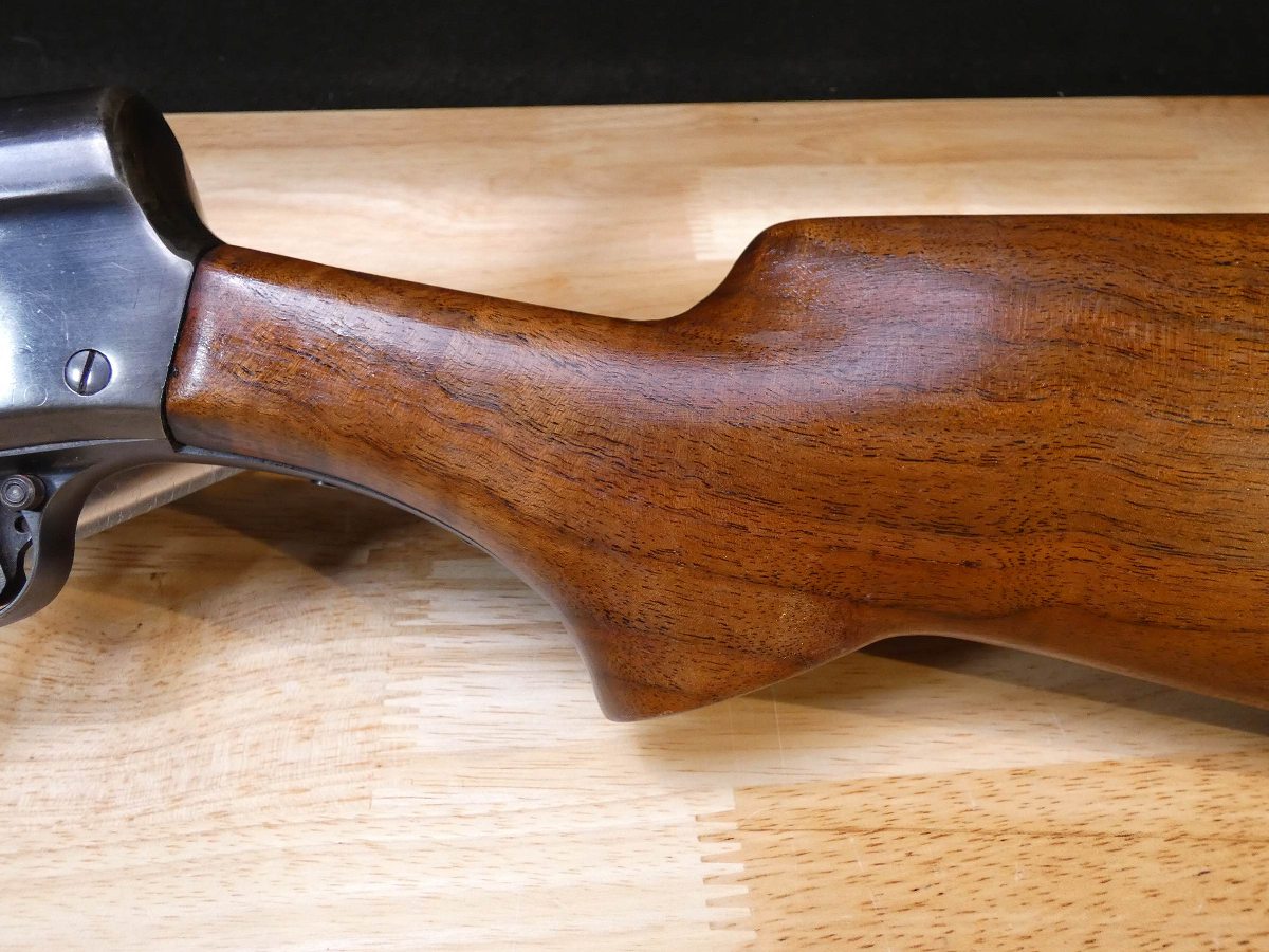 For sale is a Remington Model 11 semi automatic shotgun in 16 gauge. Serial number- 1510353. This Model 11 is in good condition and features a 30" barrel with an excellent bore. No choke or chamber size is indicated. The famed Remington Model 11 was America’s first autoloading shotgun and was offered in 12-gauge, 16-gauge, and 20-gauge models. It had good ergonomics, was hammerless, recoil-operated, used side ejection, and had a tube magazine. Its profile was fairly classic except for its slightly tall raised receiver profile. The Model 11 enjoyed a popular 42-year production run from 1905 to 1947 that accounted for 850,000 built. The Model 11 was designed by none other than legendary John F. Browning. V1-B4 Barrel Length: 30 Bore condition: Excellent