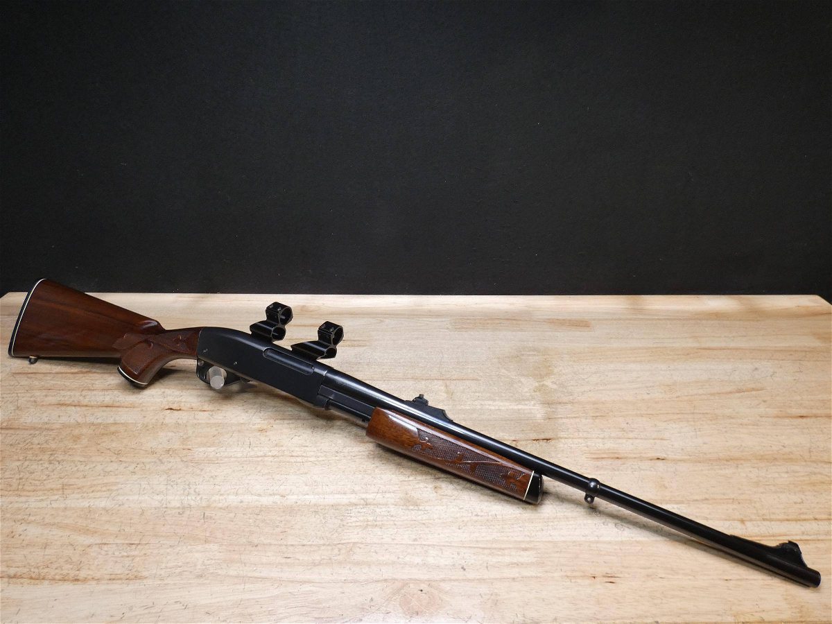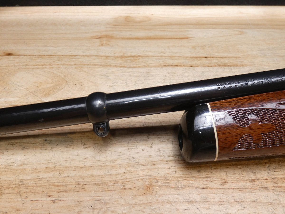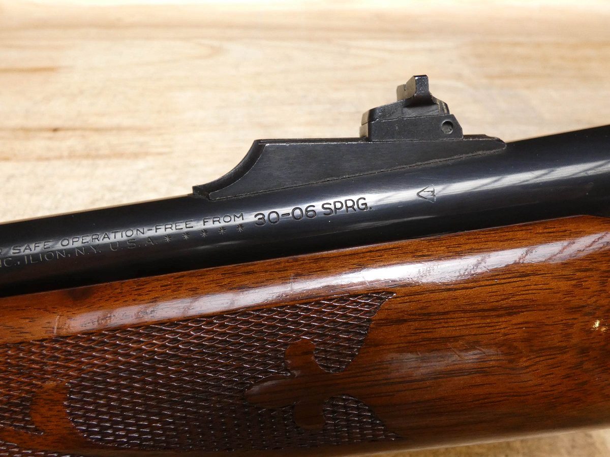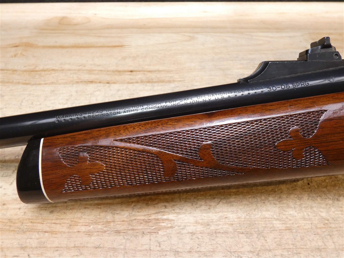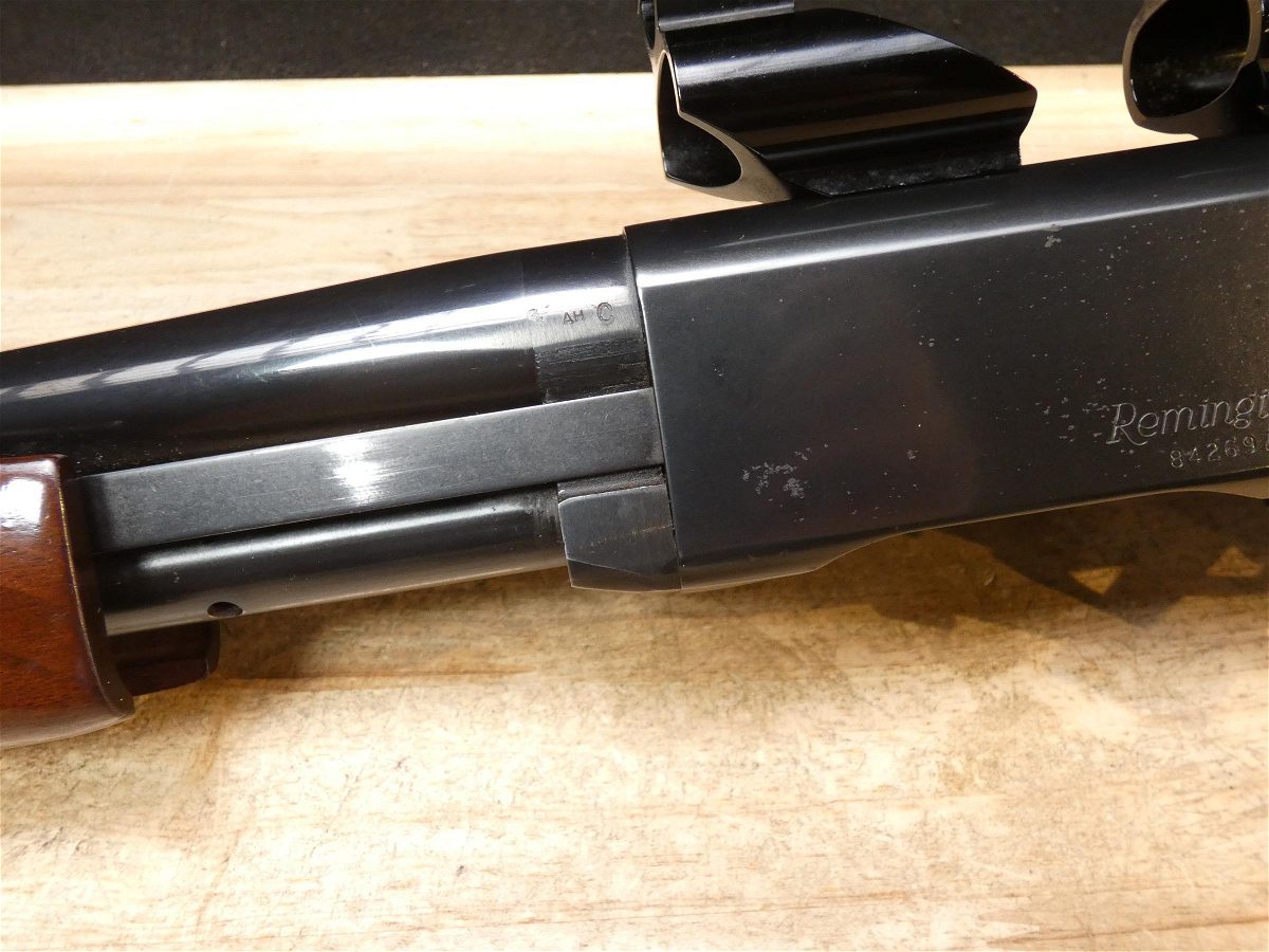 For sale is a Remington Model 7600 pump-action rifle in .30-06 SPRG. Serial number- 8426979. According to the barrel stamps we believe this rifle was manufactured in 1987. This 7600 is in good condition and comes with see through scope rings and a 4 round magazine. The Model 7600 is a progression from the original Model 760 pump-action rifle which Remington produced from 1952 to 1981. The ever-popular Model 7600 is one of the most proven deerslayers in the woods. You can't find a big-game rifle with a better combination of practical shooting features: twin action bars provide slick, smooth operation for rapid repeat shots; a quick-release, drop-out four-round magazine that loads and unloads instantly; and a free-floated barrel that matches the accuracy of the best bolt guns. An ideal cross-over rifle for pump-gun wingshooters. V1-F1 Barrel Length: 22 Bore condition: Excellent Year Manufactured: 1987
