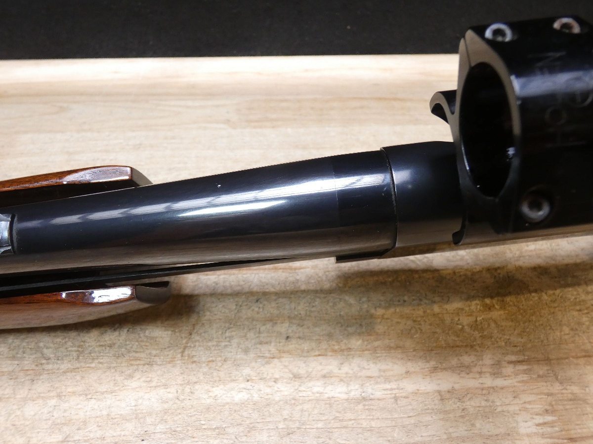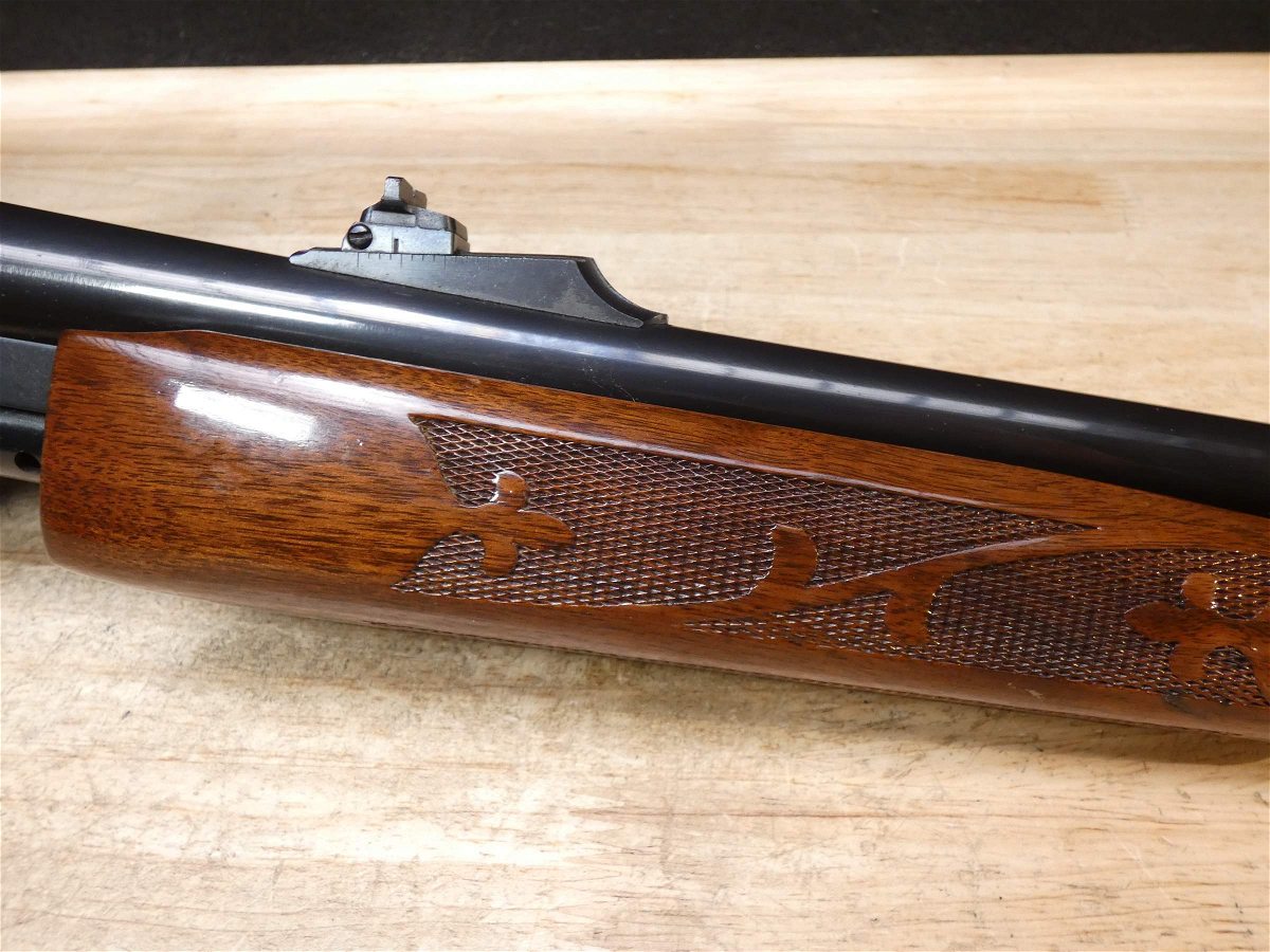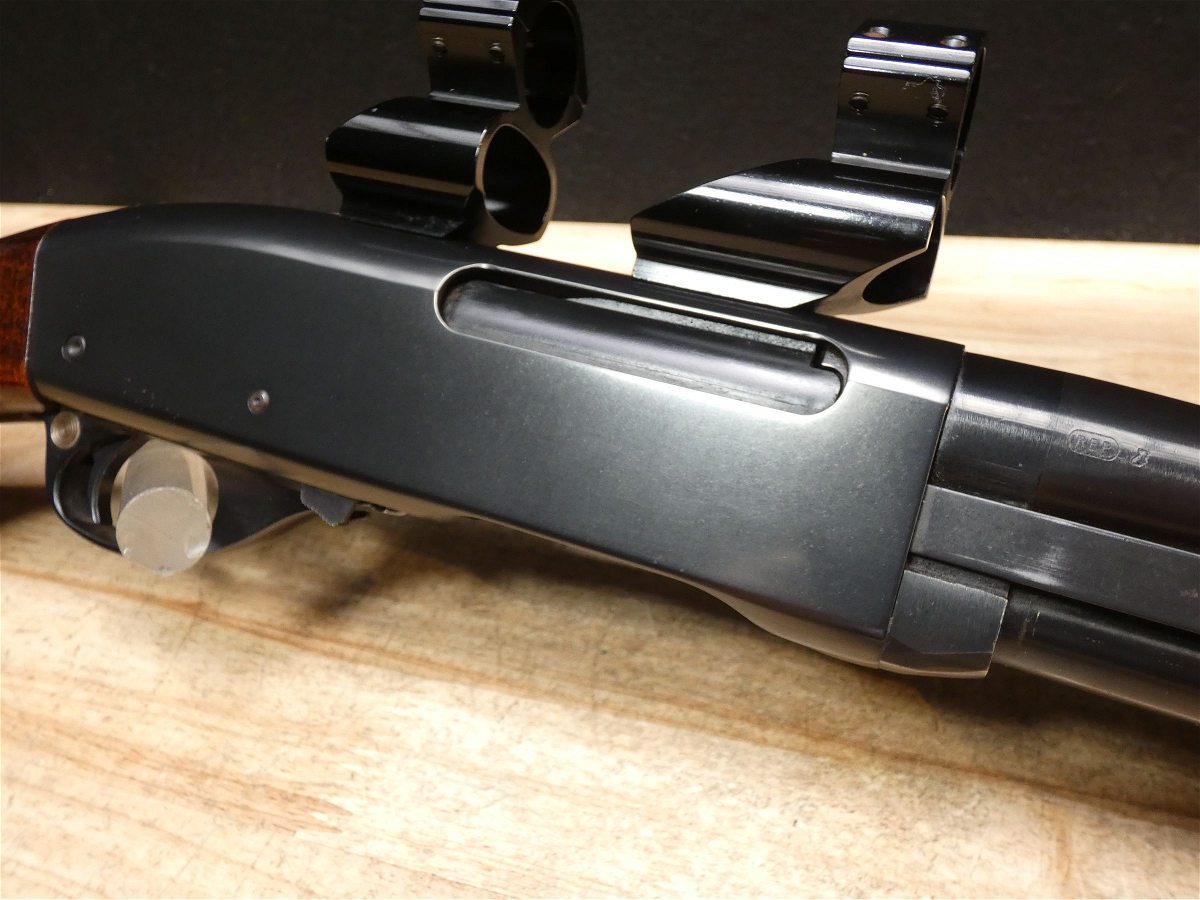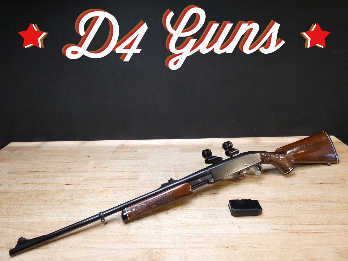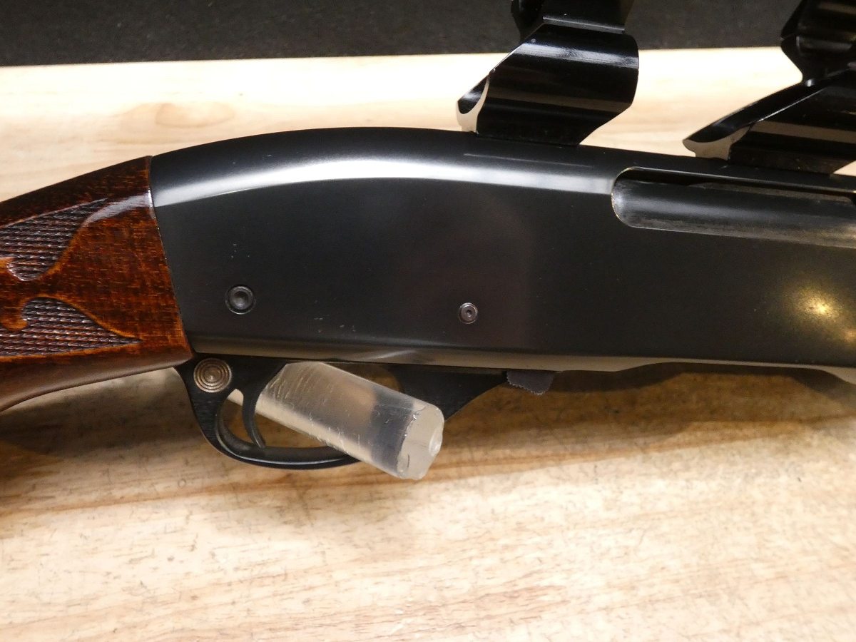 For sale is a Remington Model 7600 pump-action rifle in .30-06 SPRG. Serial number- 8426979. According to the barrel stamps we believe this rifle was manufactured in 1987. This 7600 is in good condition and comes with see through scope rings and a 4 round magazine. The Model 7600 is a progression from the original Model 760 pump-action rifle which Remington produced from 1952 to 1981. The ever-popular Model 7600 is one of the most proven deerslayers in the woods. You can't find a big-game rifle with a better combination of practical shooting features: twin action bars provide slick, smooth operation for rapid repeat shots; a quick-release, drop-out four-round magazine that loads and unloads instantly; and a free-floated barrel that matches the accuracy of the best bolt guns. An ideal cross-over rifle for pump-gun wingshooters. V1-F1 Barrel Length: 22 Bore condition: Excellent Year Manufactured: 1987