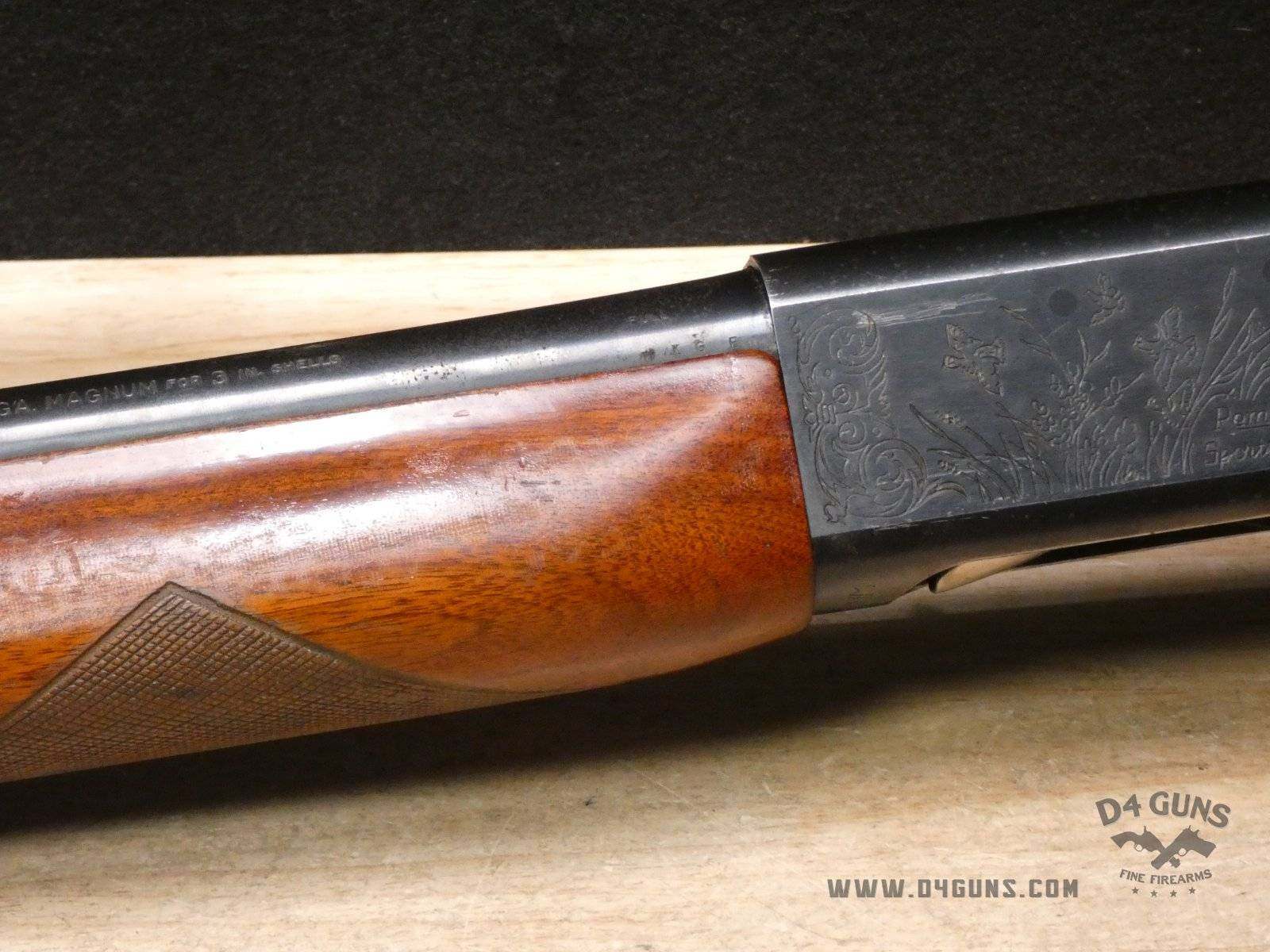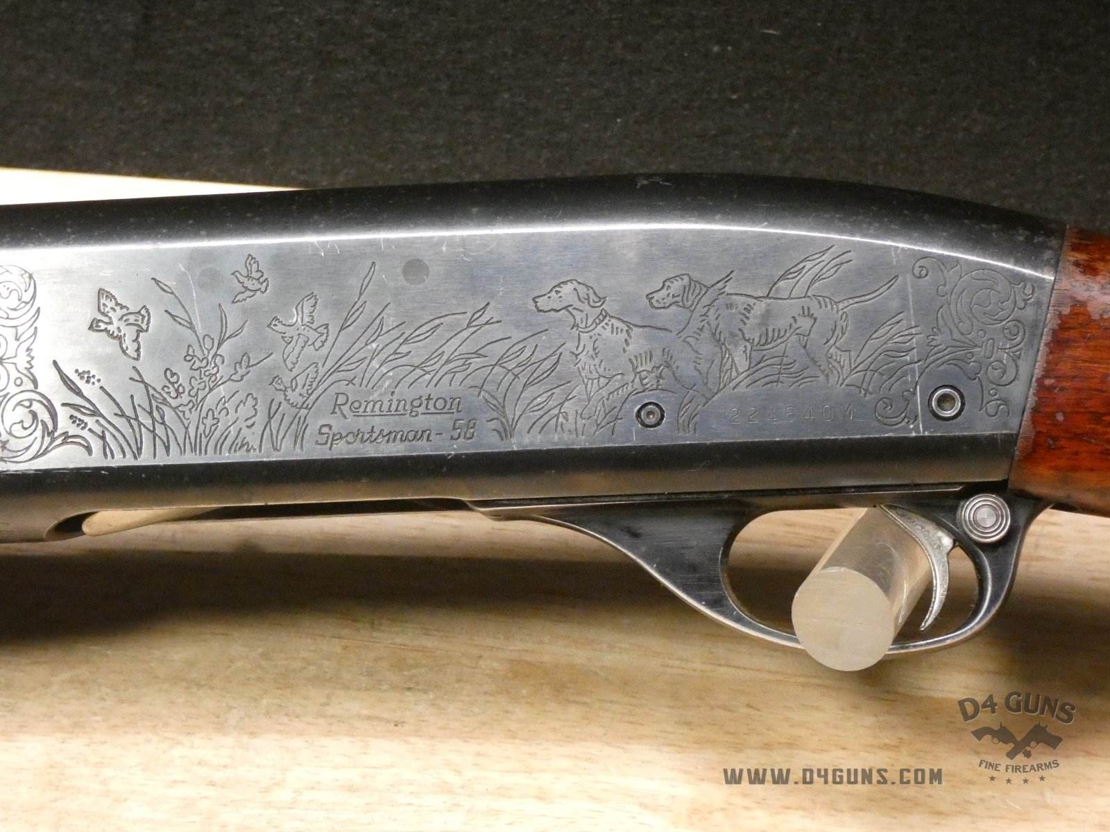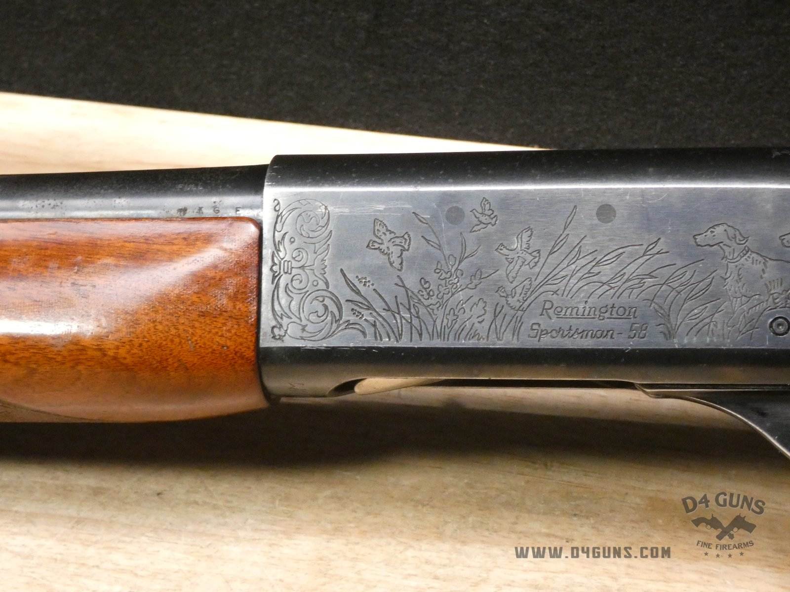 Up for grabs is a Remington Sportsman Model 58 semi-automatic shotgun in 12ga. Serial number- 224640M. This shotgun has a 3" chamber and the barrel is choked as full. The Remington Model 58, also known as the Sportsman 58, is a semi-automatic shotgun manufactured by Remington Arms in the mid-20th century. It was Remington's first gas-operated shotgun and was marketed alongside the recoil-operated Model 11-48. V1-B3 Barrel Length: 28 Bore condition: Good