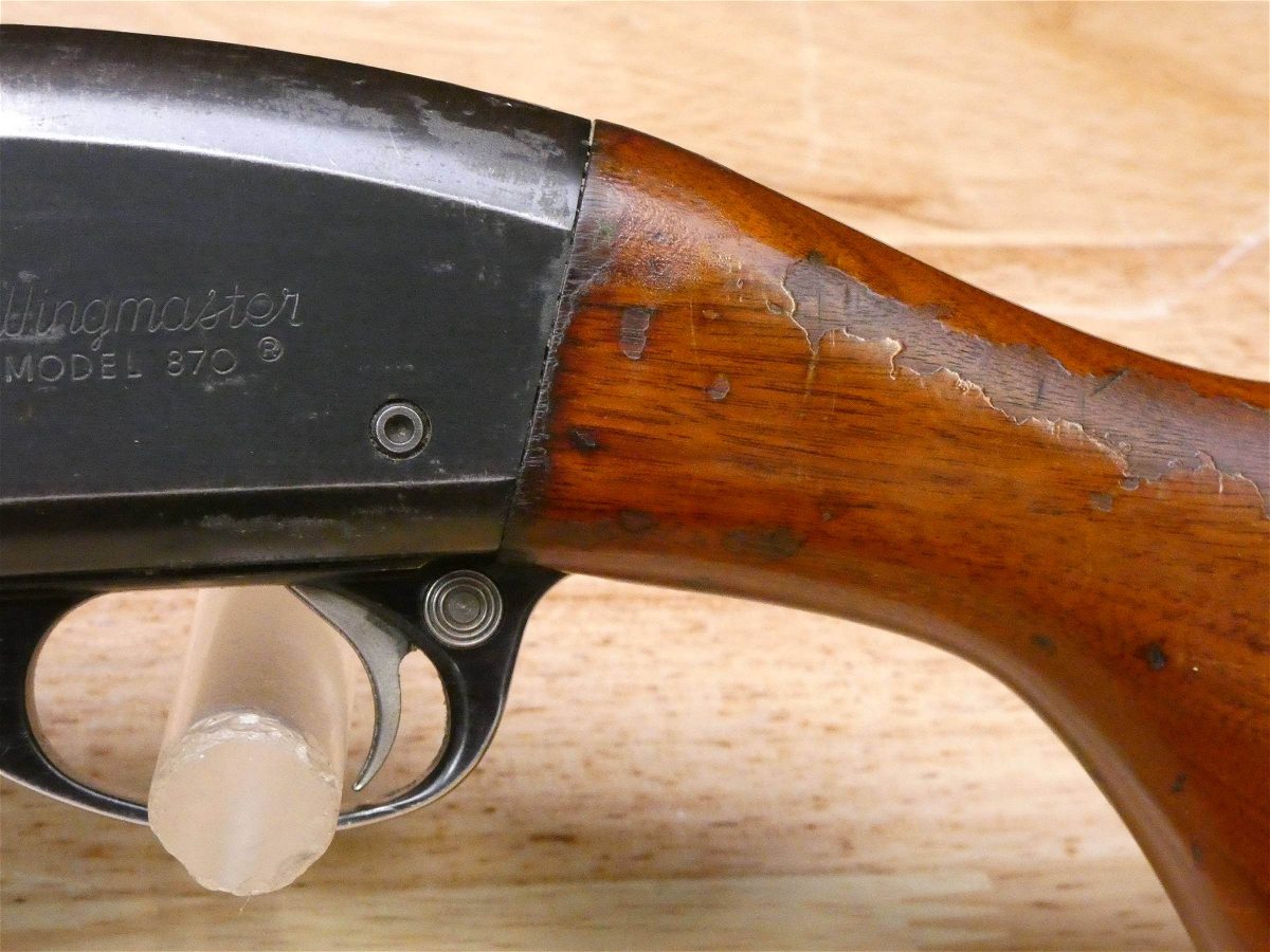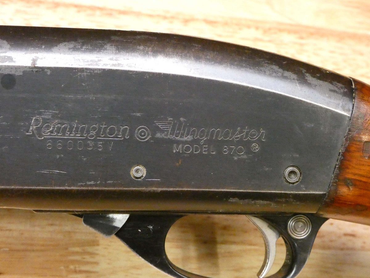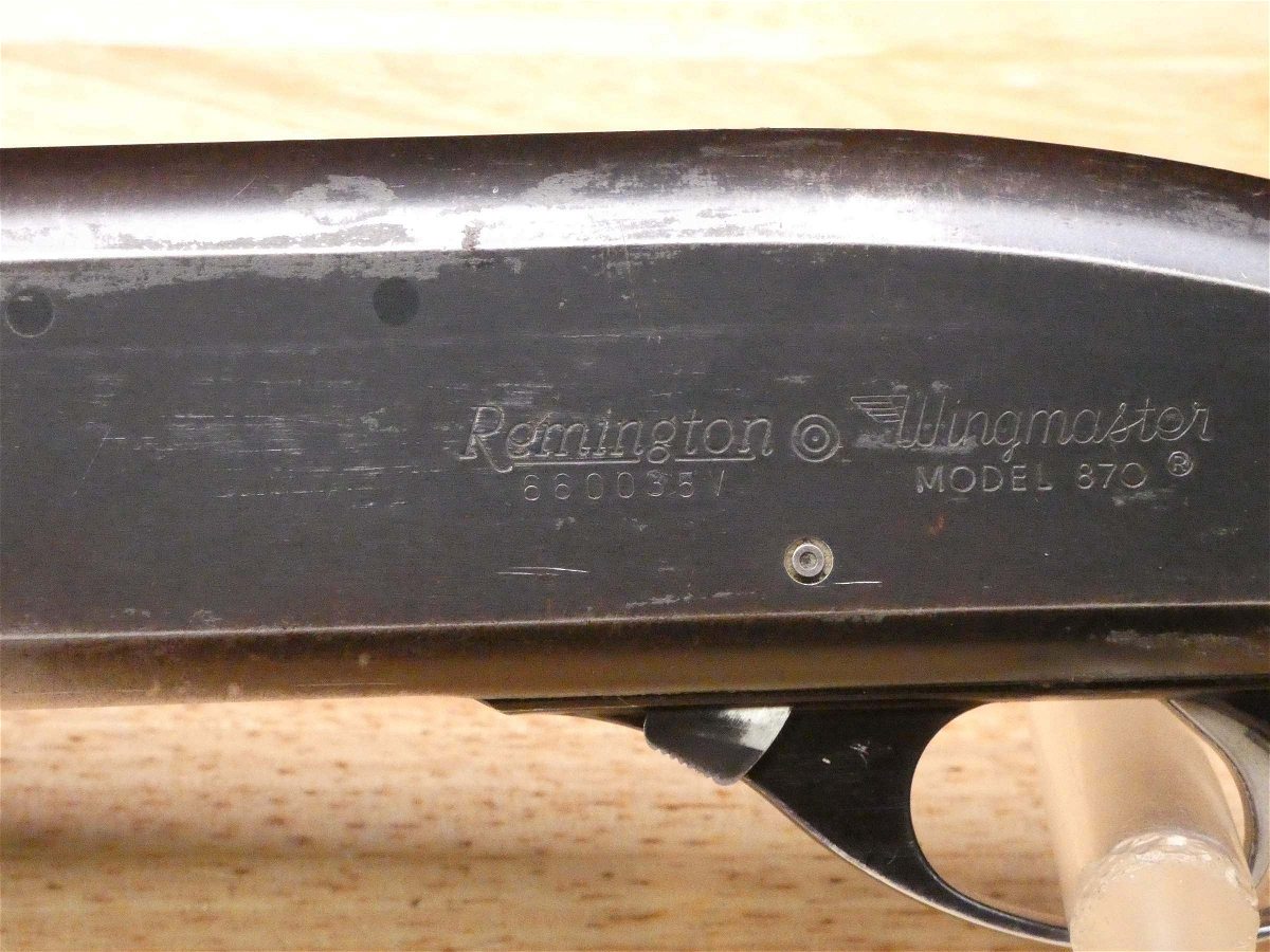 For sale is a Remington Wingmaster Model 870 pump-action shotgun in 12 gauge. Serial number- 660035V. This 870 is in good condition and features a 28" barrel with a modified choke and a 2 3/4" chamber. There is a barrel date stamp but the strikes we light and it is difficult to accurately determine the mfg date. The Model 870 is so smooth and reliable that today – more than 60 years after its introduction – it's still the standard by which all pump shotguns are measured. With a receiver machined from a solid billet of steel, it is the model of enduring strength. True to its original design, the pump glides with silky surety on two twin action bars for the utmost in positive chambering and ejection. These characteristics, along with its flawless balance and natural pointing qualities have made the Model 870 the best-selling, most trusted shotgun of all time – of any action type, from any manufacturer. As the most aesthetically refined representative of Remington's prestigious pump-action family, the Model 870 Wingmaster is a true American icon. V2-L1 Barrel Length: 28 Bore condition: Good