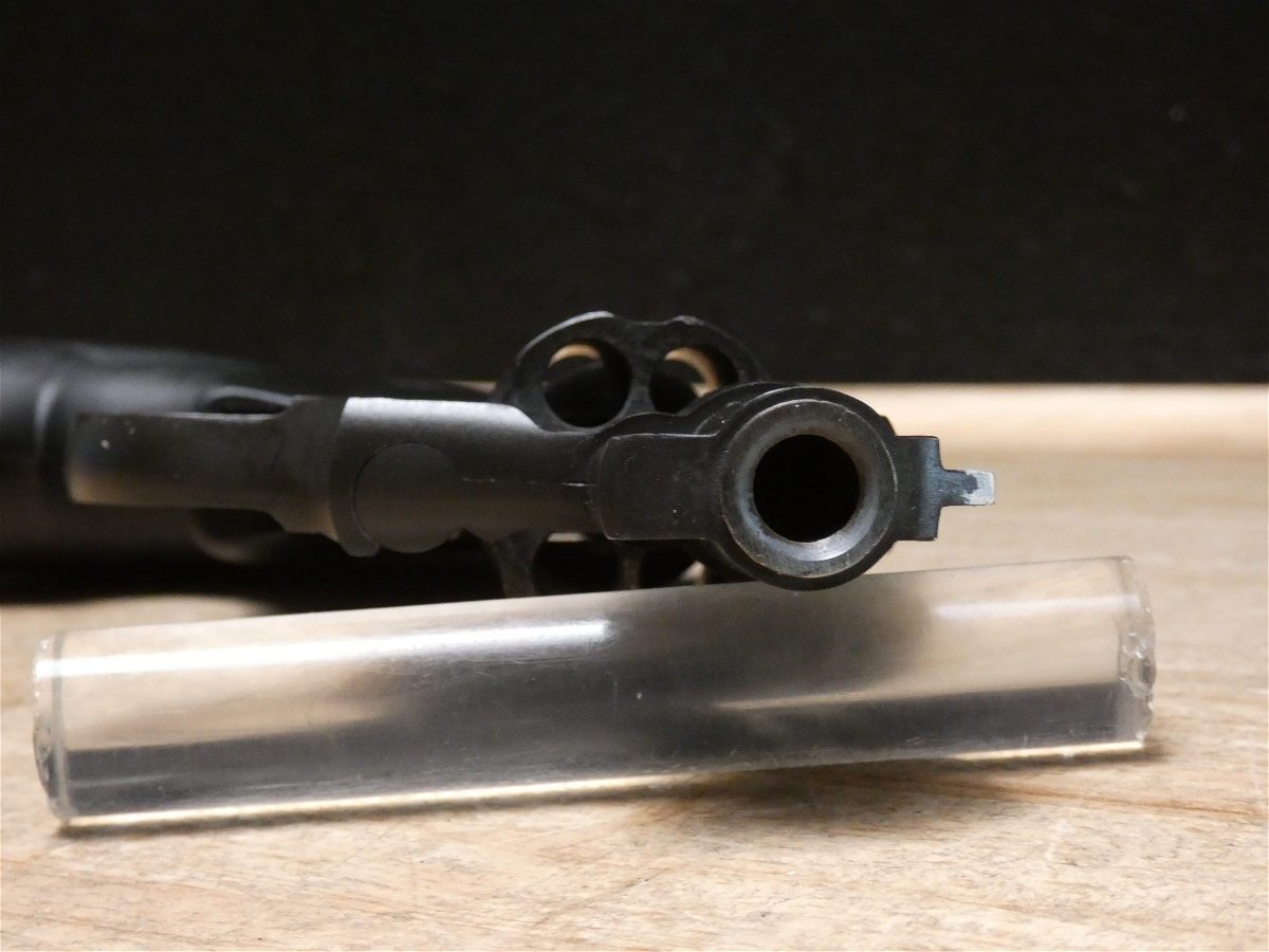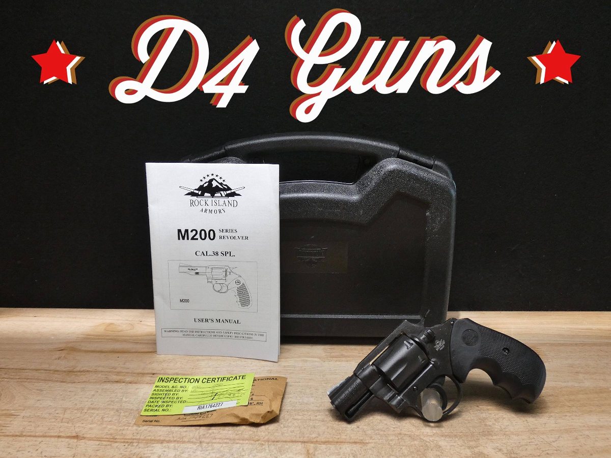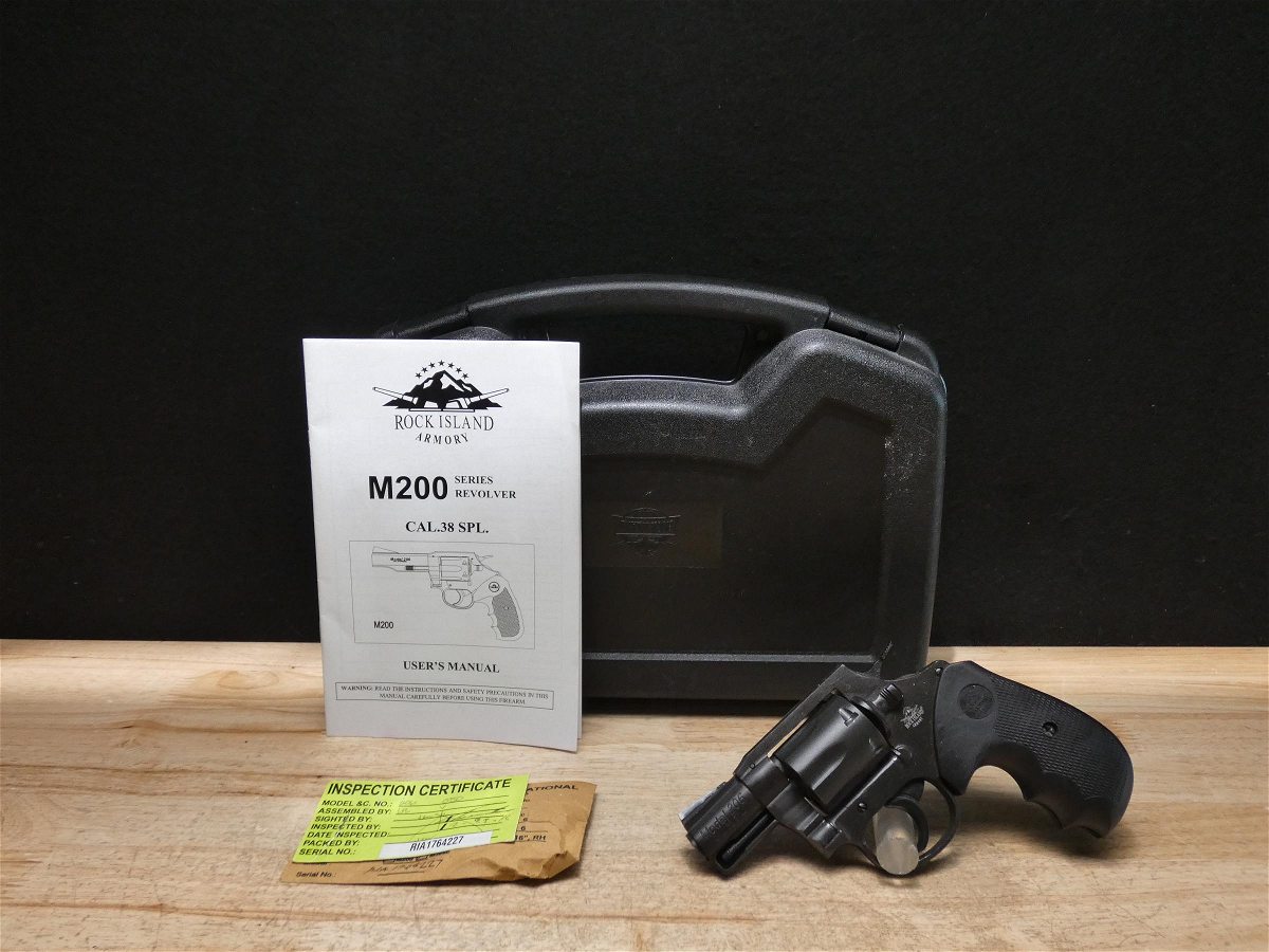For sale is a Rock Island Armory Model 206 double/single action revolver in .38 SPL. Serial number- RIA1764227. This revolver comes with the original case, manual, and factory fired casing. The M206 Revolver is ideal for self defense and concealed carry. With a 2" fully shrouded barrel and spurless hammer along with a fixed front sight with smooth channel frame-cut rear sight, it's designed to perform when it counts. Please refer to the photos as there appears to be overspray present throughout the firearm from the previous owner painting the front sight. V2-F1 Barrel Length: 2 Bore condition: Good