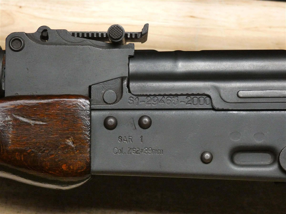 For sale is a Romarm / Cugir SAR-1 semi-automatic rifle in 7.62×39. Serial number- S1-29465-2000. This rifle is in good condition and comes with a sling, a cleaning kit in the butt of the stock, and (2) 30-round magazines. A SAR-1 is a P.D.B (Produced During assualt weapons Ban) Romanian semi-automatic AKM (aka AK-47) clone. This rifle has a pistol grip and can accept AK-47 Hi-capacity magazines, which are very cheap and plentiful. The end of the barrel has no threads. The Romarm/Cugir SAR series AKs are more desirable and better made than the WASR 10 Series AKMs that are imported today. V2-A4 Barrel Length: 16 Bore condition: Good