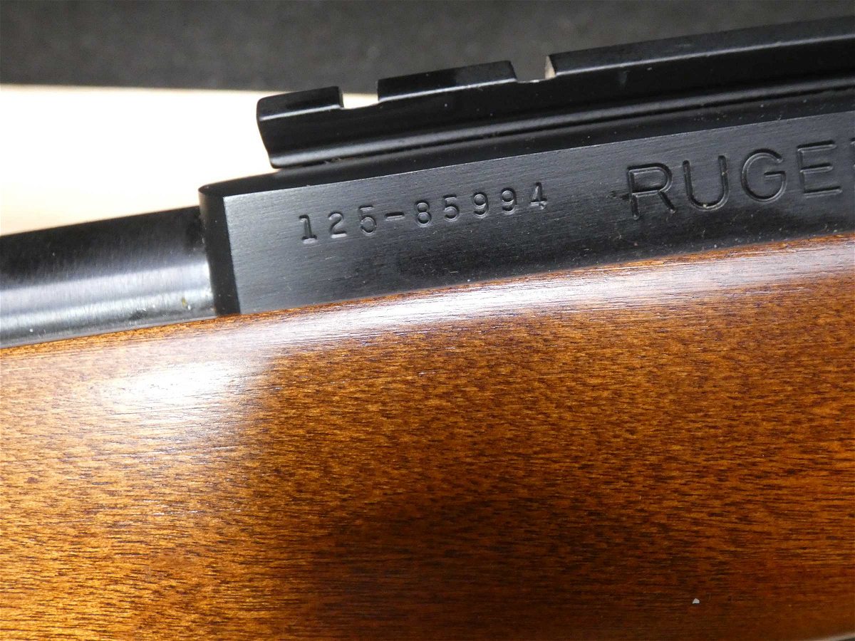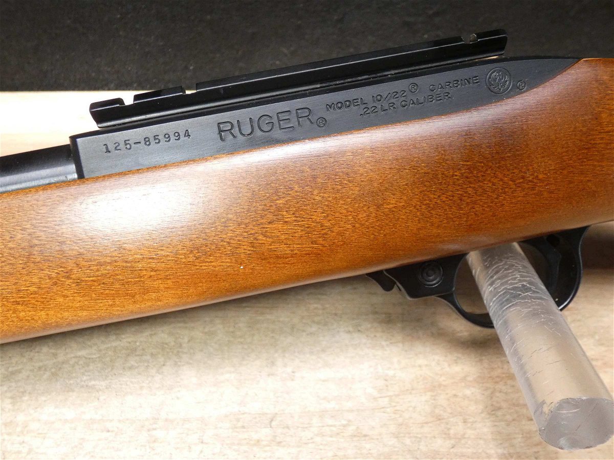 For sale is a Ruger 10/22 semi-automatic rifle in .22LR. Serial number- 125-85994. This rifle was manufactured in 1984. Includes a 10-round mag and the manual. This legendary action is a tried and true Ruger design that ensures consistent, reliable performance. Easy-to-use, prominent magazine release provides smooth, no-fuss removal of flush-mounted magazine. V2-A1 Barrel Length: 18.5 Bore condition: Good Year Manufactured: 1984