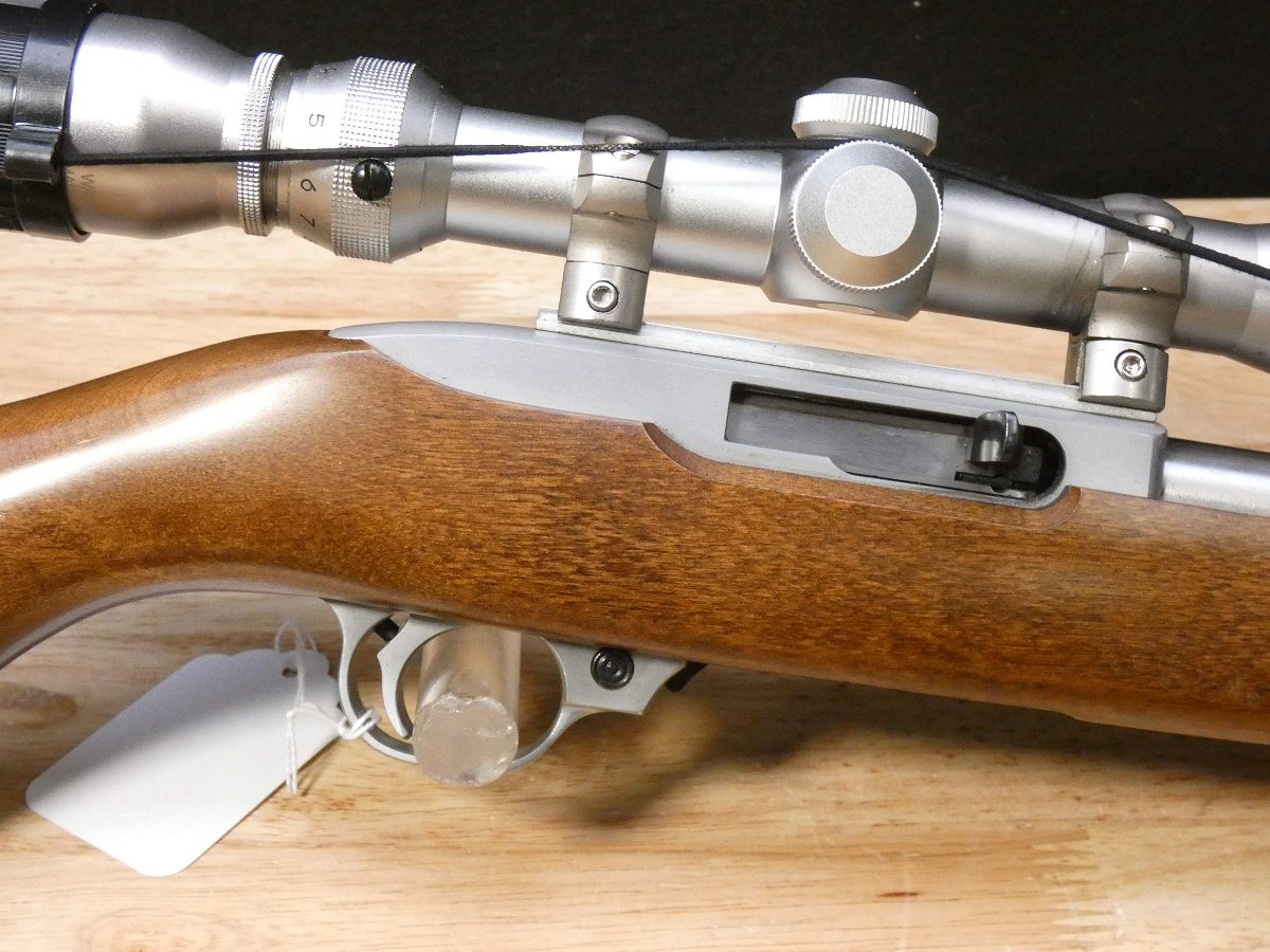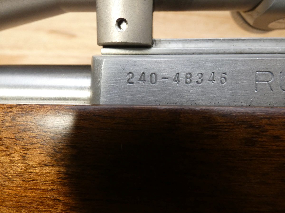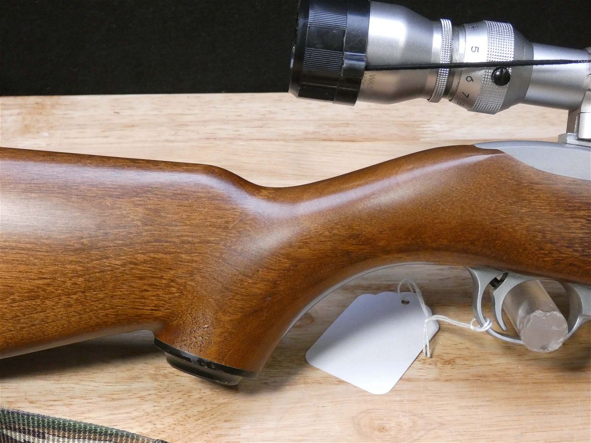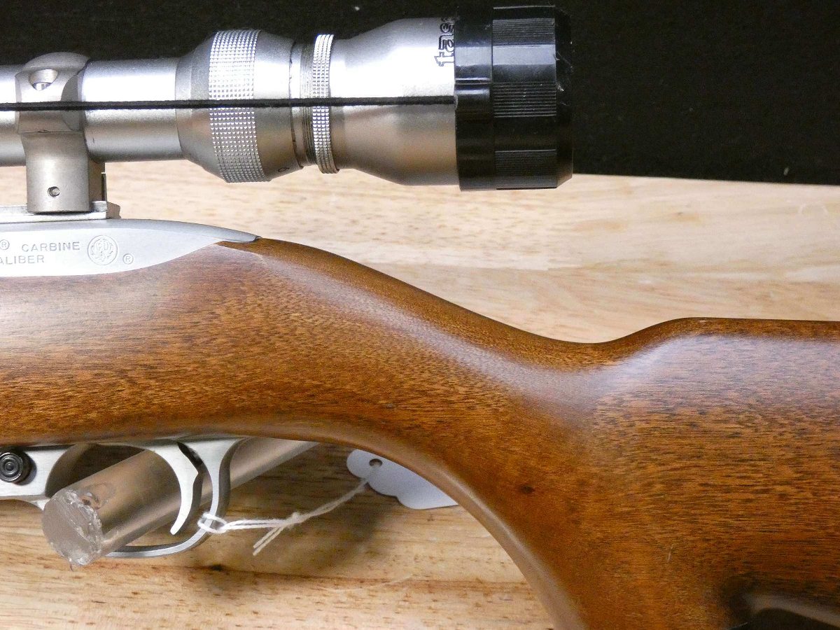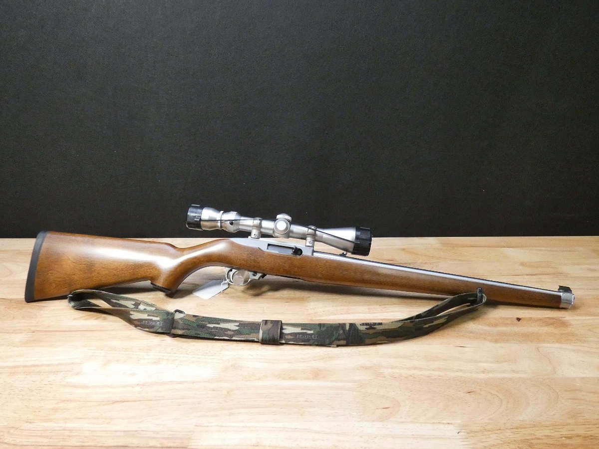 For sale is a Ruger 10/22 Carbine semi-automatic rifle in .22 LR. Serial number- 240-48346. This 10/22 Carbine is in great condition and comes with a 10-round magazine, owner's manual, sling, and a Tasco 3-9X40 Scope. Features an 18.5" Stainless barrel with an excellent bore. Has a Walnut Mannlicher Stock. The Ruger 10/22 is America's favorite. With proven performance, they're ideally suited for informal target shooting, plinking, small-game hunting, and action-shooting events. V2-K4 Barrel Length: 18.5 Bore condition: Excellent Year Manufactured: 1994