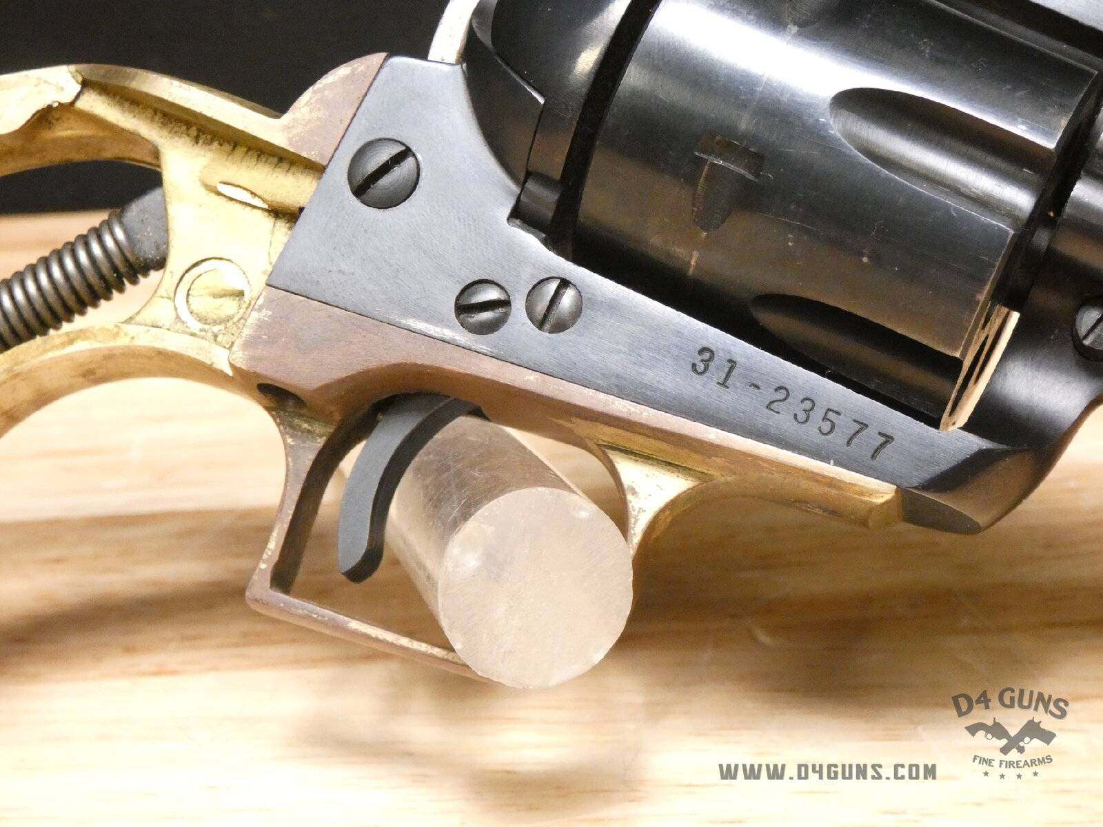 Up for grabs is a Ruger Blackhawk revolver in .357. Serial number-31-23577. This revolver is in fair condition and features a 6-shot cylinder. PLEASE NOTE: this revolver does not have grip panels. A cold hammer forged barrel results in ultra-precise rifling that provides exceptional accuracy and longevity, and transfer bar mechanism and loading gate interlock provide an unparalleled measure of security against accidental discharge. This revolver is believed to have been produced in 1972. V2-J1 Barrel Length: 6.5 Bore condition: Good Year Manufactured: 1972