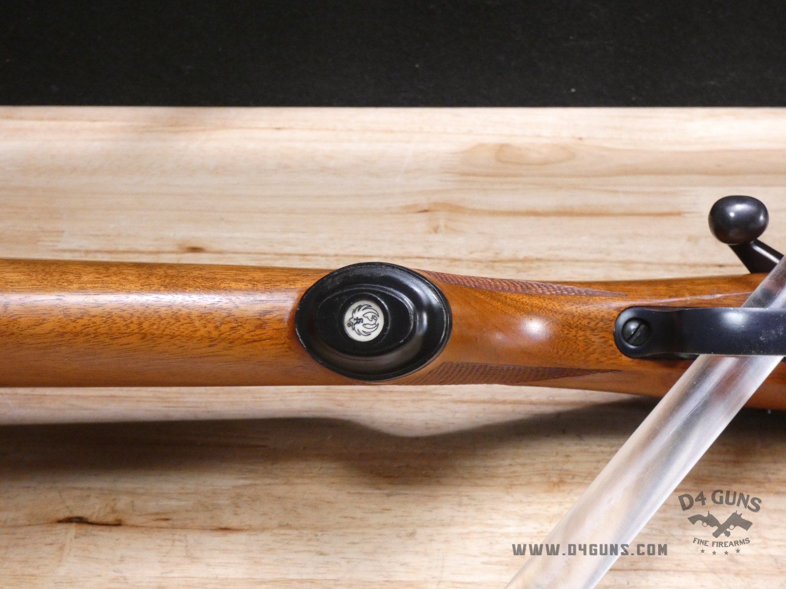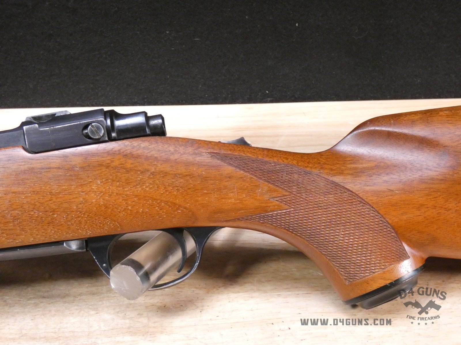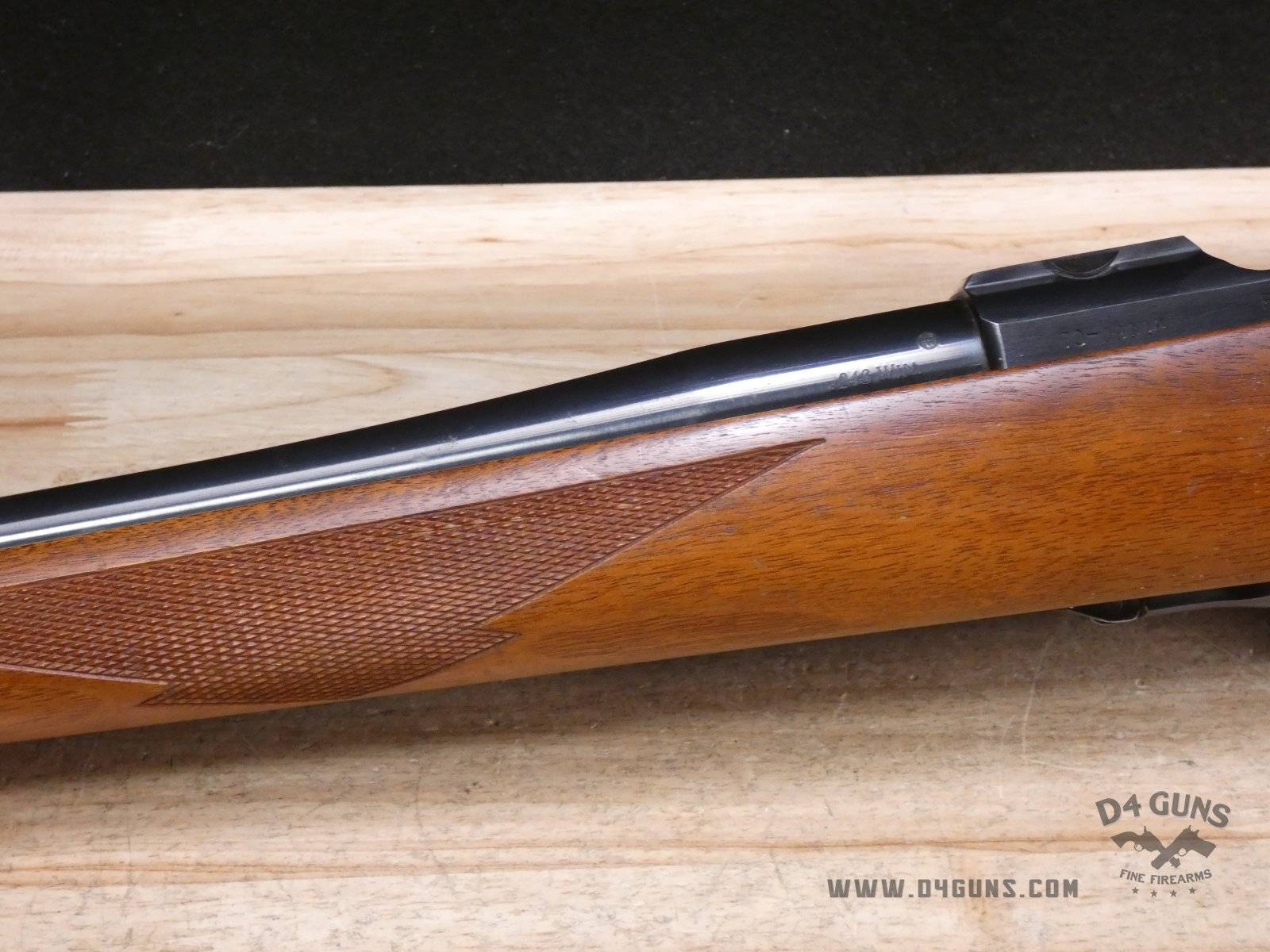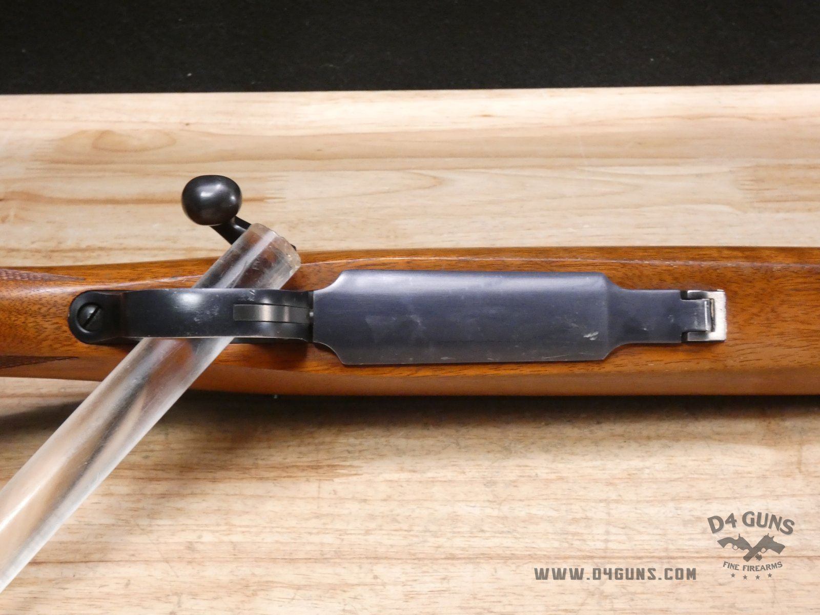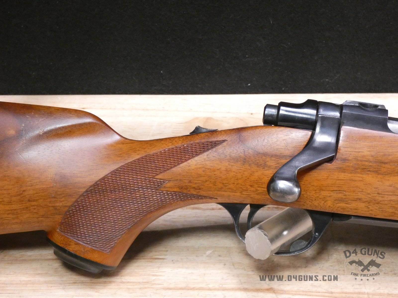 Up for grabs is a Ruger M77 bolt-action rifle in .243 Win. Serial number- 70-09319. After running a serial number lookup, we believe this rifle was manufactured in 1969. This is a first-generation M77, as it features the tang safety rather than the three position safety, and a flat bolt. Please refer to the last photo, as there is an extremely small hairline crack on the left side of the forend of the stock that is approximately 2" in length. V1-B2 Barrel Length: 22 Bore condition: Excellent Year Manufactured: 1969