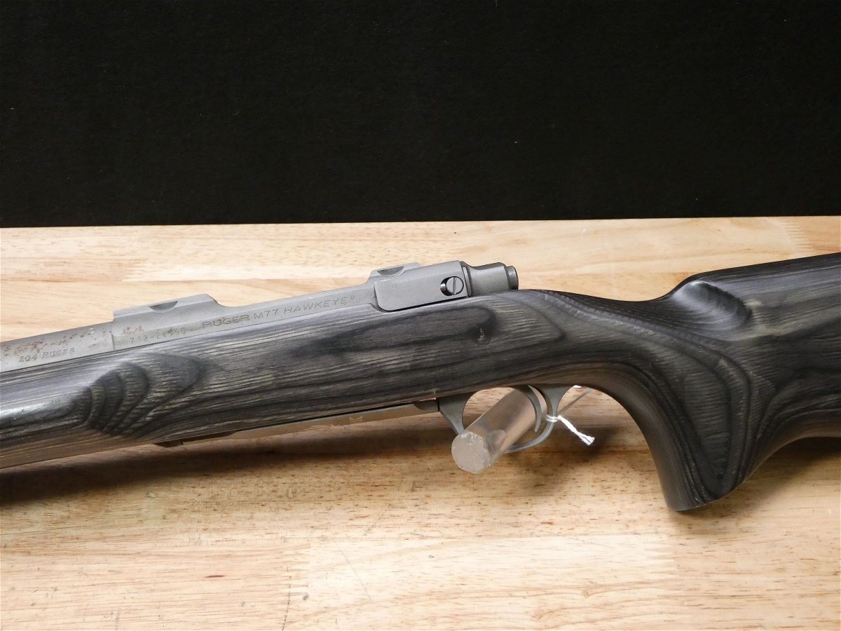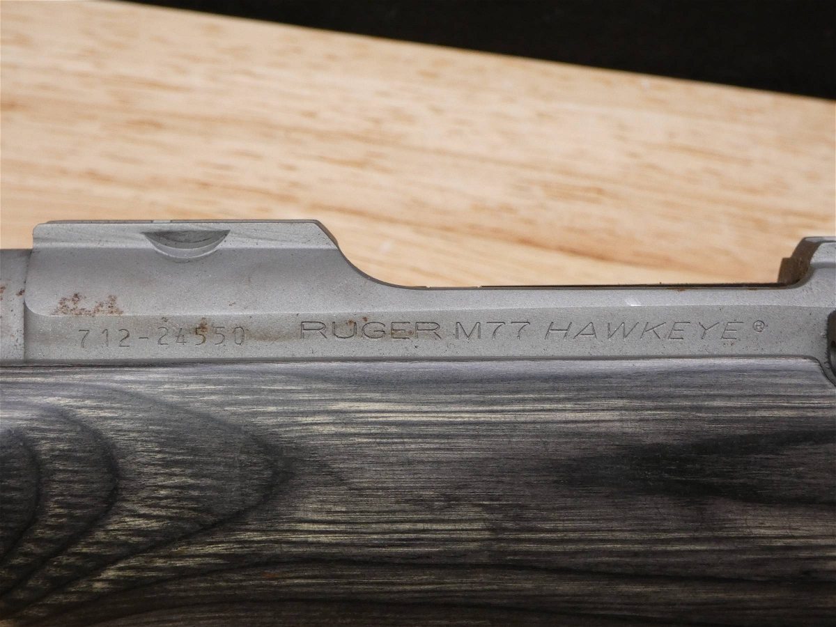 For sale is a Ruger M77 Hawkeye bolt-action rifle in .204 Ruger. Serial number- 712-24550. this rifle is in good condition and after running a serial number lookup, we've determined this rifle was manufactured in 2016. Non-rotating, Mauser-type controlled round feed extractor is among the most positive case extraction systems ever invented and features a fixed blade-type ejector that positively ejects empty cases as the bolt is moved fully rearward. Three-position safety is easily accessible and allows the shooter to lock the bolt or to load and unload the rifle with the safety engaged. Note: There is rust present all over the rifle. V2-B2 Barrel Length: 26 Bore condition: Good Year Manufactured: 2016