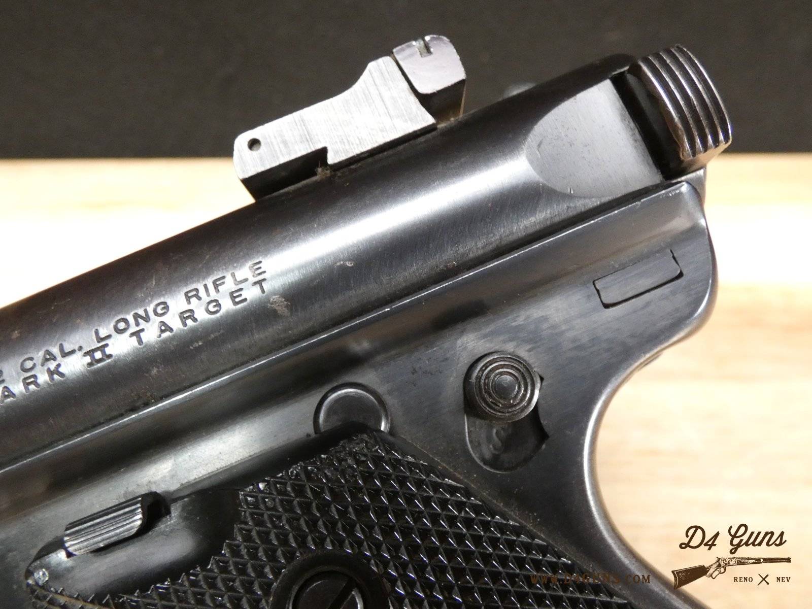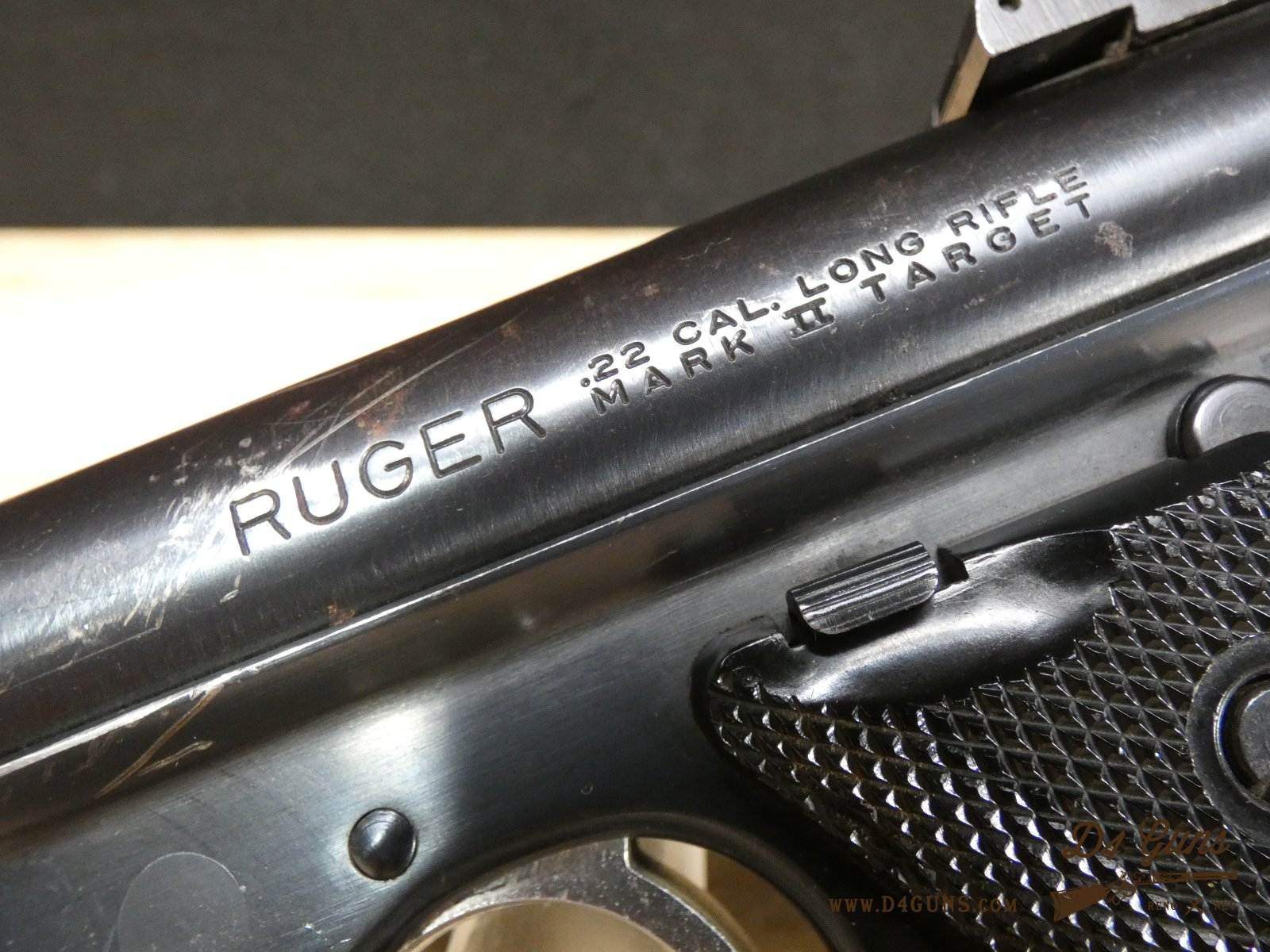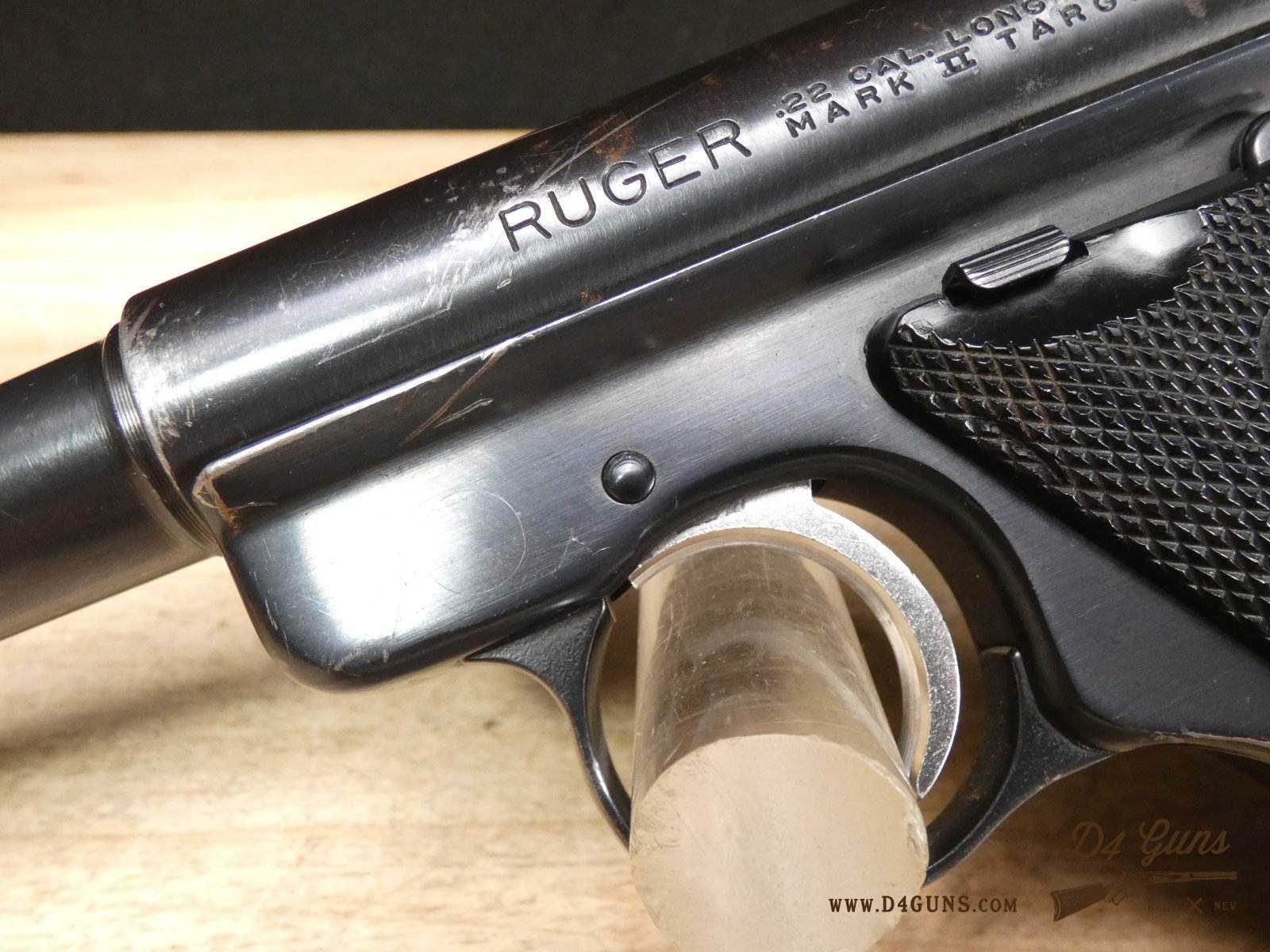 For sale is a Ruger MK II Target semi automatic pistol in .22 LR. Serial number- 19-57090. Manufactured in 1984. This Ruger comes with 2 magazines. The MK II ("Mark Two") was made from 1982 to 2005. MK II variations include the Target models, which have heavier barrels and adjustable sights. Ruger rimfire pistols are some of the most popular handguns made, with over three million sold. Please refer to the photos as this Ruger shows general signs of wear and some scratching along the left side of the pistol. V2-I4 Barrel Length: 7 Bore condition: Good Year Manufactured: 1984