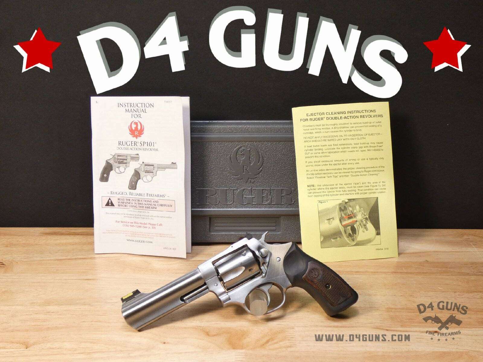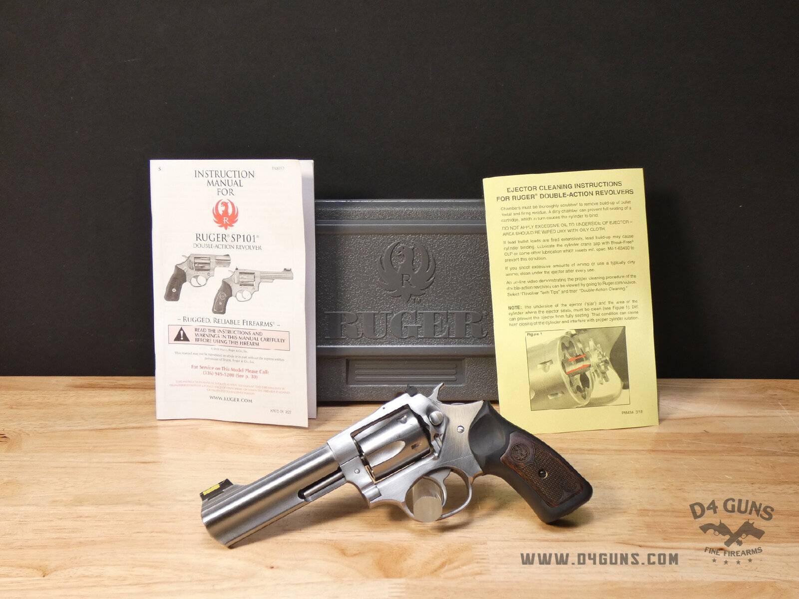 Up for grabs is a Ruger Model SP101 revolver in .357 Mag. Serial number- 576-94799. This revolver includes the original box and manuals. This firearm was manufactured in 2018. Cushioned rubber grip with hardwood insert has no exposed metal in the backstrap, making it extremely comfortable. Takedown of integrated subassemblies requires no special tools, allowing for easy maintenance and re-assembly. The transfer bar mechanism provides an unparalleled measure of security against accidental discharge. V2-E1 Barrel Length: 4.2 Bore condition: Good Year Manufactured: 2018