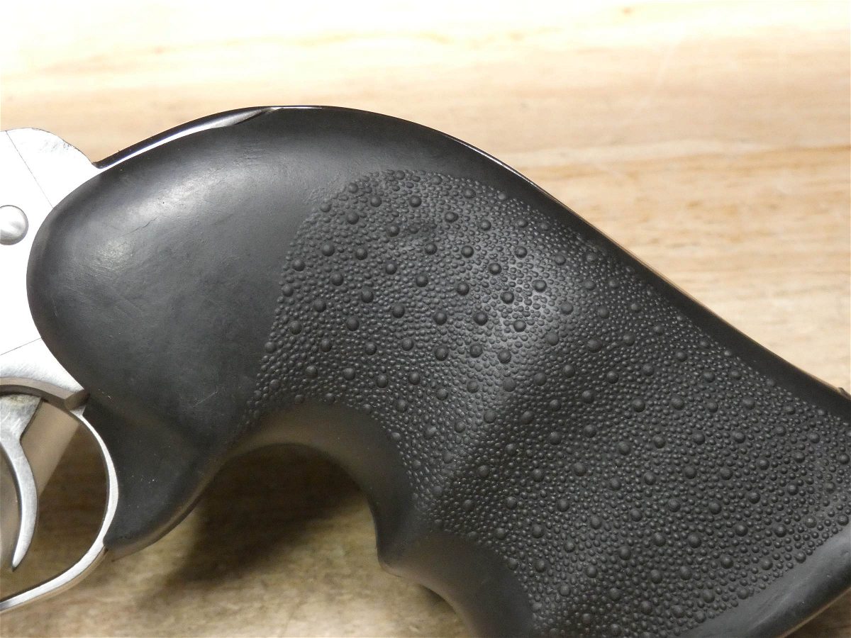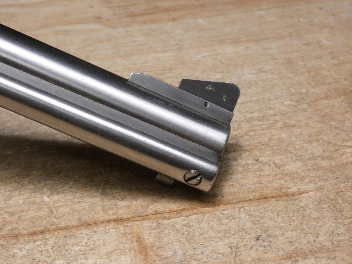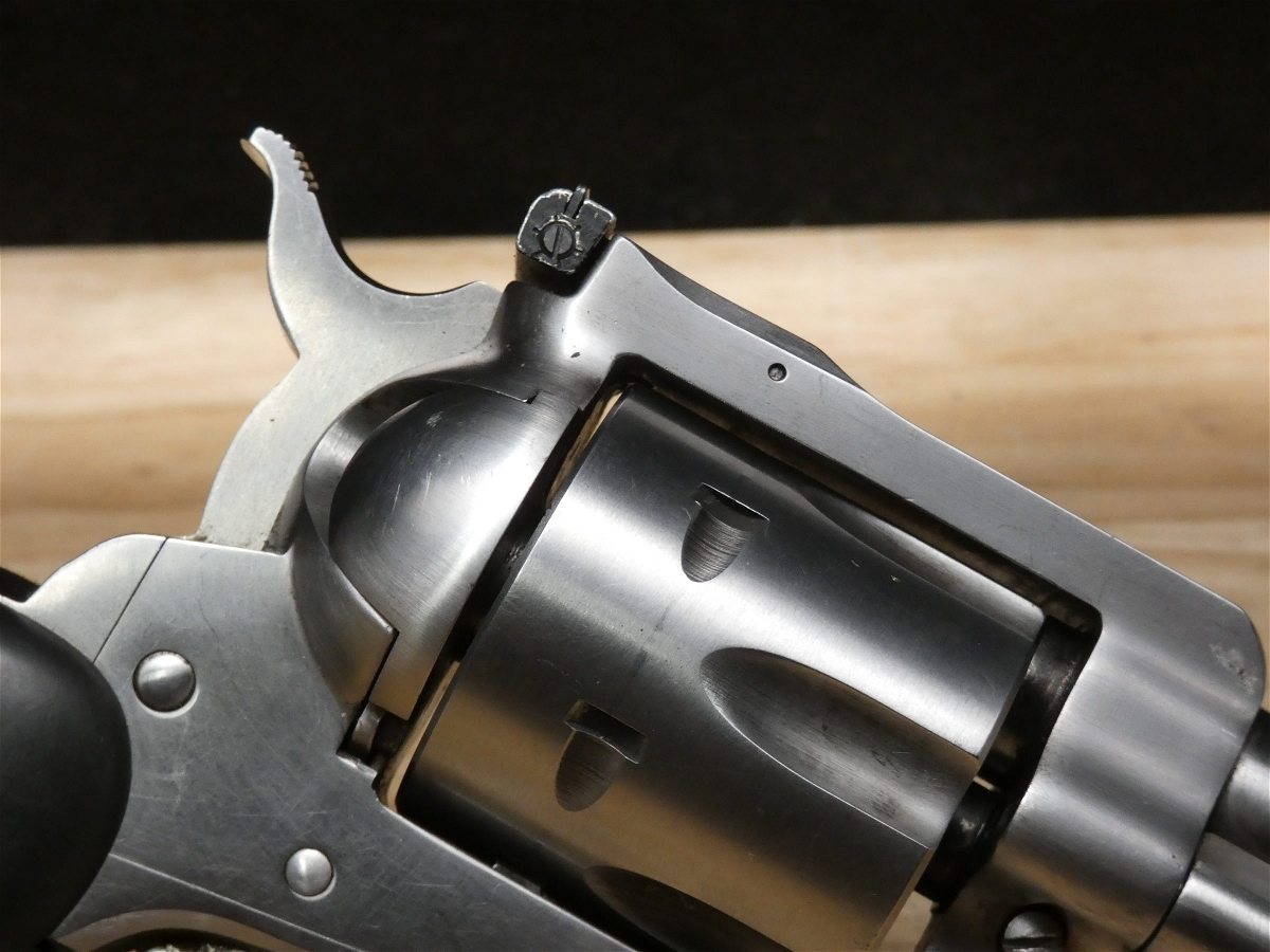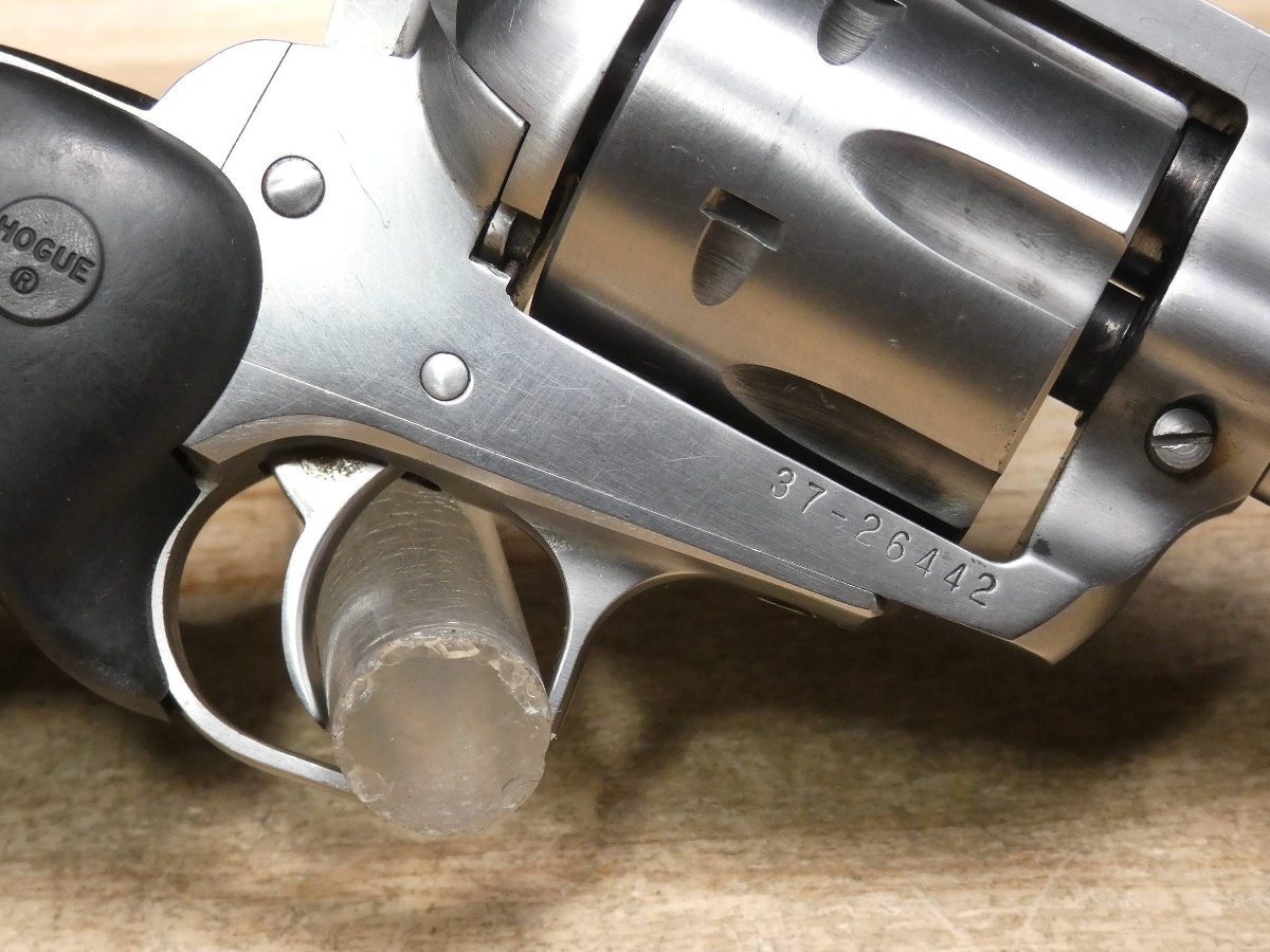 For sale is a Ruger New Model Blackhawk single-action revolver in .357 Mag. Mfg Dated 1993. Serial number – 37-26442. This revolver is in good condition with some minor scratches on the stainless frame and barrel, and comes with the original wood grips. It is also equipped with Hogue rubber grips. Ruger's Blackhawk revolver meets the needs of today's single-action shooters. The patented transfer bar mechanism and loading gate interlock provide an unparalleled measure of security against accidental discharge. Its cold hammer-forged barrel results in ultra-precise rifling that provides exceptional accuracy, longevity, and easy cleaning. V2-I4 Barrel Length: 4.5 Bore condition: Good Year Manufactured: 1993
