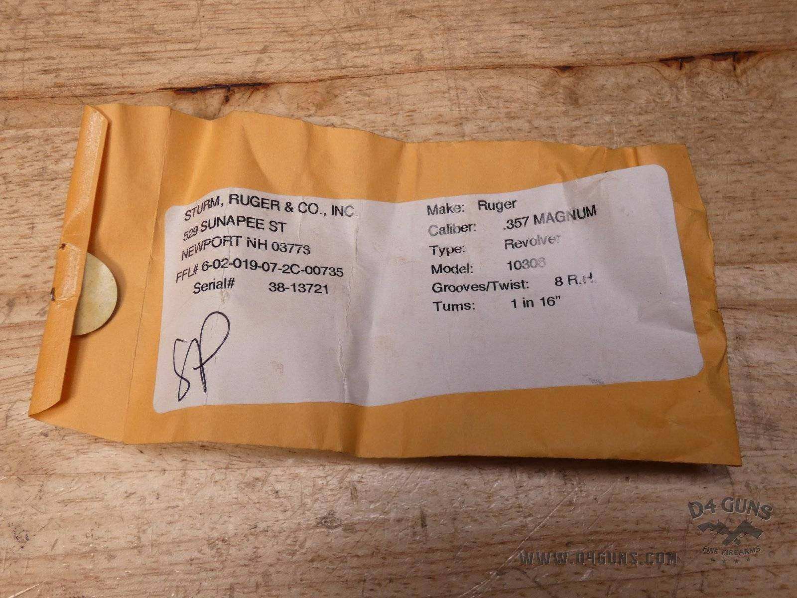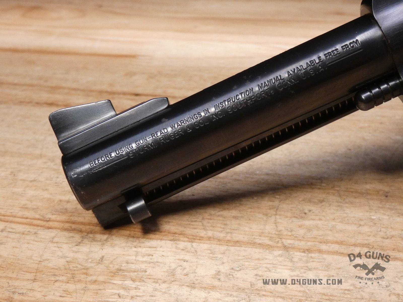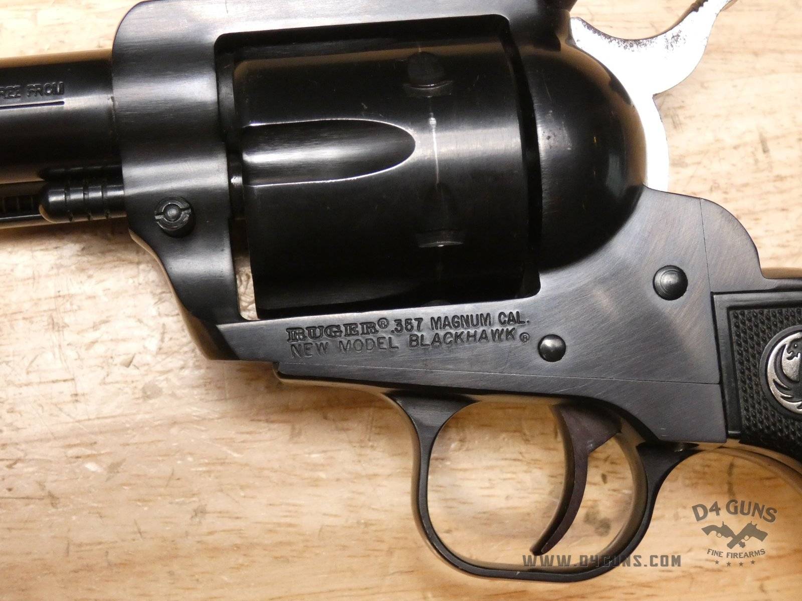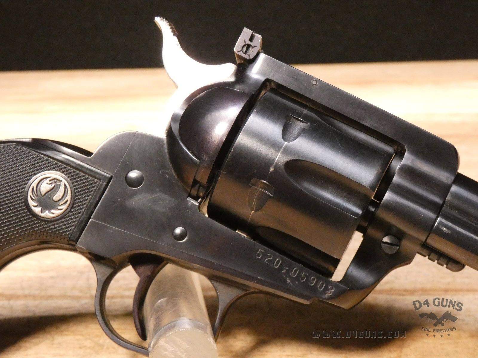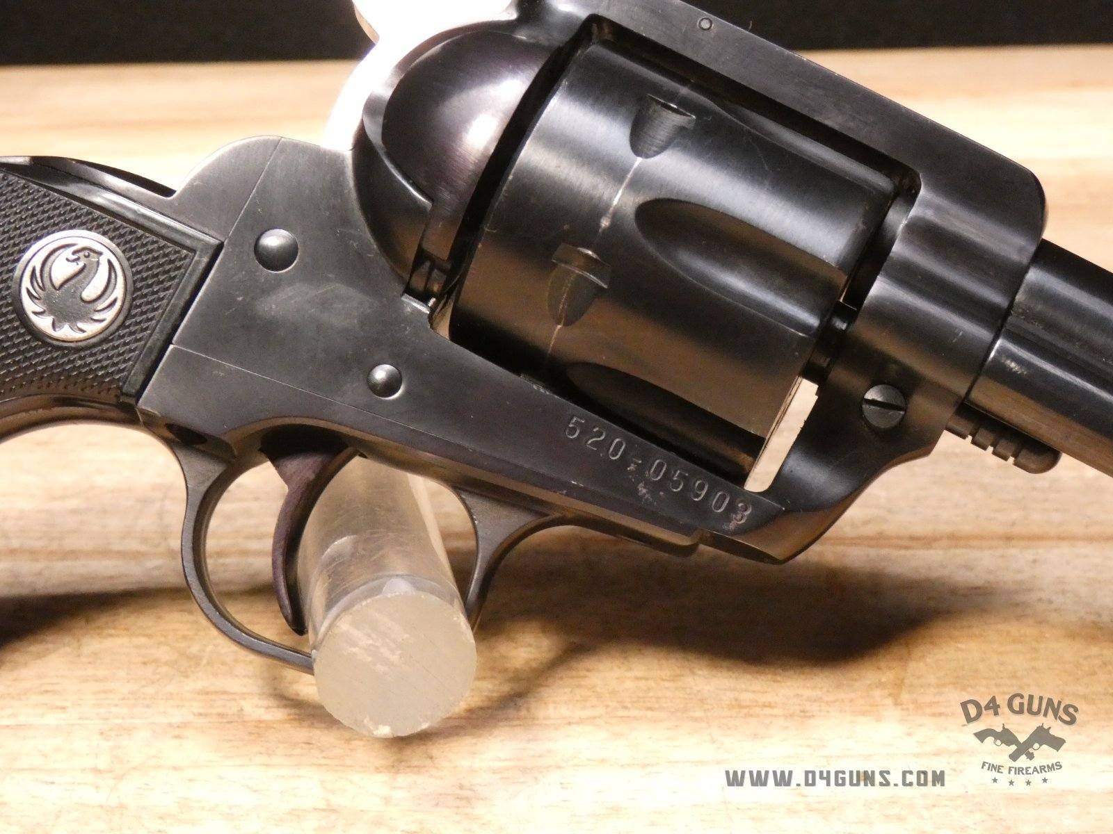 For sale Ruger New Model Blackhawk revolver in .357 Mag. Serial number- 520-05903. This revolver was manufactured in 2005. Traditional western-style, hand-filling grip has long been acknowledged as one of the most comfortable and natural pointing of any grip style. Transfer bar mechanism and loading gate interlock provide an unparalleled measure of security against accidental discharge. Cold hammer-forged barrel results in ultra-precise rifling that provides exceptional accuracy and longevity. This revolver comes with an original box and manuals. V2-H2 Barrel Length: 4.5 Bore condition: Good Year Manufactured: 2005