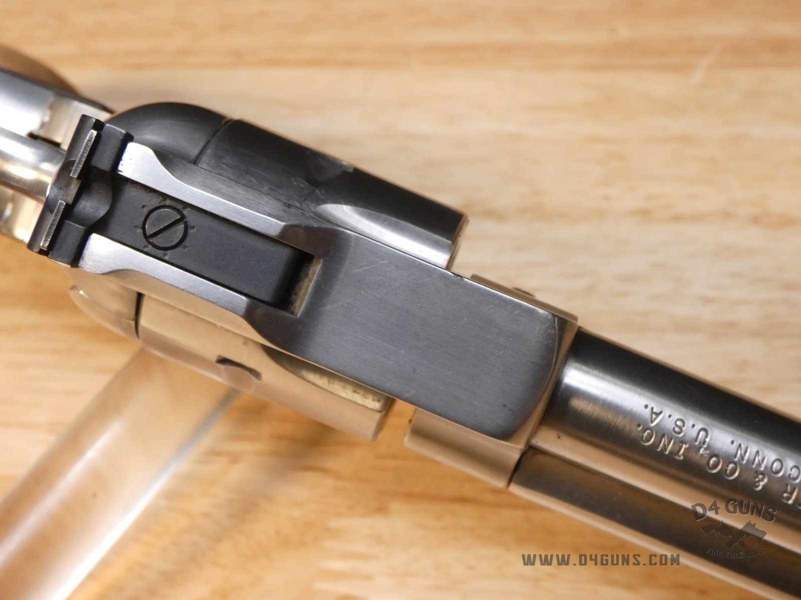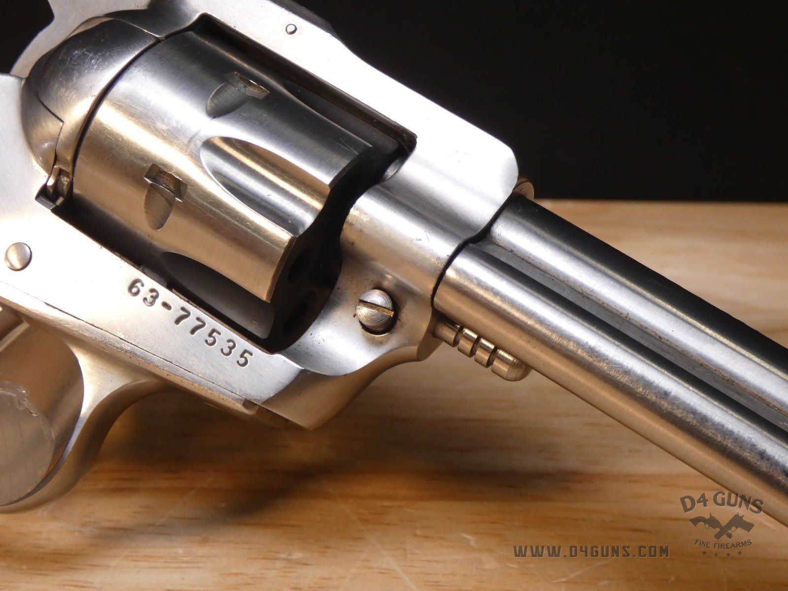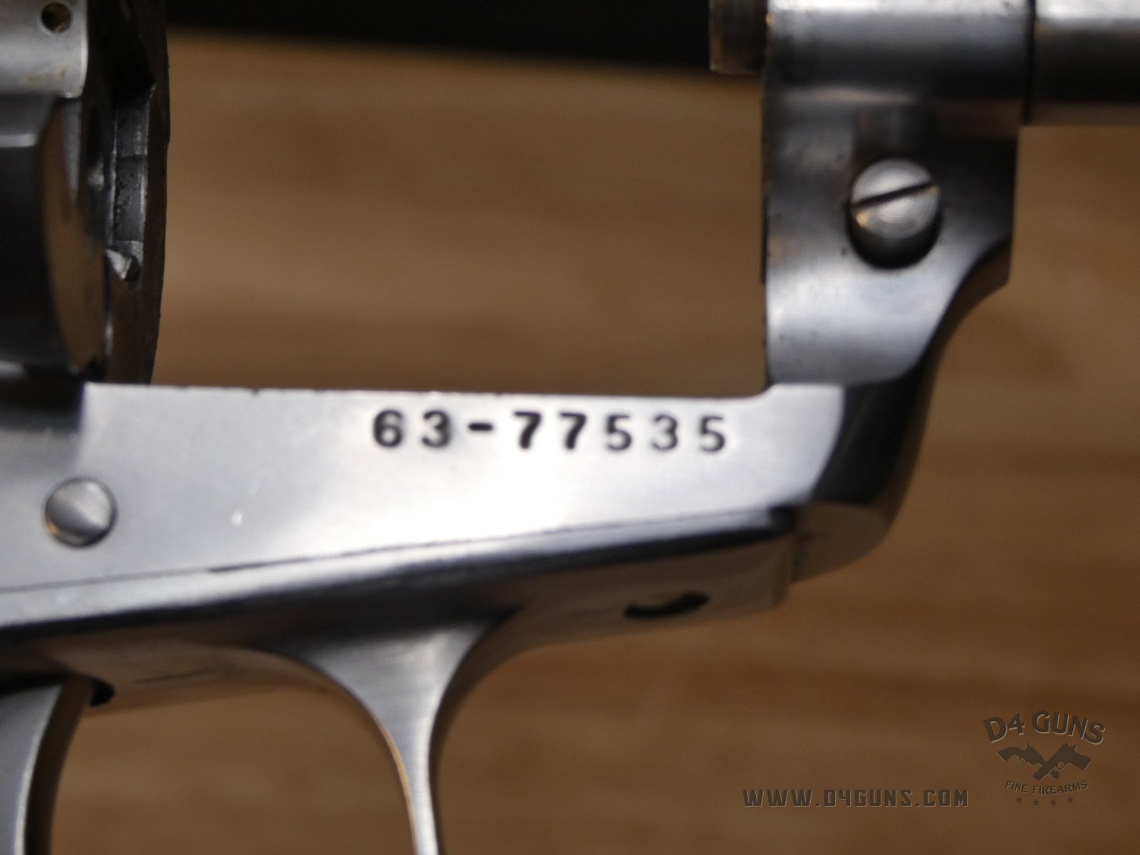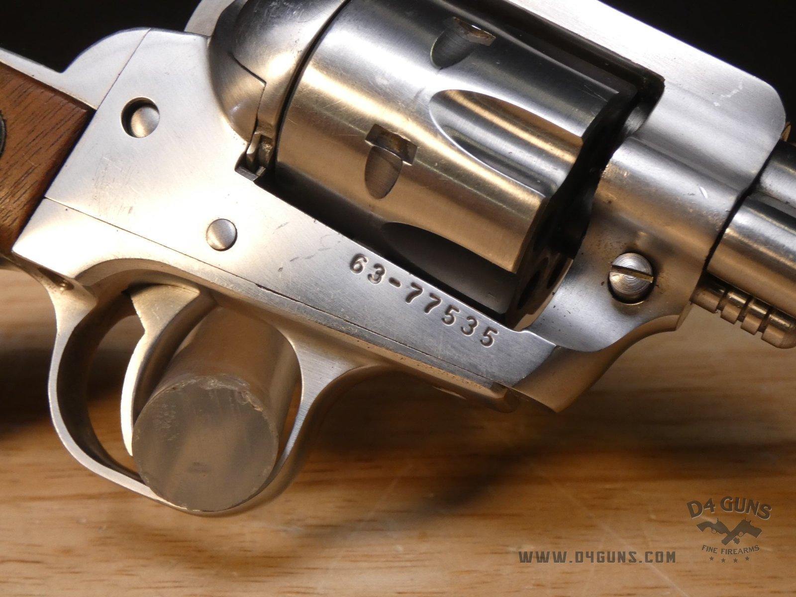 Up for grabs is a Ruger New Model Single Six revolver in .22LR. Serial number-63-77535. MFD: 1975. This revolver is in great condition. The rugged reliability and the safe carrying characteristics of the Ruger Single-Six Convertible Single-Action Revolver make it a superb sidearm to take along on most outdoor adventures, including backpacking, fishing, and big game hunting. The Single-Six is also a fun gun for plinking and a great choice for teaching shooters the fundamentals of handgun shooting. V2-H1 Barrel Length: 5.5 Bore condition: Good Year Manufactured: 1975