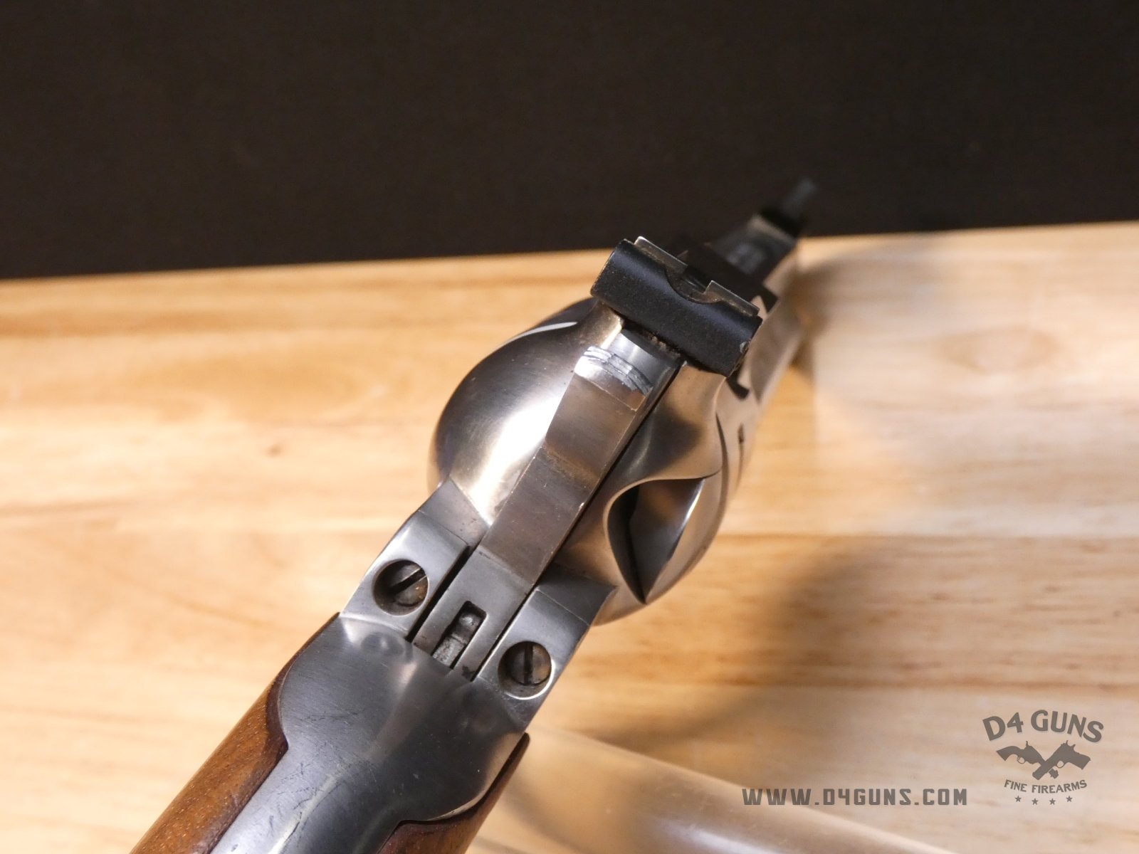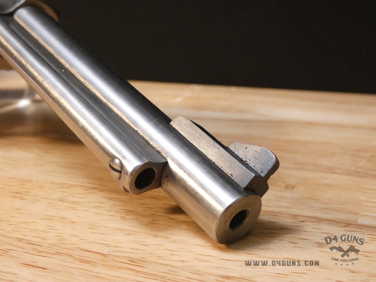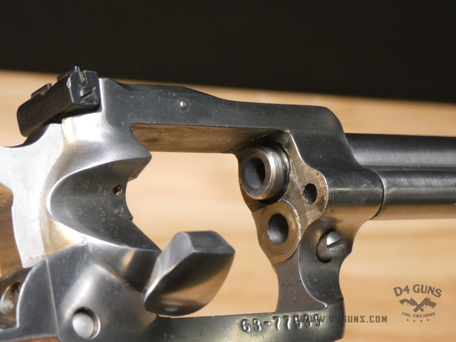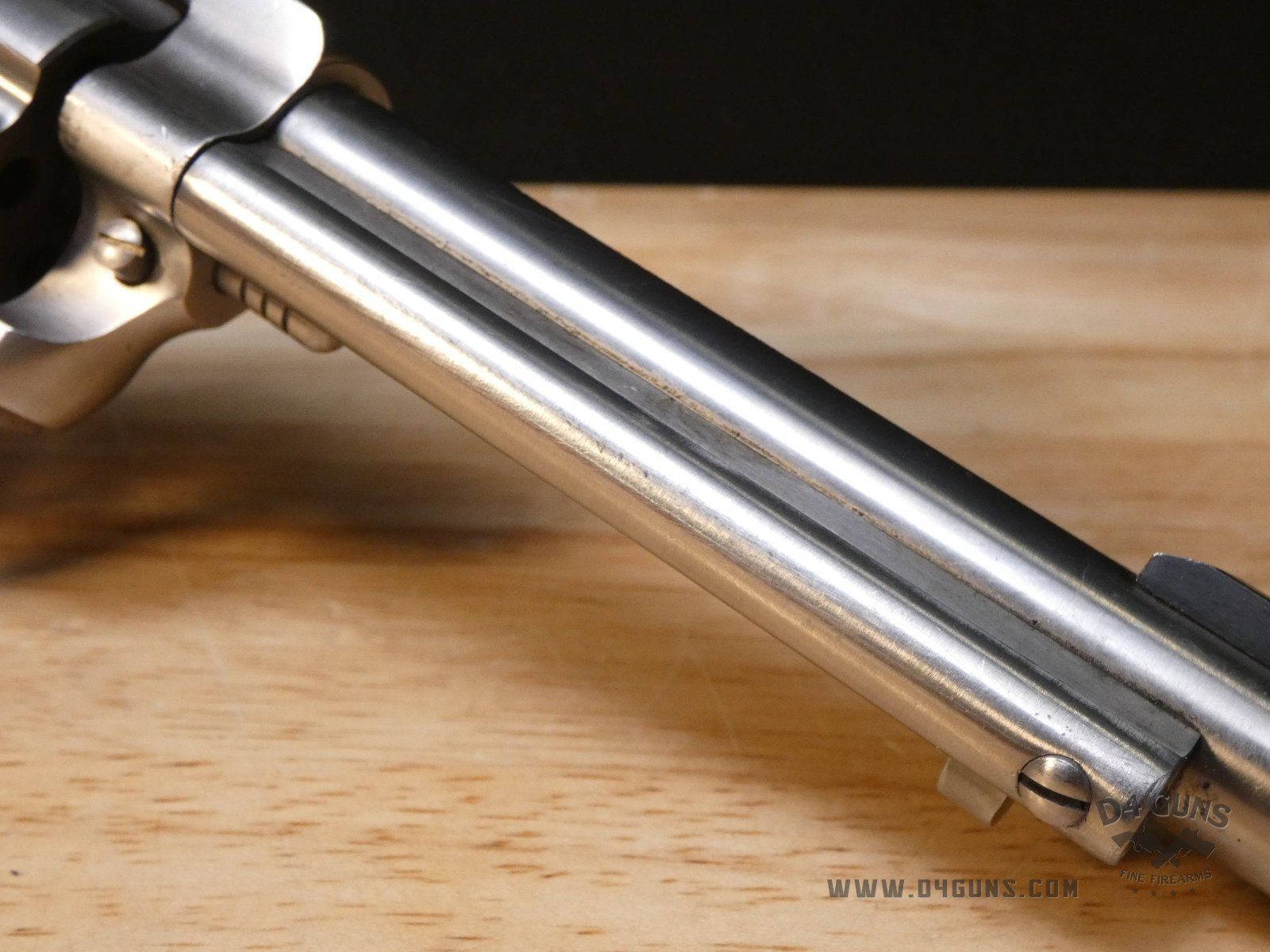 Up for grabs is a Ruger New Model Single Six revolver in .22LR. Serial number-63-77535. MFD: 1975. This revolver is in great condition. The rugged reliability and the safe carrying characteristics of the Ruger Single-Six Convertible Single-Action Revolver make it a superb sidearm to take along on most outdoor adventures, including backpacking, fishing, and big game hunting. The Single-Six is also a fun gun for plinking and a great choice for teaching shooters the fundamentals of handgun shooting. V2-H1 Barrel Length: 5.5 Bore condition: Good Year Manufactured: 1975