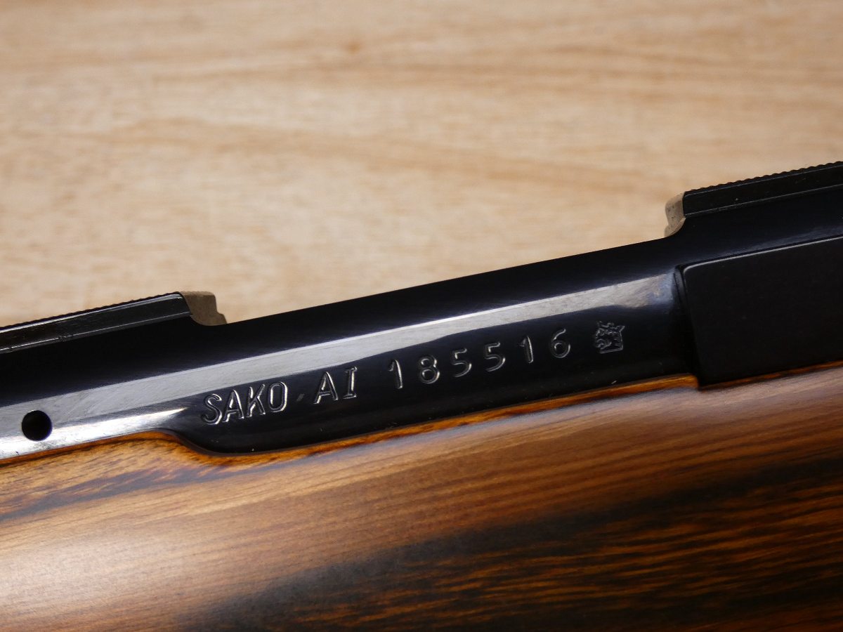 For sale is a Sako AI Lightweight Hunter bolt-action rifle in .223 REM. Serial number- 185516. This Sako AI is in excellent condition! LOP = 14 1/8" to end of the butt pad. Stoeger import mark on bottom of the barrel. Beautiful Monte Carlo checkered Walnut stock with palm swell. Original Red Sako Recoil Pad. No sights. We belive this was made in the mid-80s. Not easy to find in this configuration and would make an excellent addition to anyone's collection! Sako rifles and cartridges are proudly made in Finland and sold, in the United States, through a nationwide network of authorized dealers. V1-F1-NV Barrel Length: 22 Bore condition: Excellent