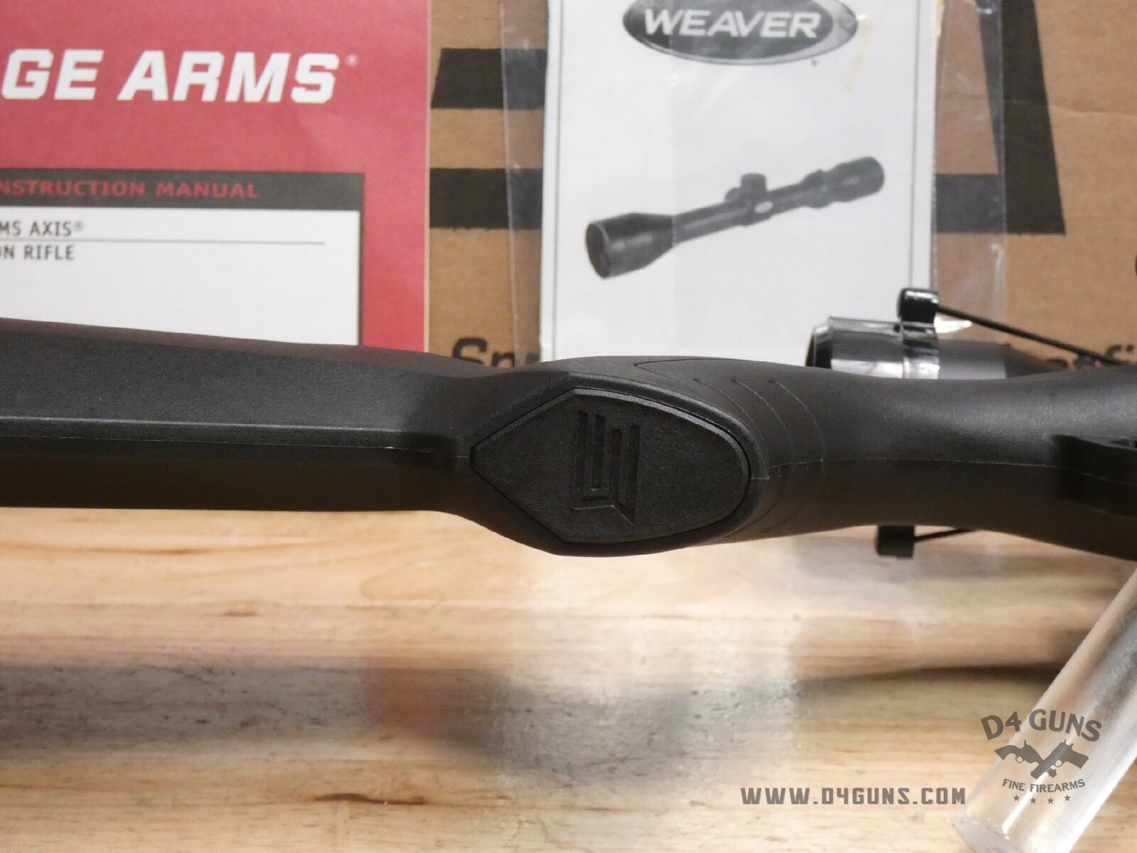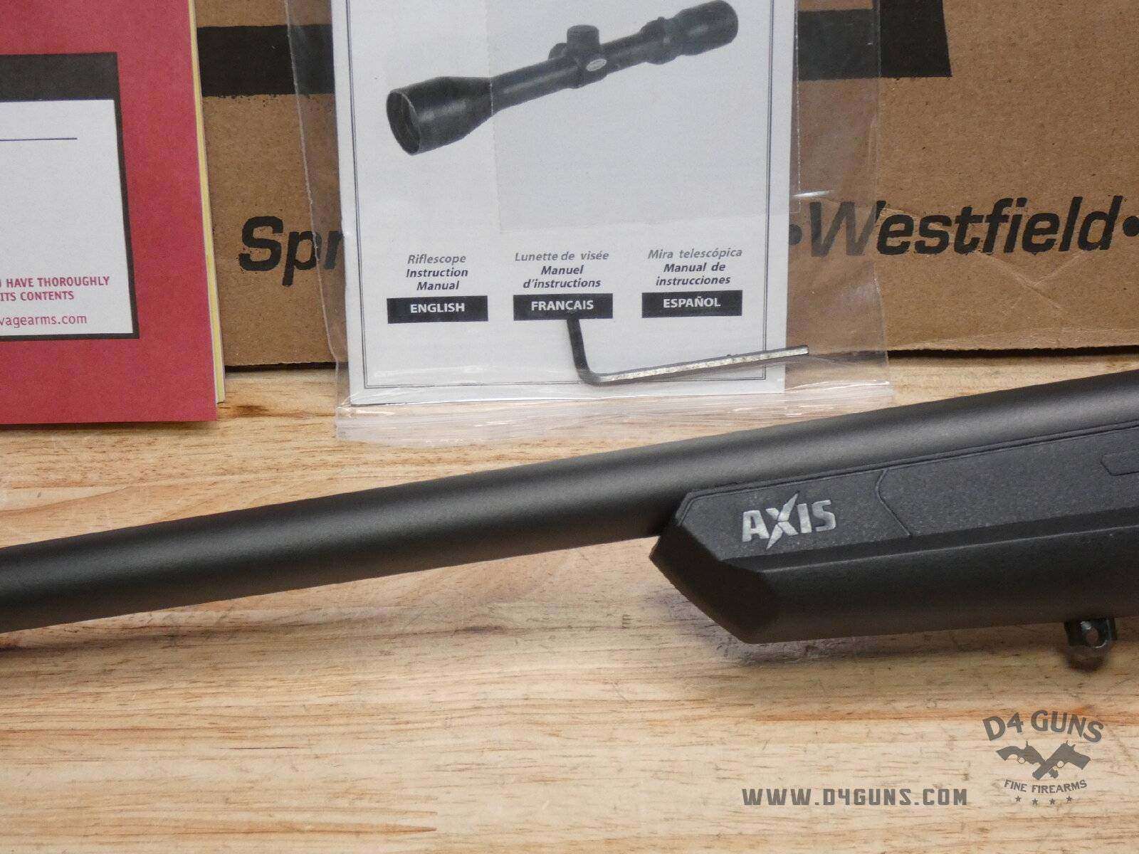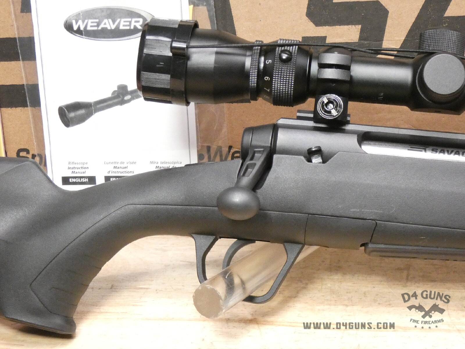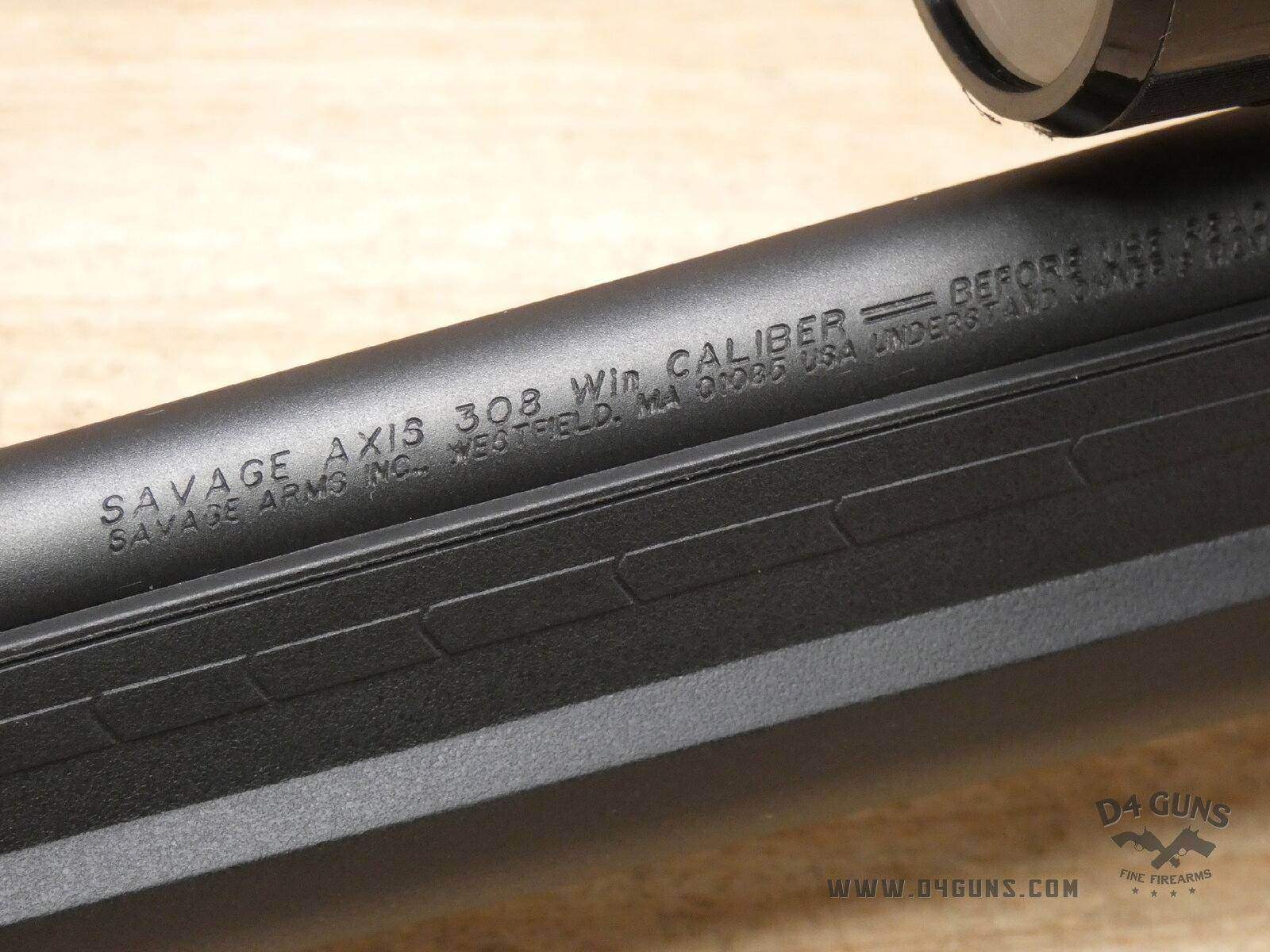 Up for grabs is a Savage Axis bolt action rifle in .308 Win. Serial number- N627773. The particular Savage features a Weaver 3-9x40mm scope with the original manual, and also comes with one magazine. Affordability, performance, and precision all come together in the AXIS. The rifle's modern design includes sleek contours, recoil pad vents, and a textured, easy-to-control grip. Its 22-inch, carbon-steel barrel is button rifled for superb accuracy. V1-I1 Barrel Length: 22 Bore condition: Good