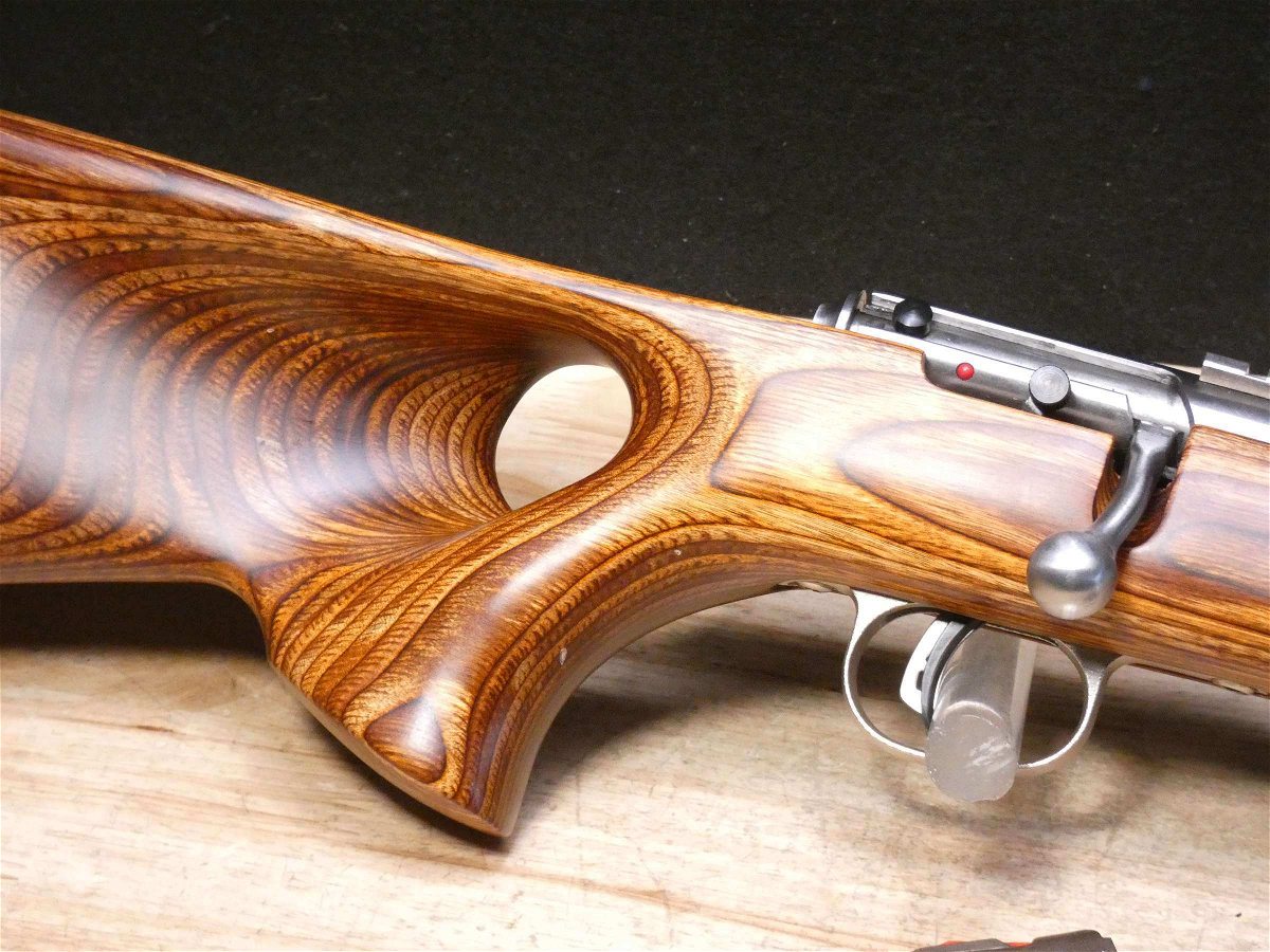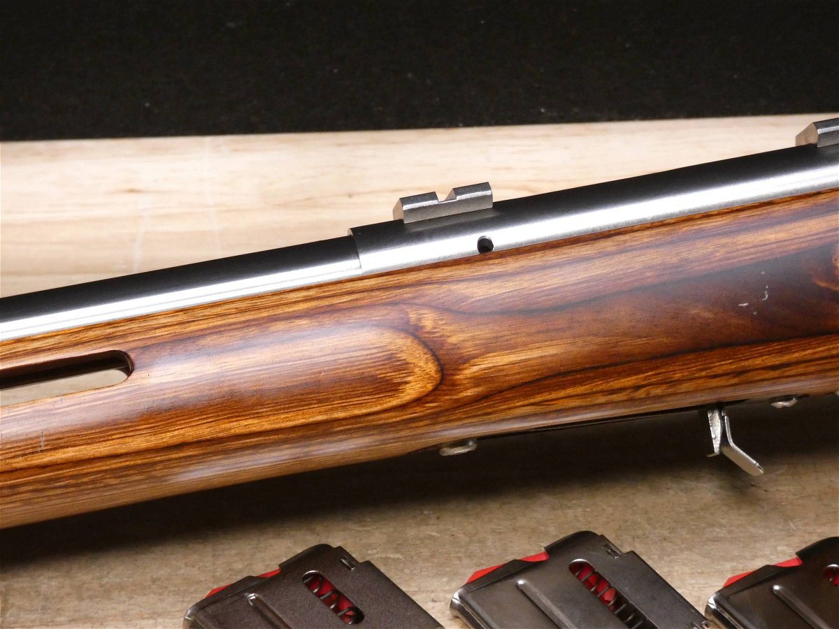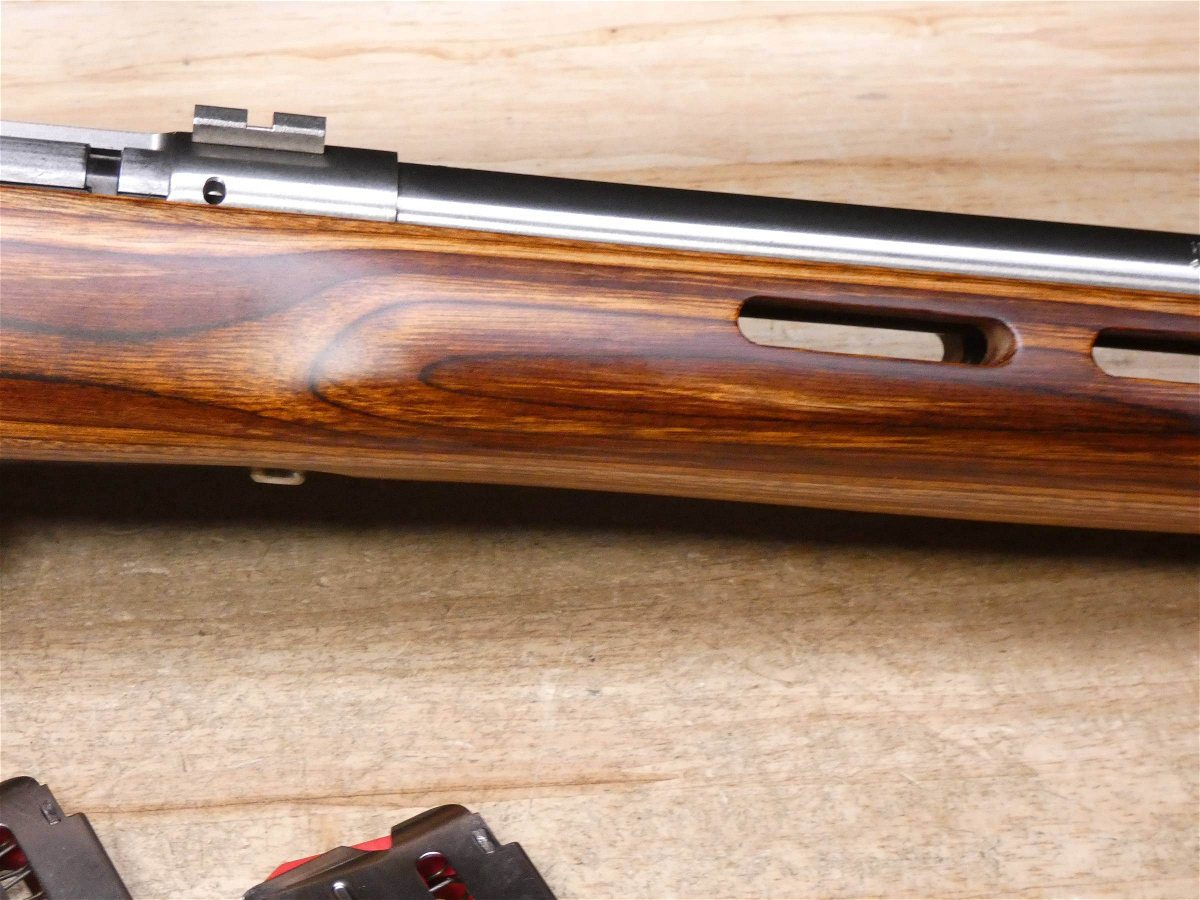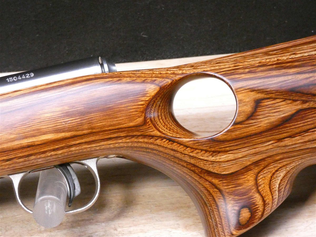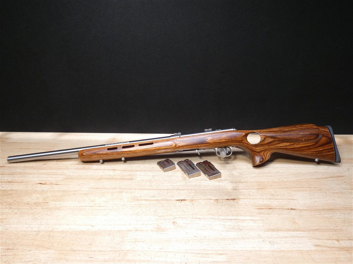 For sale is a Savage Model 93R17 BTVSS bolt-action rifle in .17 HMR. Serial number- 1504429. Drive tacks with the bolt-action 93R17 BTVS. It combines Savage's user-adjustable AccuTrigger technology and a 21-inch, button-rifled, heavy stainless steel barrel to deliver unbeatable accuracy. The rifle features a wood laminate stock with a custom thumbhole, as well as three detachable box magazines. V1-B2 Barrel Length: 21 Bore condition: Good