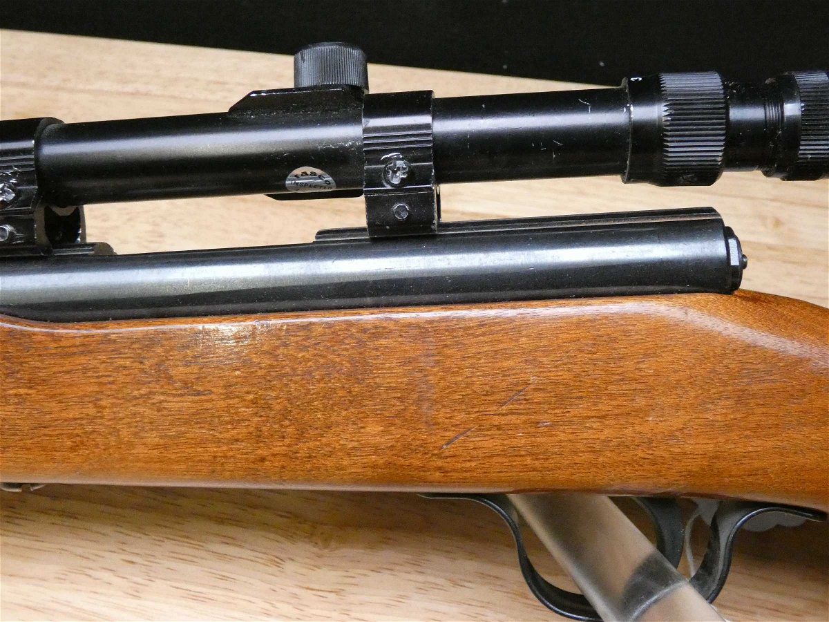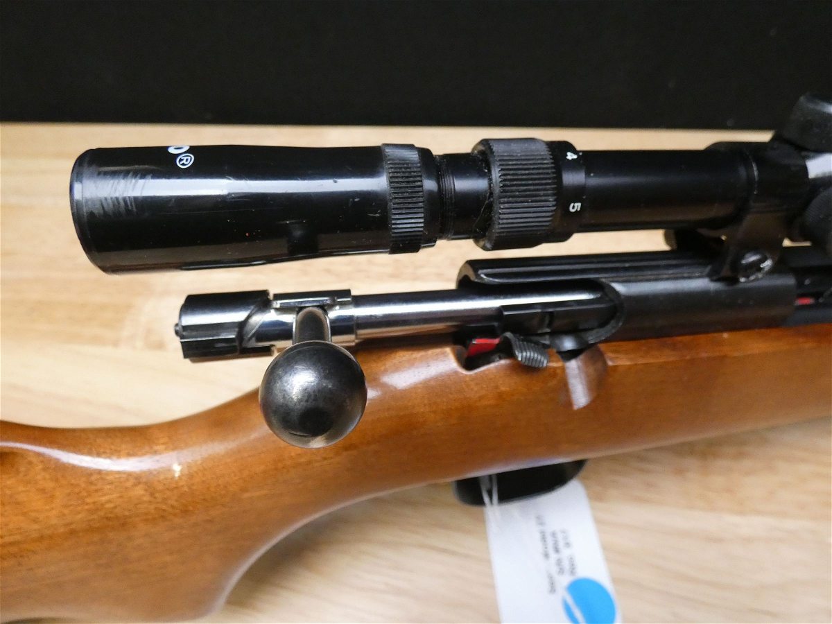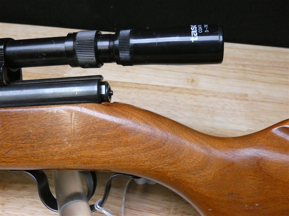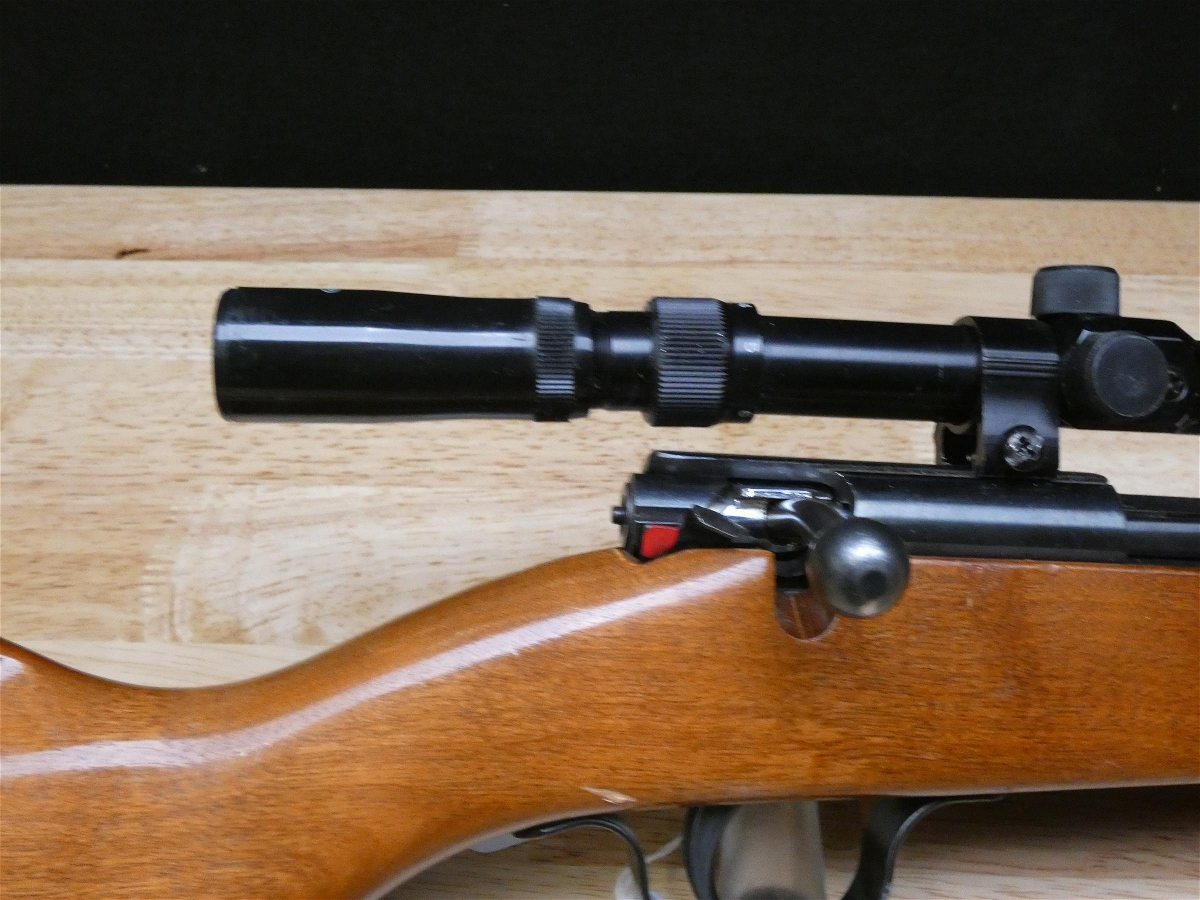 For sale is a Sears, Roebuck and Co Model 2T bolt action rifle in .22 S/L/LR. No serial number. This is a single shot bolt action manufactured for Sears by Winchester and is a clone of the Winchester Model 141. This is in need of some TLC. There is a crack at the wrist of the stock, and the bolt will not install into the receiver due to bent extractors. The rifle has a fair bore and includes a Tasco scope. V2-L2 Barrel Length: 21 Bore condition: Fair