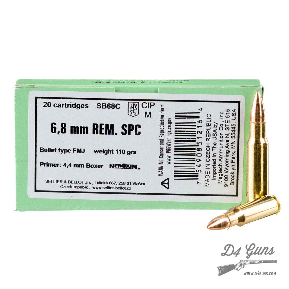 Sellier & Bellot 6.8mm Rem SPC 110gr FMJ 20 Rounds SB68C 754908512164