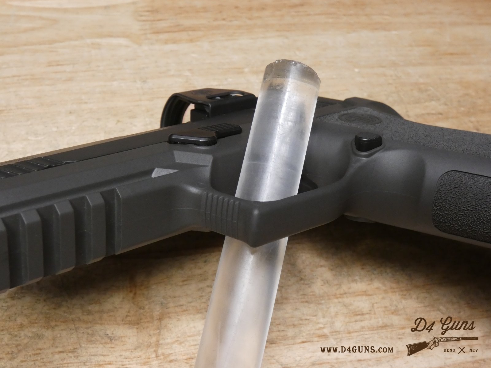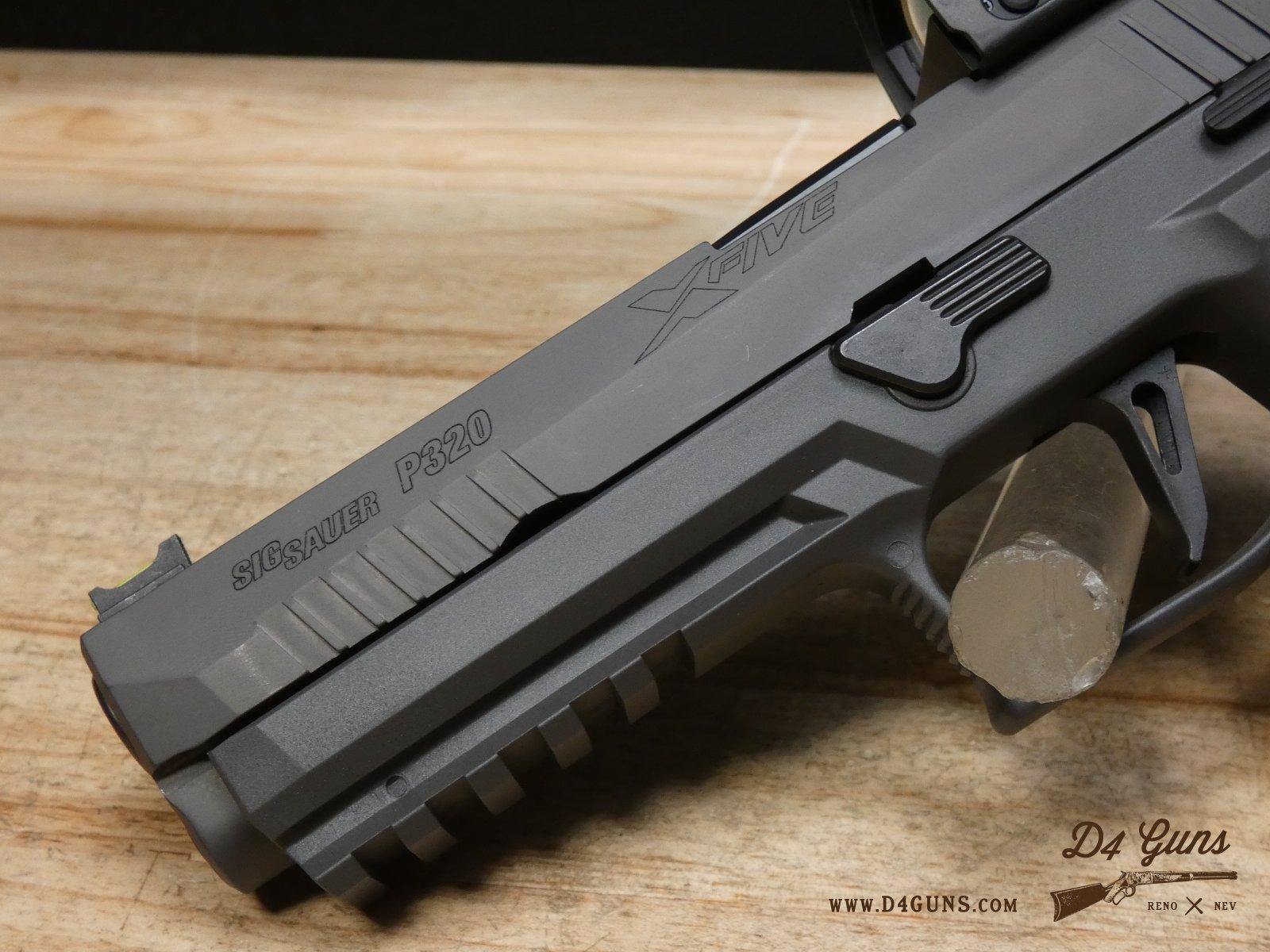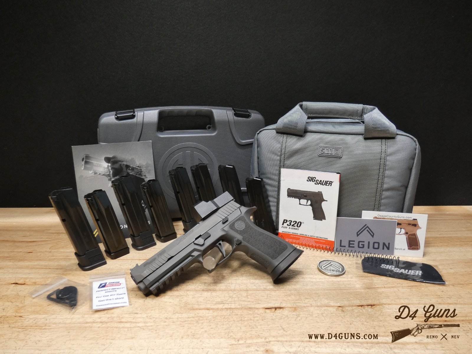 For sale is a Sig Sauer P320 Legion XFIVE semi-automatic SAO pistol in 9mm. The serial number is 58H179729. This pistol comes with the original hard case, carry softcase, eight total magazines (five 21-rounders and three 17-round magazines), and a Sig Romeo1 Pro optic, and much more! The new flagship of the P320 platform brings the perfect balance of added weight and features that result in one of the best shooting pistols in the market. The P320 XFIVE Legion is the ultimate handgun for the serious shooter. The weight was increased to 43.5oz thanks to the innovative TXG tungsten-infused grip module. This new product is the first of its kind in the firearms industry with the weight of steel and the flex of polymer, reducing muzzle flip by up to 50%. The trigger pull of the XFIVE Legion is up to 30% lighter with the new skeletonized trigger, which increases shooting speed and accuracy. The recoil system has been upgraded to use a solid steel guide rod and a 14lb 1911-style spring, with an additional 12lb spring included. The signature Legion Gray finish comes standard, as well as Legion markings on the sight plate and on all three of the Henning Group® anodized aluminum base pads. V2-I3 Barrel Length: 5 Bore condition: Good