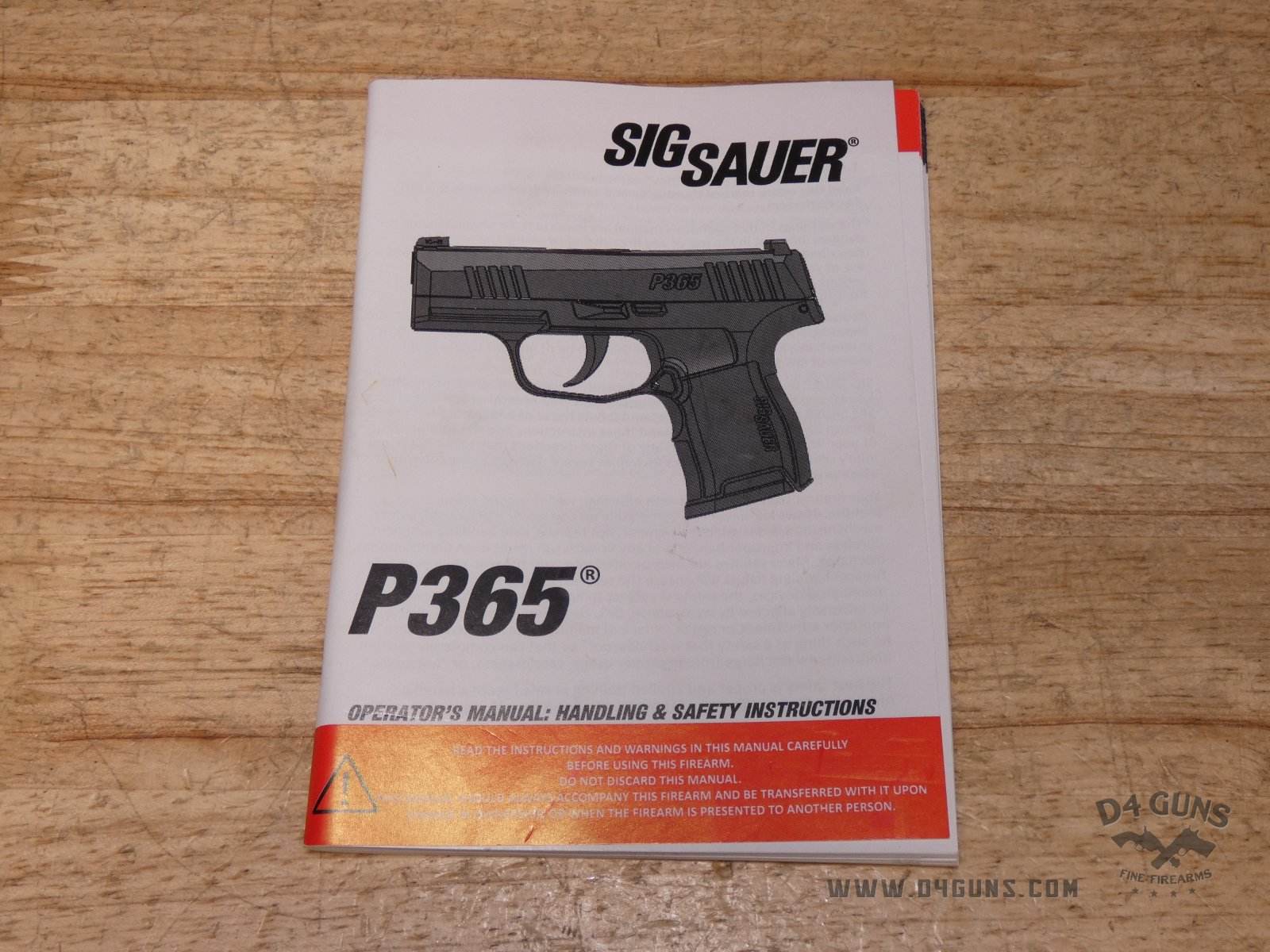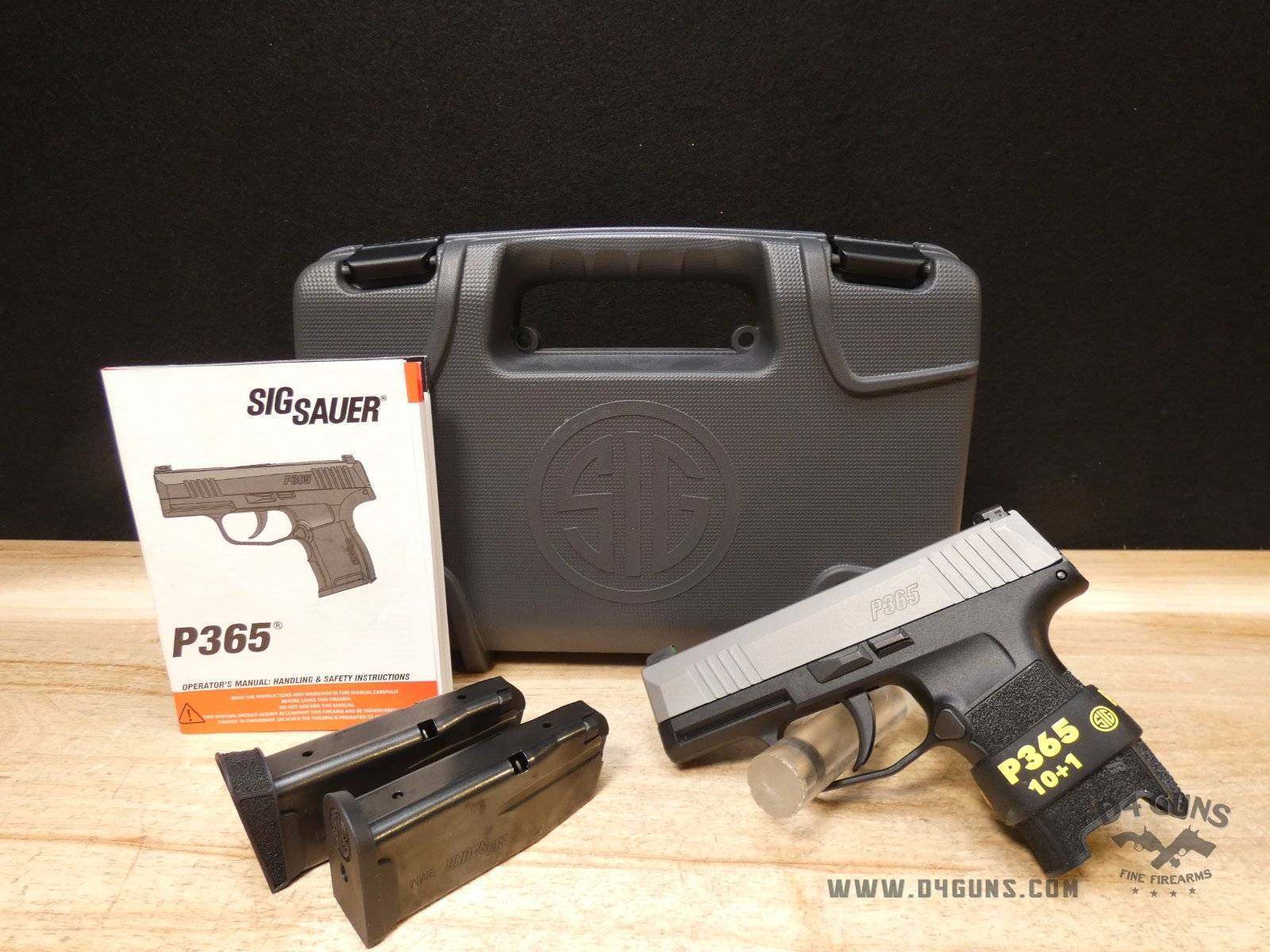 Up for sale is a Sig Sauer P365 semi-automatic pistol in 9mm. Serial number-66A611040. Mfg dated 2019. This pistol is in great condition and comes with the original case, manual, and (2) 10-Round magazines. Introducing the game-changing P365. Micro-compact everyday carry size with unprecedented 10+1 full-size capacity. The P365 is striker-fired, with the clean crisp trigger pull you expect from a SIG. Lightweight and easy to conceal, the P365 is chambered in 9mm and is rated for +P ammunition. Included standard are XRAY3 Day/Night sights V2-H3 Barrel Length: 3.1 Bore condition: Excellent Year Manufactured: 2019
