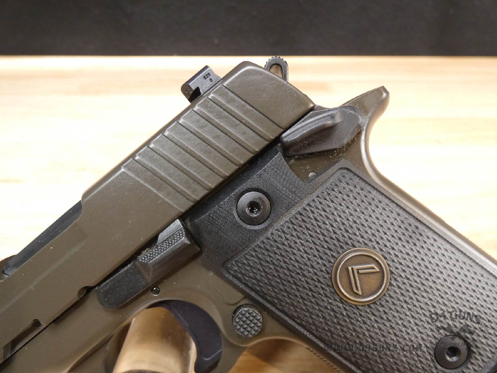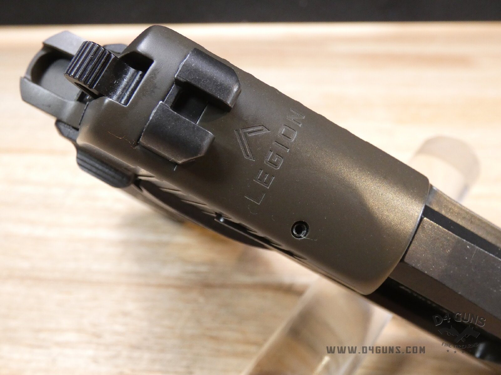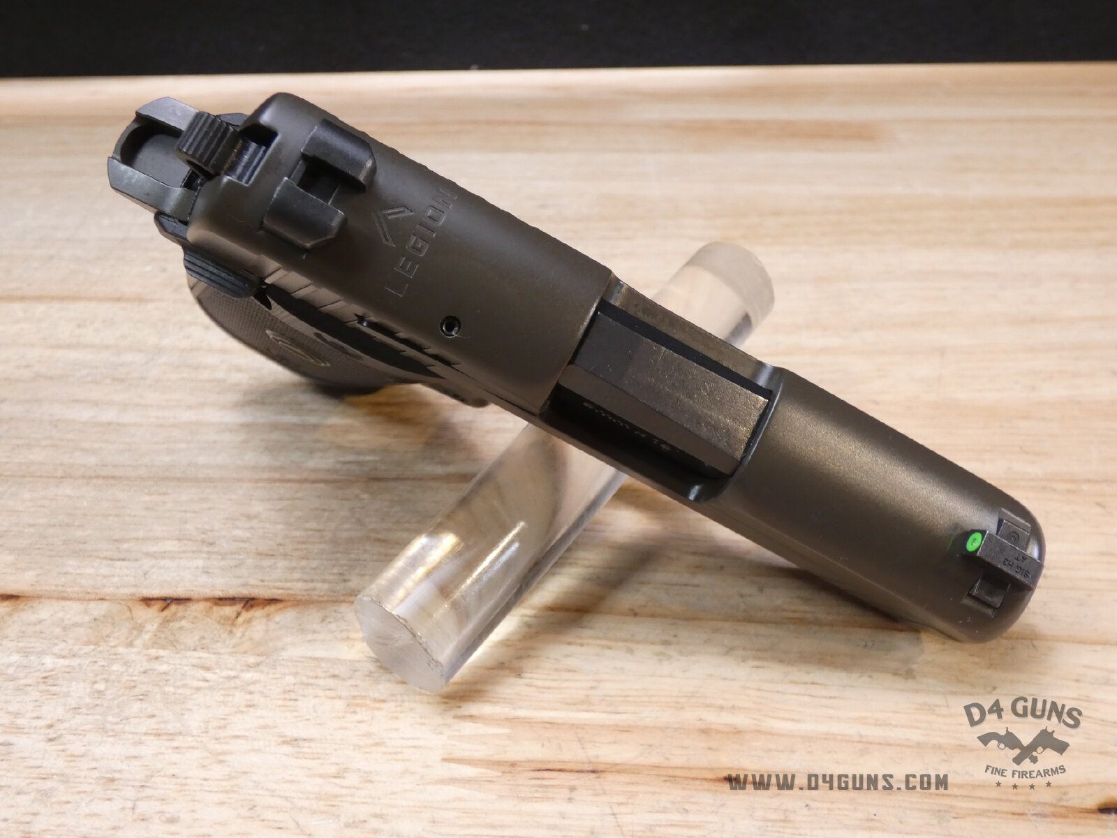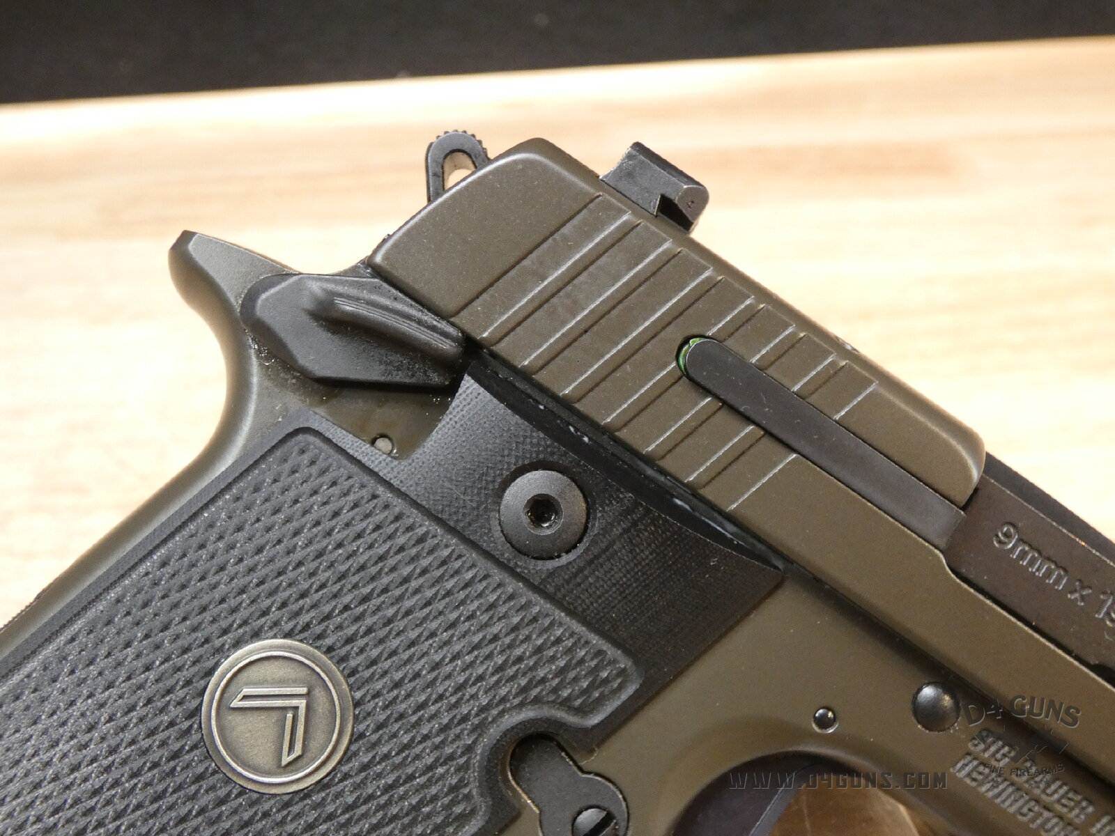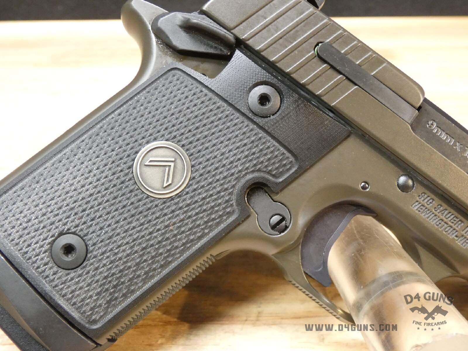 Up for grabs is a Compact Sig Sauer P938 Legion single-action-only semi-automatic in 9mm. Serial number- 52E084400. This P938 is in excellent condition. It comes with the original hardcase with instruction manual and lock inside, 3 seven round steel magazines and a leather holster. The P938 Legion includes a precision machined aluminum trigger and trigger guard checkering along with an ambidextrous thumb safety allowing for easy manipulation and accuracy. The slide features front cocking serrations and X-RAY3 Day/Night sights. The grips are Legion Black G-10 grips with an embedded Legion medallion. With the P938, Sig Sauer offers the ballistic advantage of the 9mm cartridge in a platform similar in size to the best-selling P238 pistol. A single-action-only trigger makes the P938 handle like a much larger pistol, yet is still easy to carry concealed. V2-I2 Barrel Length: 3 Bore condition: Excellent