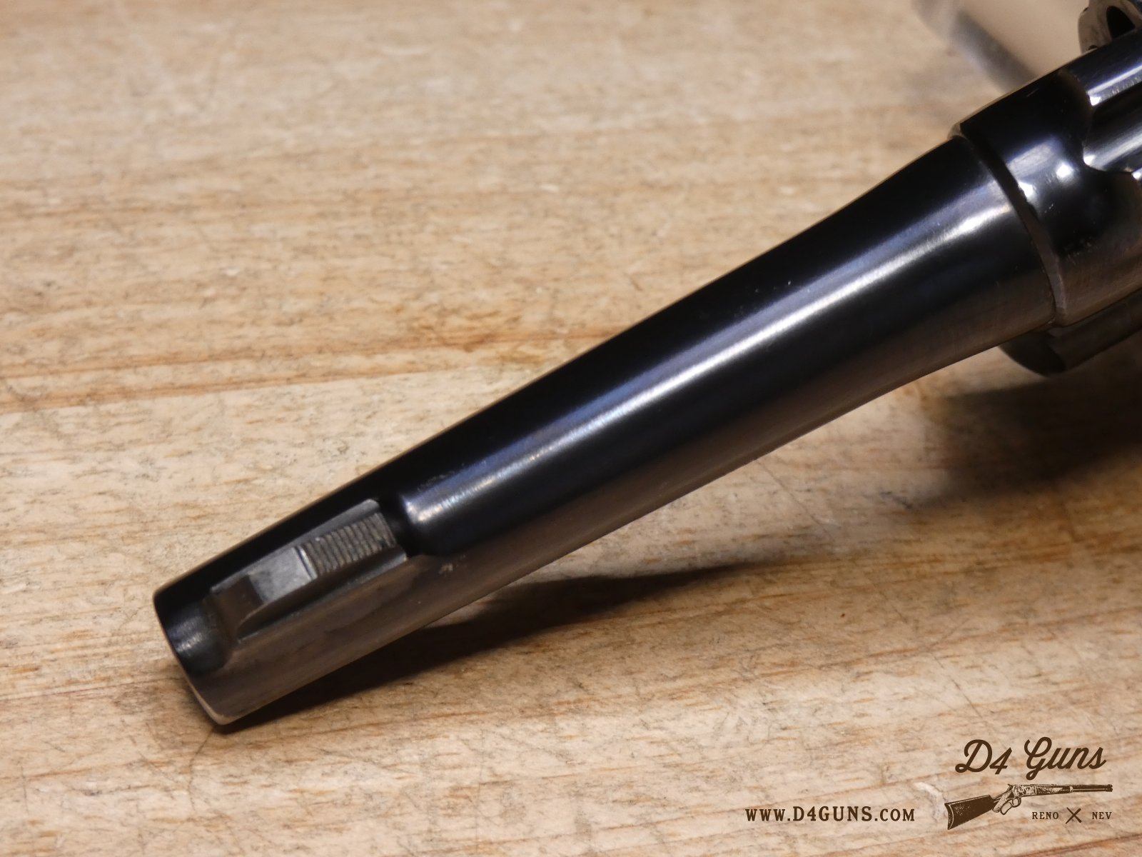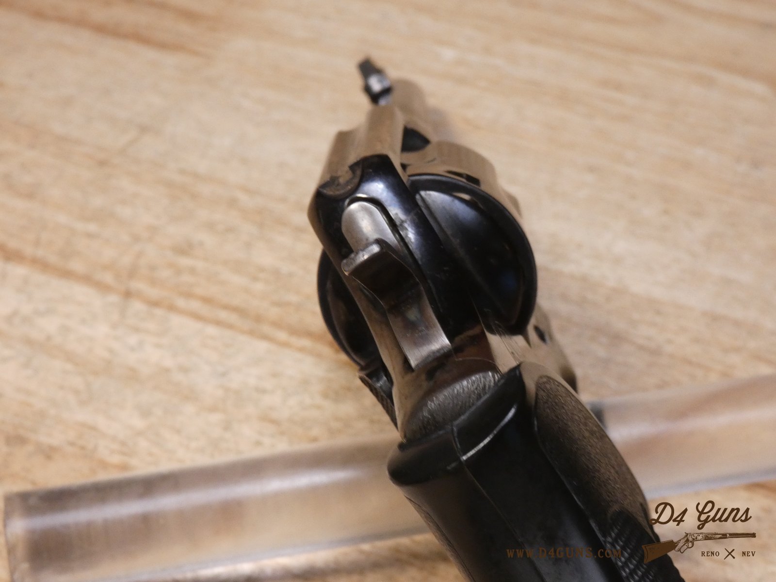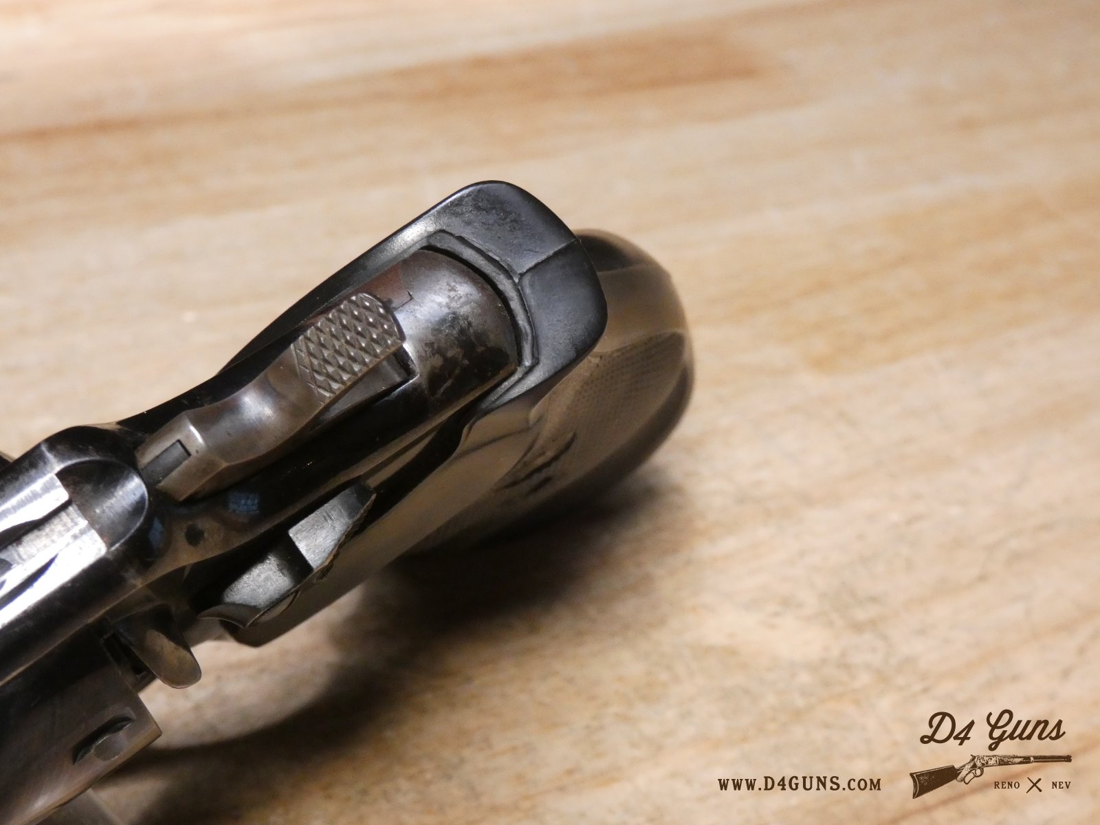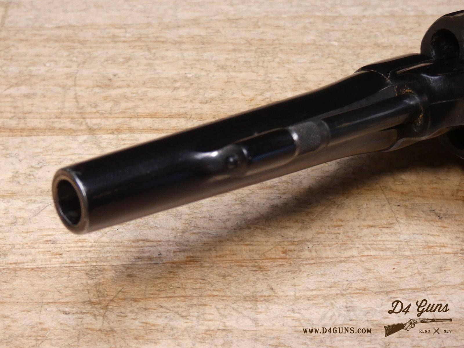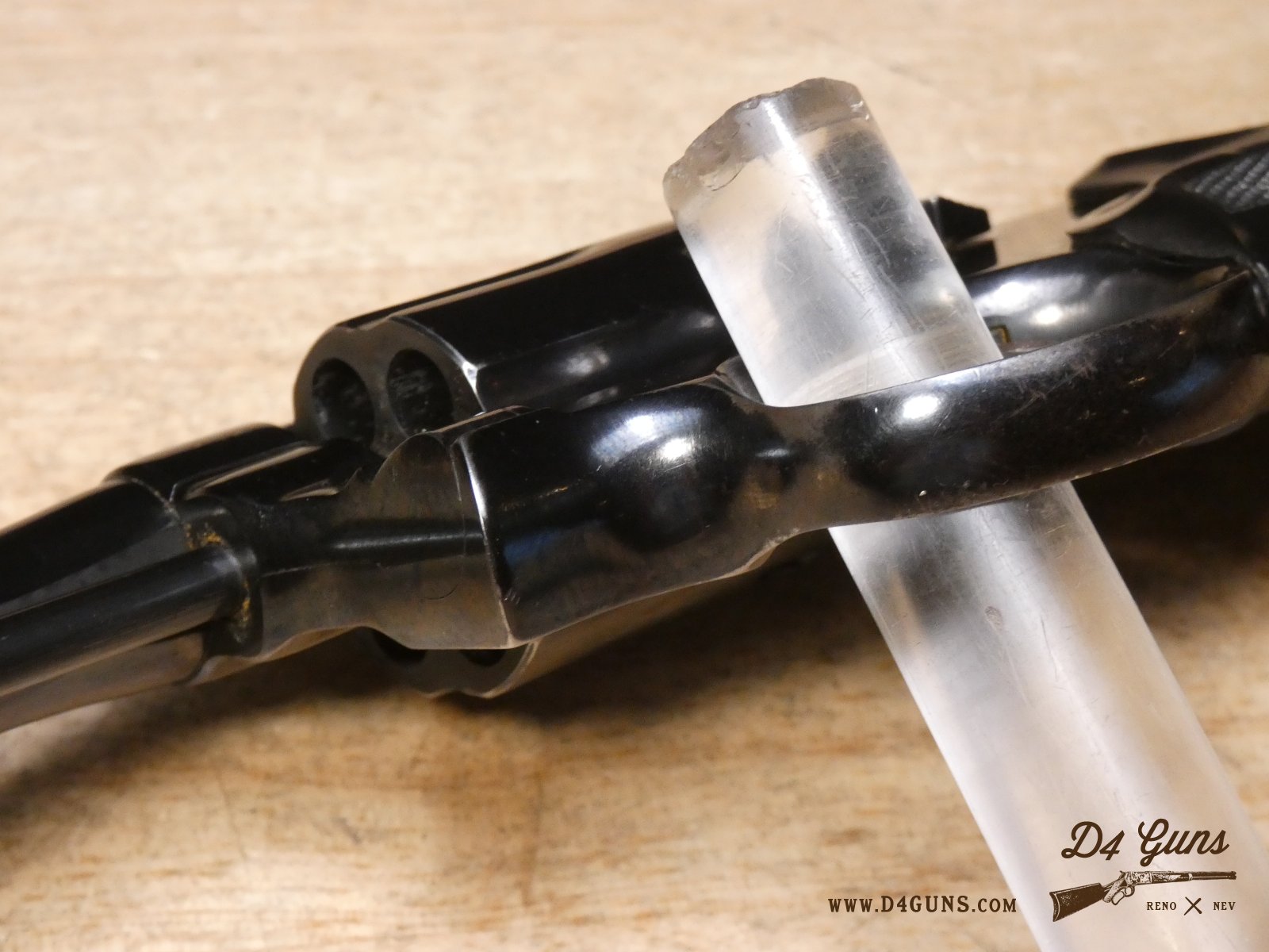 For sale is a Smith & Wesson Model 10-5 revolver pistol in .38 Special. Serial number- D531608. In production since 1899, the Model 10 is a six-shot, .38 Special, double-action revolver with fixed sights. Some 6,000,000 of the type have been produced over the years, making it the most popular handgun of the 20th century. Features Pachmyer rubber grips! V2-E3 Barrel Length: 4 Bore condition: Good