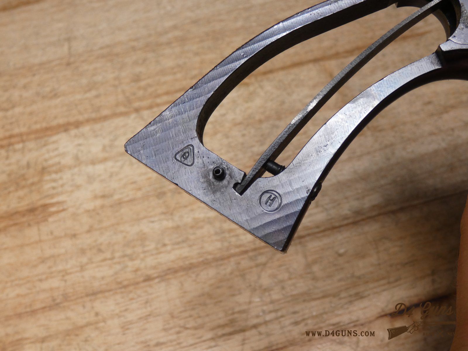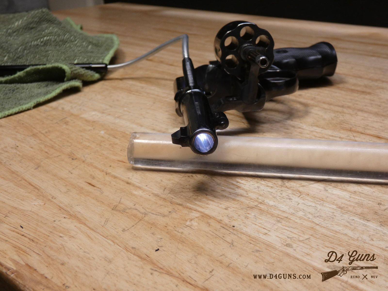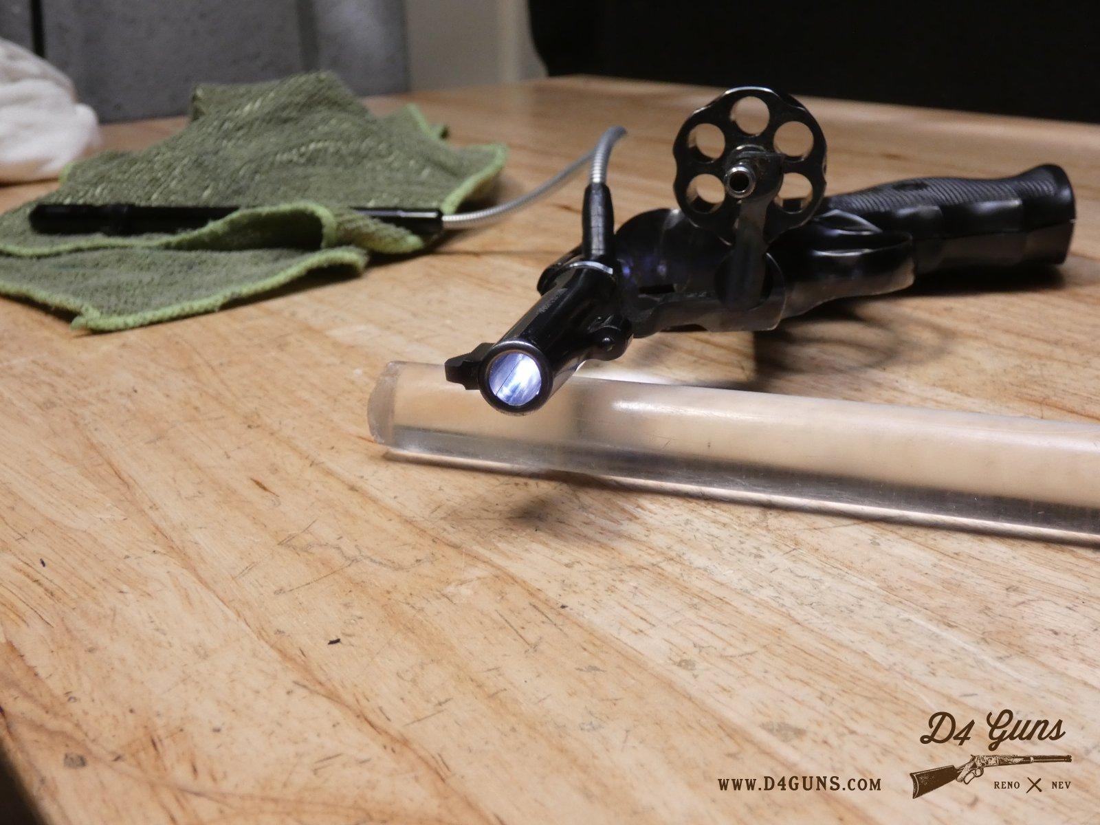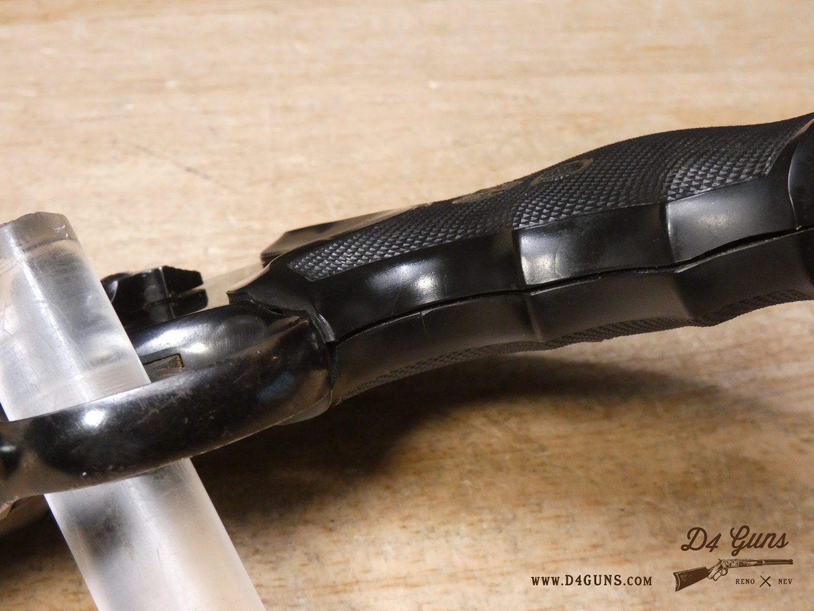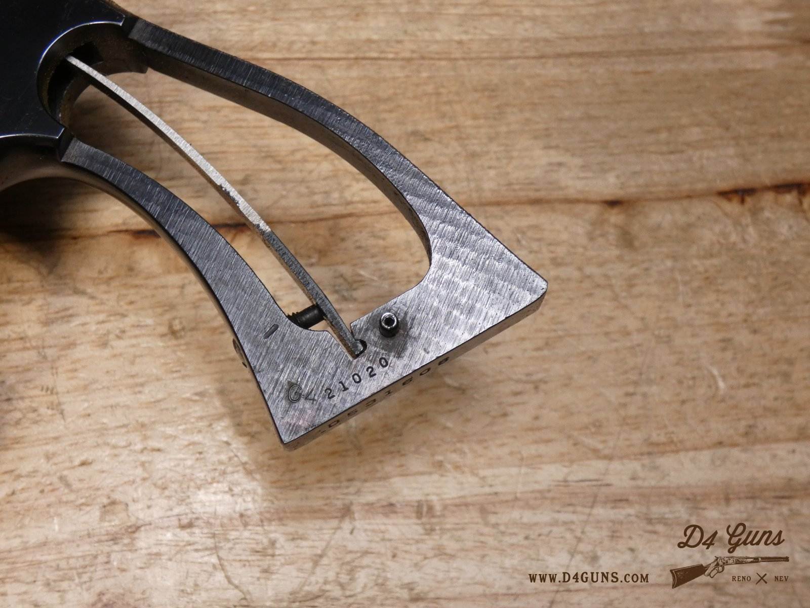 For sale is a Smith & Wesson Model 10-5 revolver pistol in .38 Special. Serial number- D531608. In production since 1899, the Model 10 is a six-shot, .38 Special, double-action revolver with fixed sights. Some 6,000,000 of the type have been produced over the years, making it the most popular handgun of the 20th century. Features Pachmyer rubber grips! V2-E3 Barrel Length: 4 Bore condition: Good