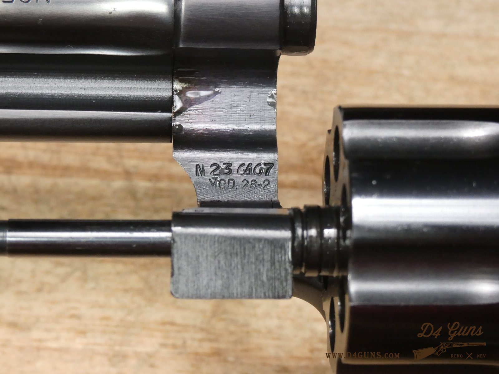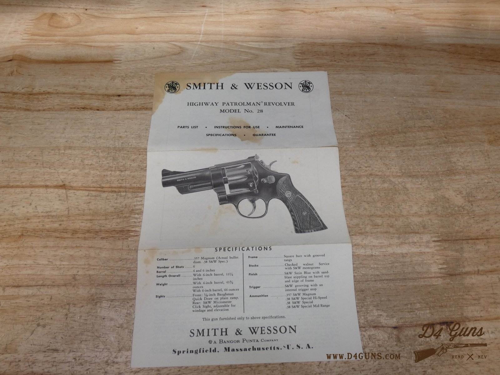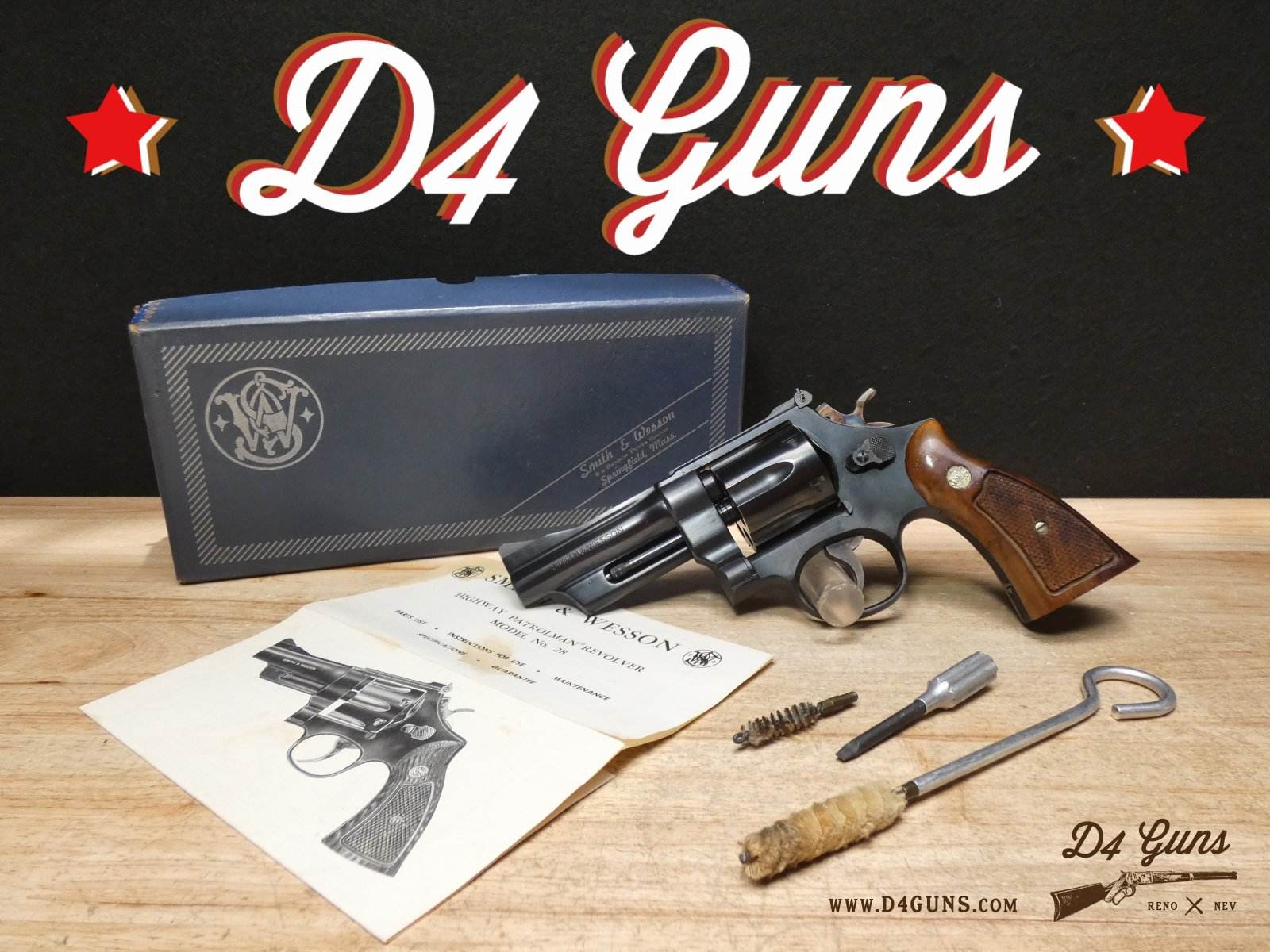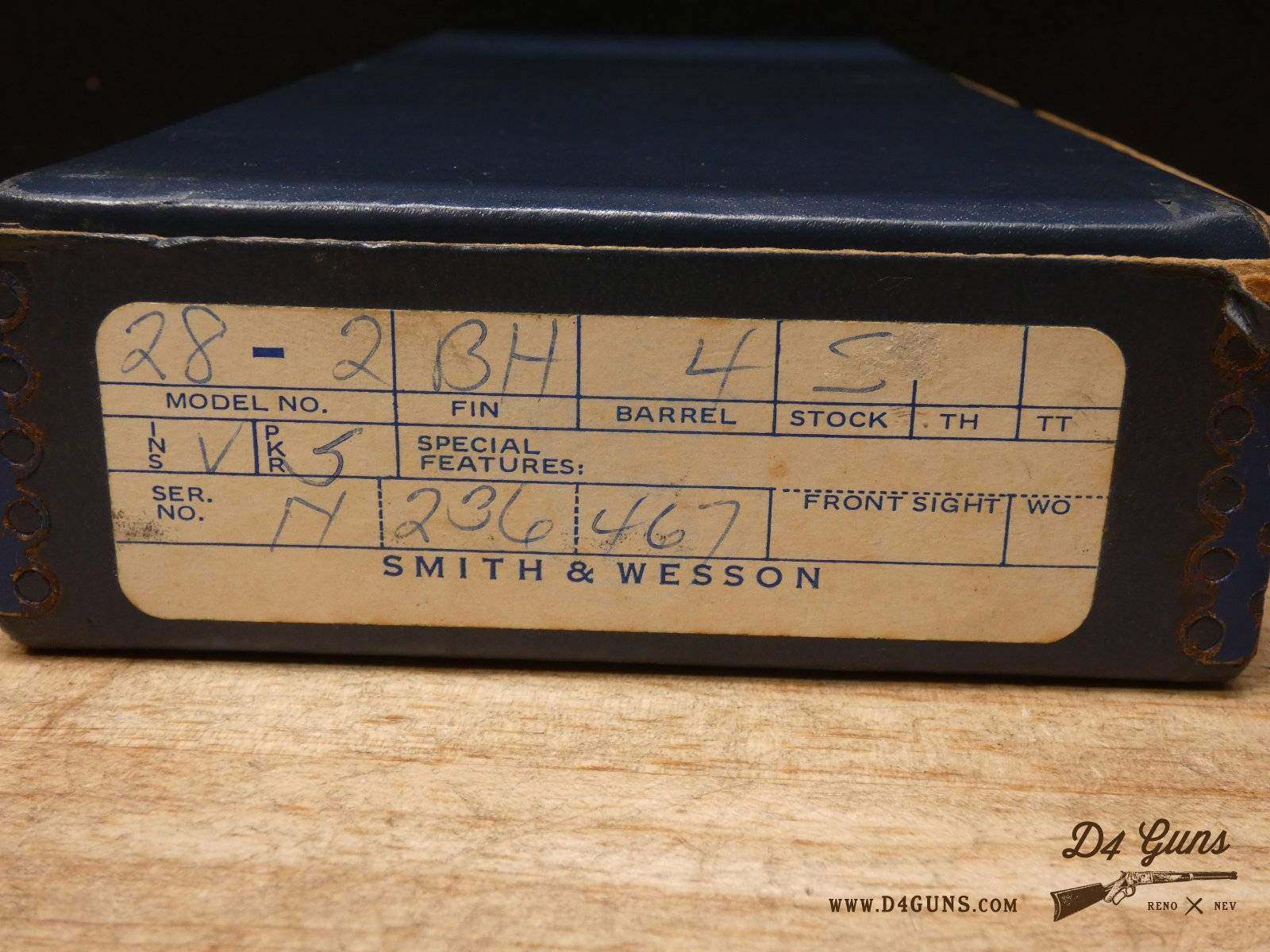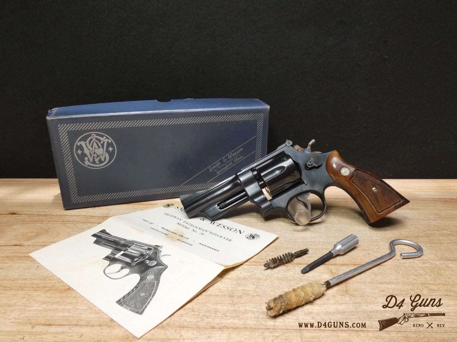 For sale is a Smith & Wesson 28-2 Highway Patrolman double-action revolver in .357 Mag. Serial number – N236467. This revolver is in great condition and it comes with the original box, manual, and cleaning kit. The Model 28, also known as the Highway Patrolman, traces its heritage back to the Smith & Wesson Registered Magnum. The Registered Magnum morphed into the 357 Magnum (first production model completed April 8, 1935). The Model 27 & 28 have featured in a number of movies including Patton, The Godfather, Fargo, Police Academy, and Bad Boys. V2-I2 Barrel Length: 4 Bore condition: Excellent