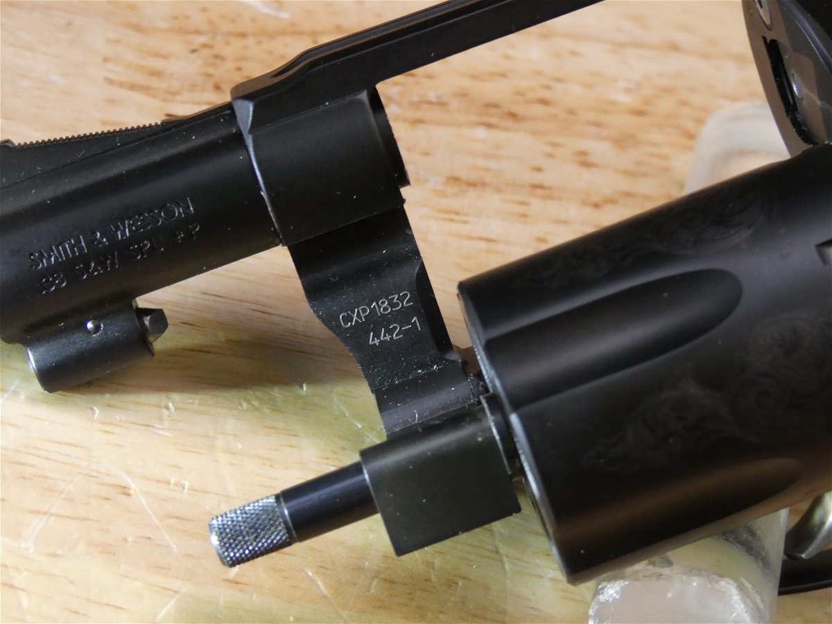 For sale is a Smith & Wesson 442-1 revolver in .38 Spl. Serial number- CXP1832. This revolver is in good condition and comes with the original manual. Smith & Wesson J-Frame revolvers have had your back since 1950. These small revolvers were designed to fire a full power round and are as simple and easy to use as they are reliable. Available in various calibers and with three diverse hammer designs, it is no surprise that the Smith & Wesson J-Frame has become the most popular, small-frame, defense revolver on the market. The Model 442 is the latest innovation of the Model 42 Centennial Airweight, a lightweight aluminum alloy revolver with a fully concealed hammer. Beautifully enhanced with diamond-tipped machine tool scroll engravings on the frame and cylinder, the Model 442 integrates the time-tested features of the original with modern advancements. V2-H3-NV Barrel Length: 2 Bore condition: Excellent
