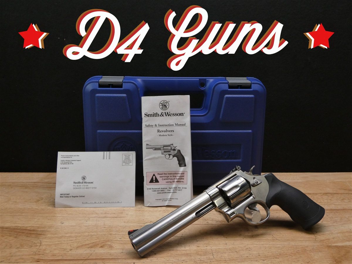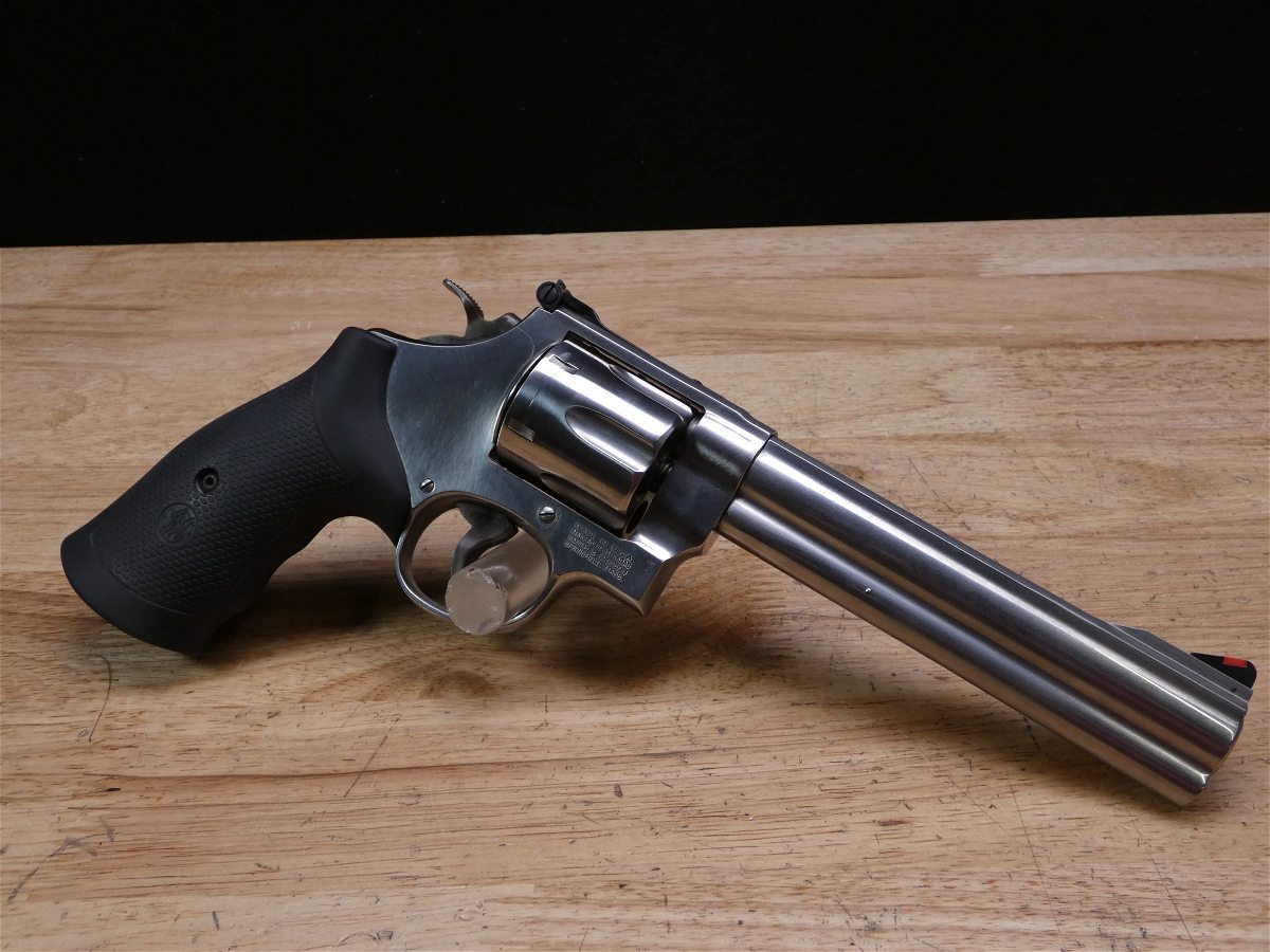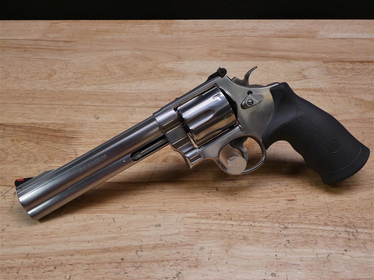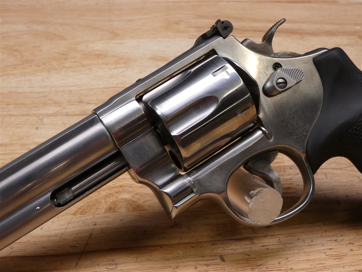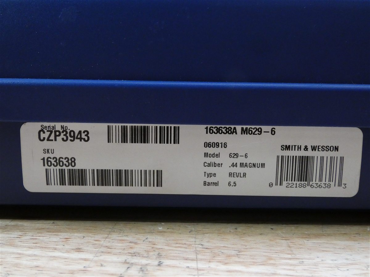 For sale is a Smith & Wesson 629-6 stainless revolver in .44 Mag. Serial number- CZP3943. This revolver is in great condition and comes with the original case, manual, cable lock, hammer lock, and Hogue grips. Lockup is tight and timing is on. As a Smith & Wesson's large N-frame revolver, this Smith & Wesson Model 629-6 6 1/2" Barrel Revolver is a favorite choice among handgun hunters, competitive shooters, and revolver enthusiasts. V2-F4-NV Barrel Length: 6.5 Bore condition: Excellent