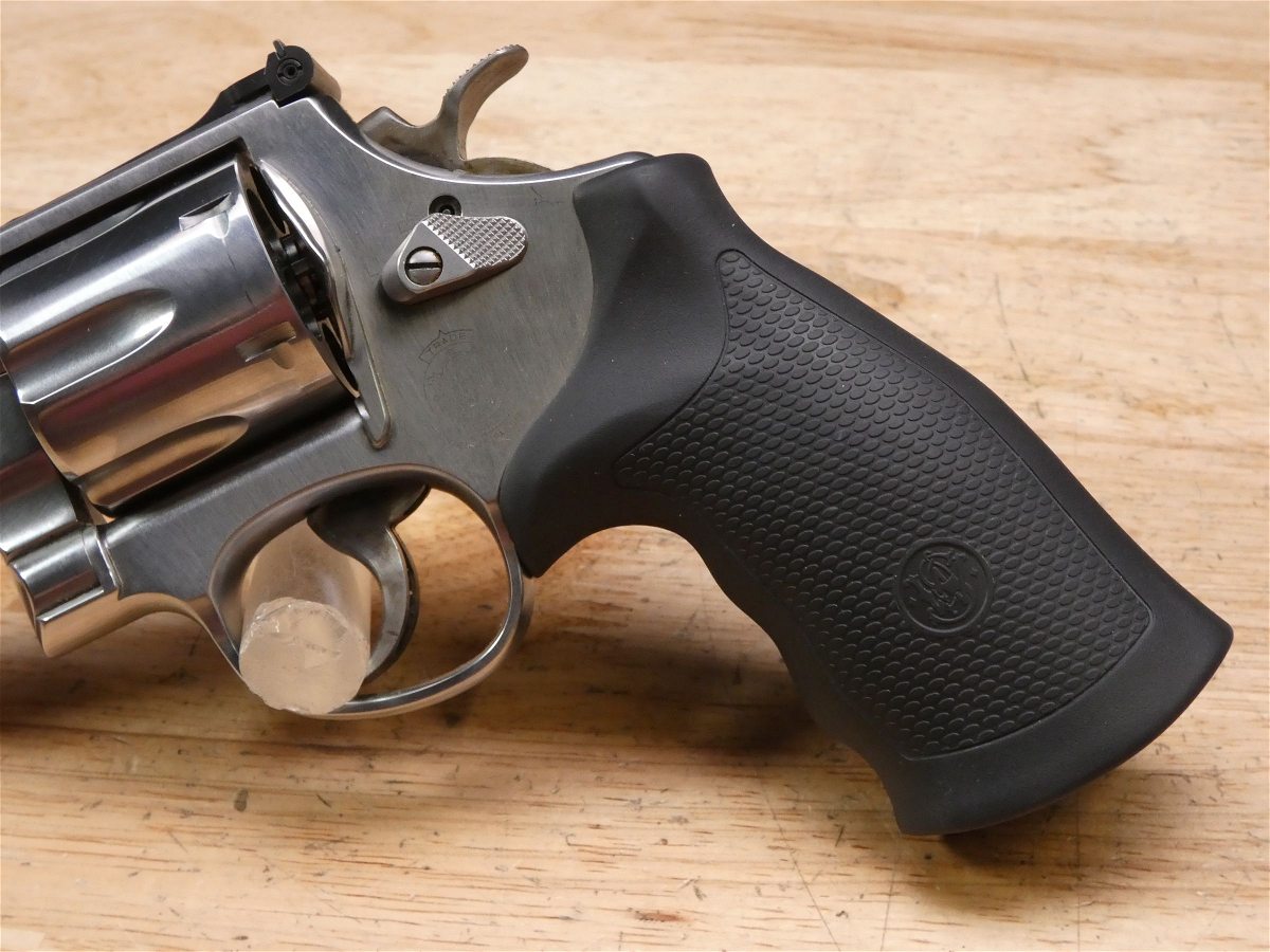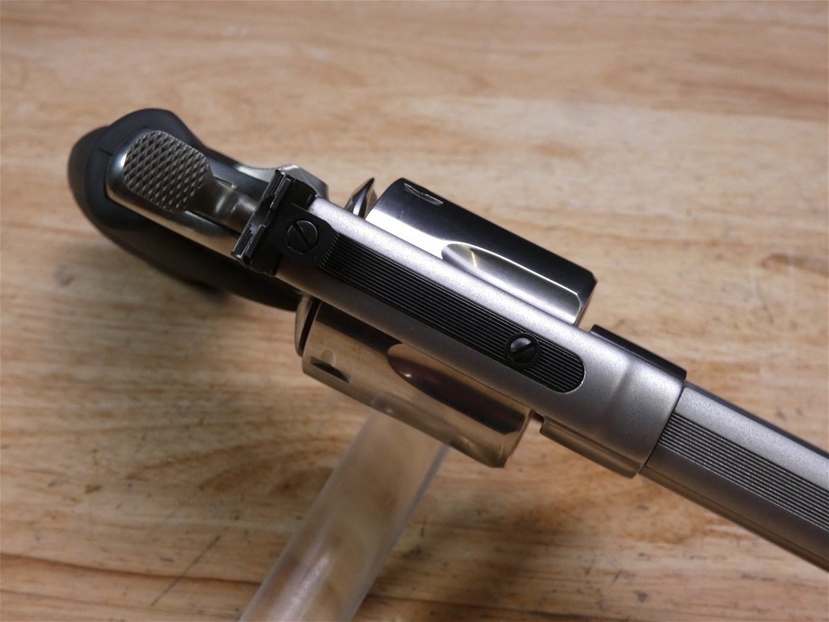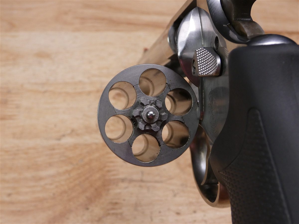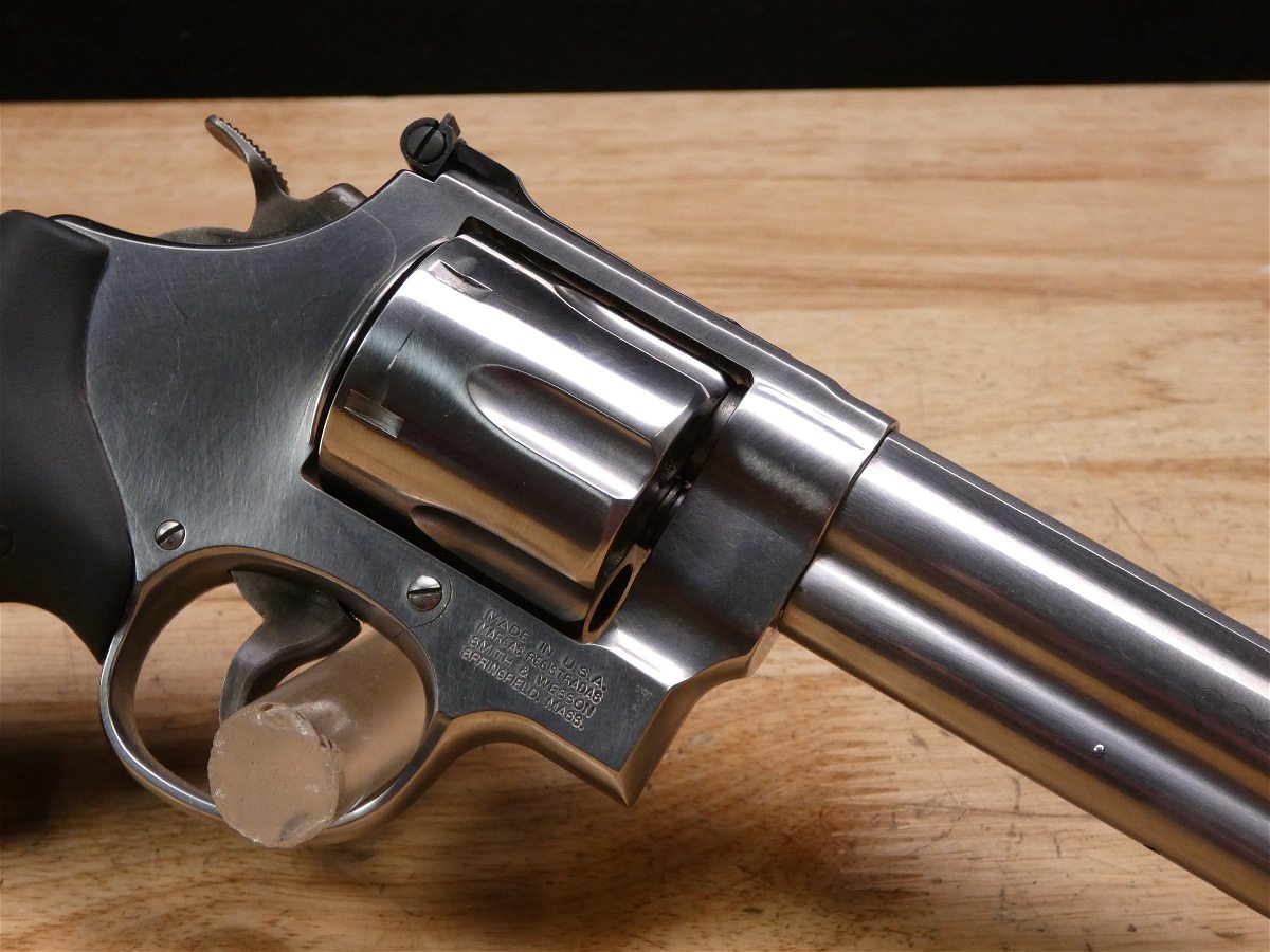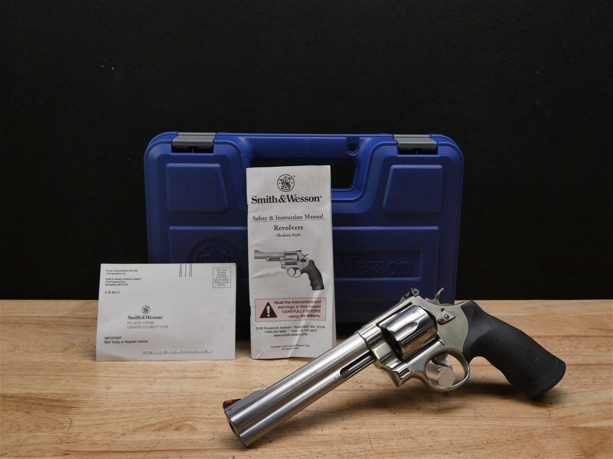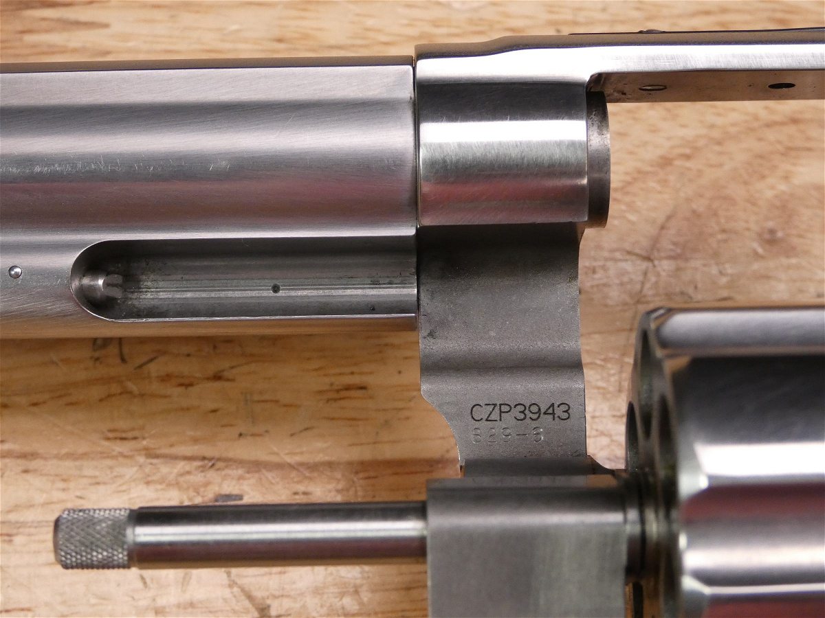 For sale is a Smith & Wesson 629-6 stainless revolver in .44 Mag. Serial number- CZP3943. This revolver is in great condition and comes with the original case, manual, cable lock, hammer lock, and Hogue grips. Lockup is tight and timing is on. As a Smith & Wesson's large N-frame revolver, this Smith & Wesson Model 629-6 6 1/2" Barrel Revolver is a favorite choice among handgun hunters, competitive shooters, and revolver enthusiasts. V2-F4-NV Barrel Length: 6.5 Bore condition: Excellent