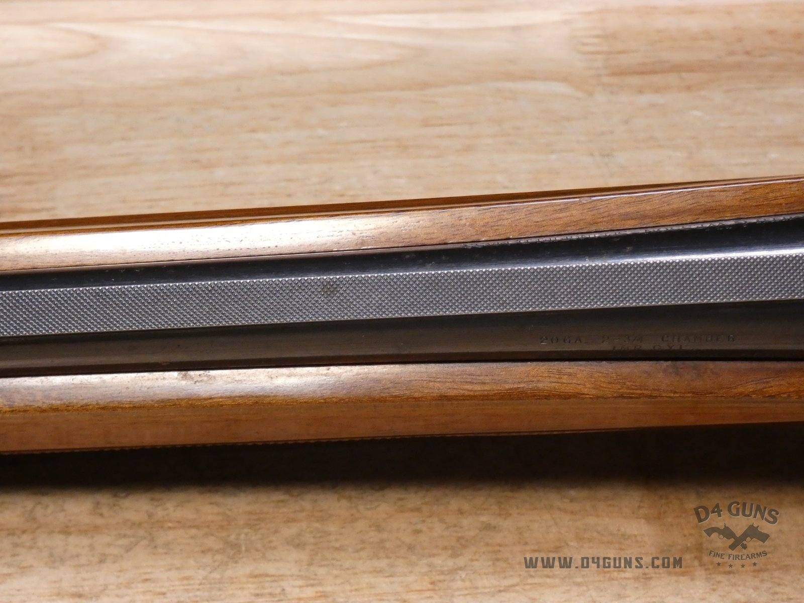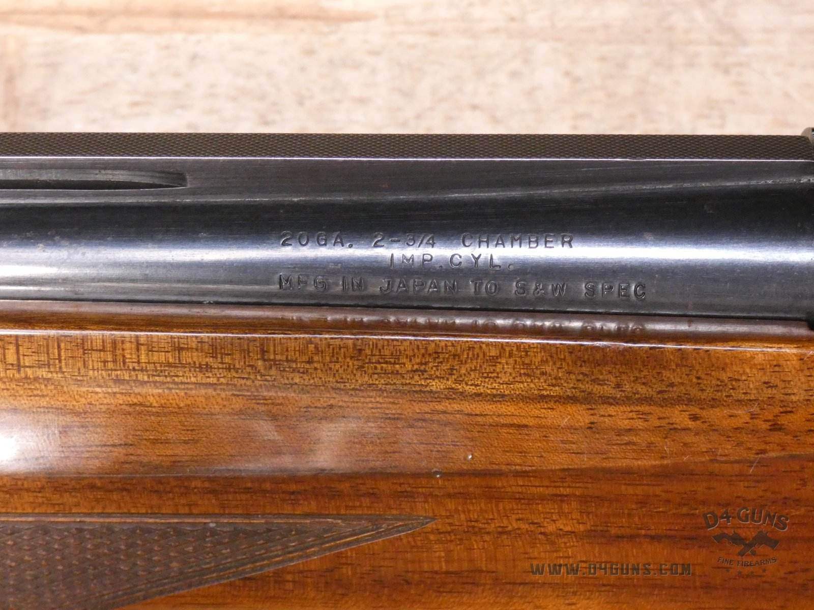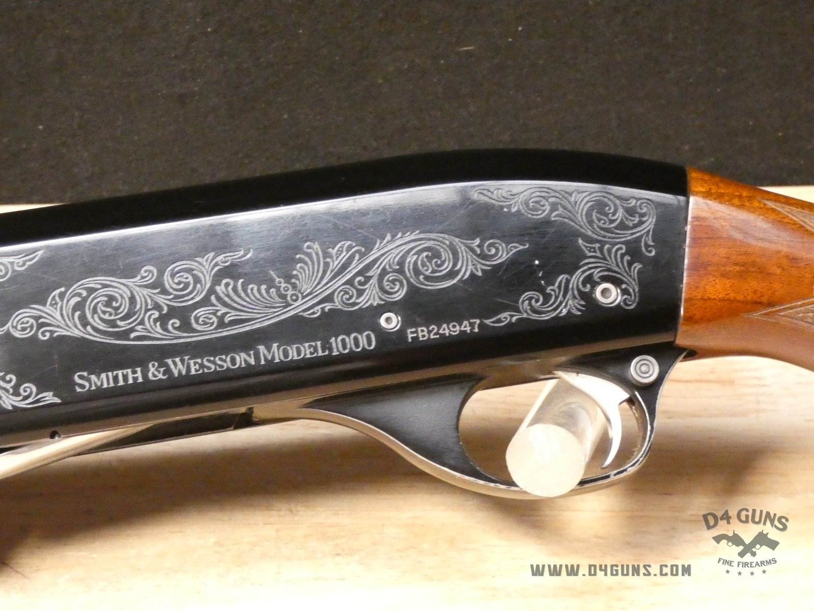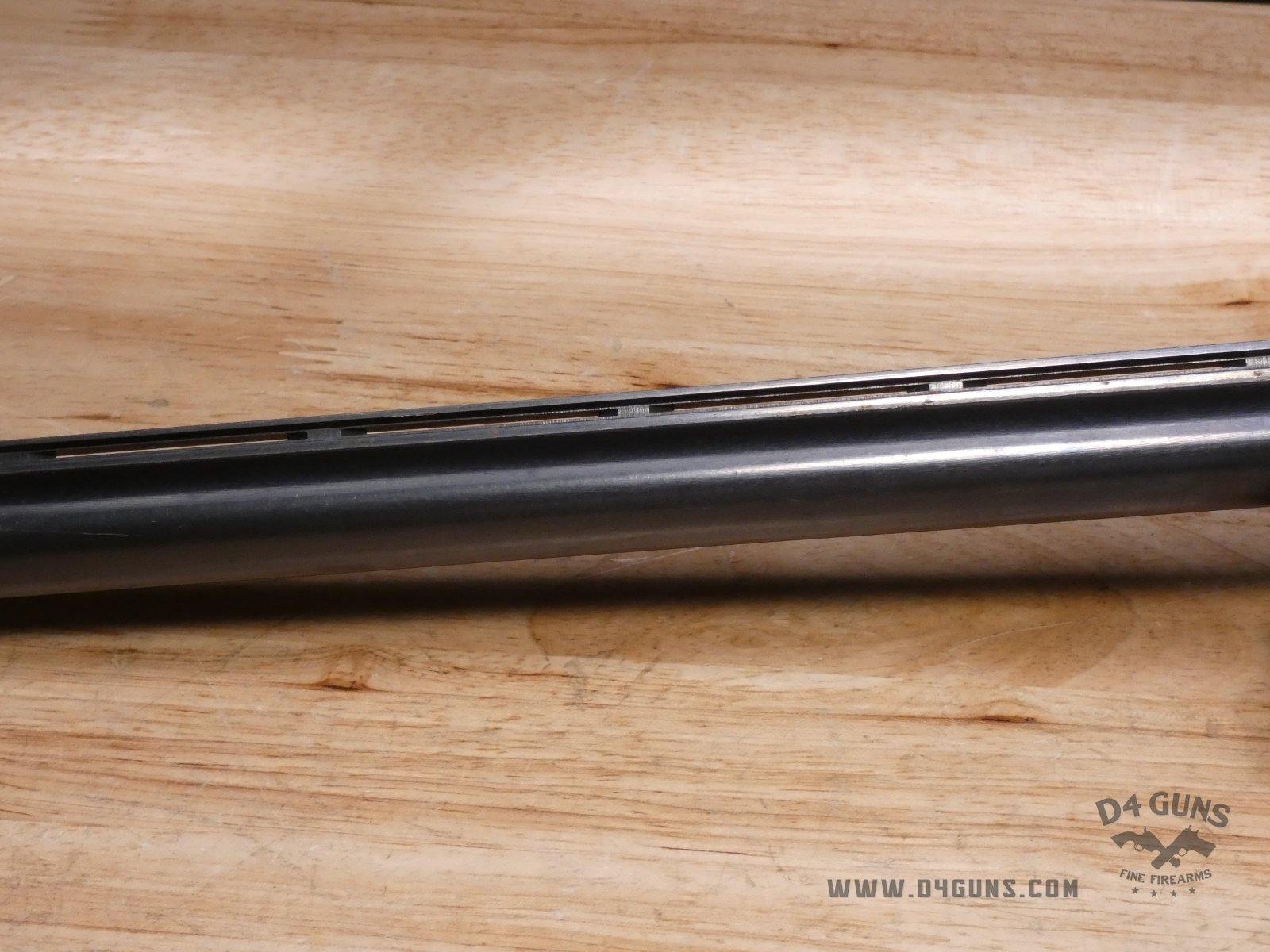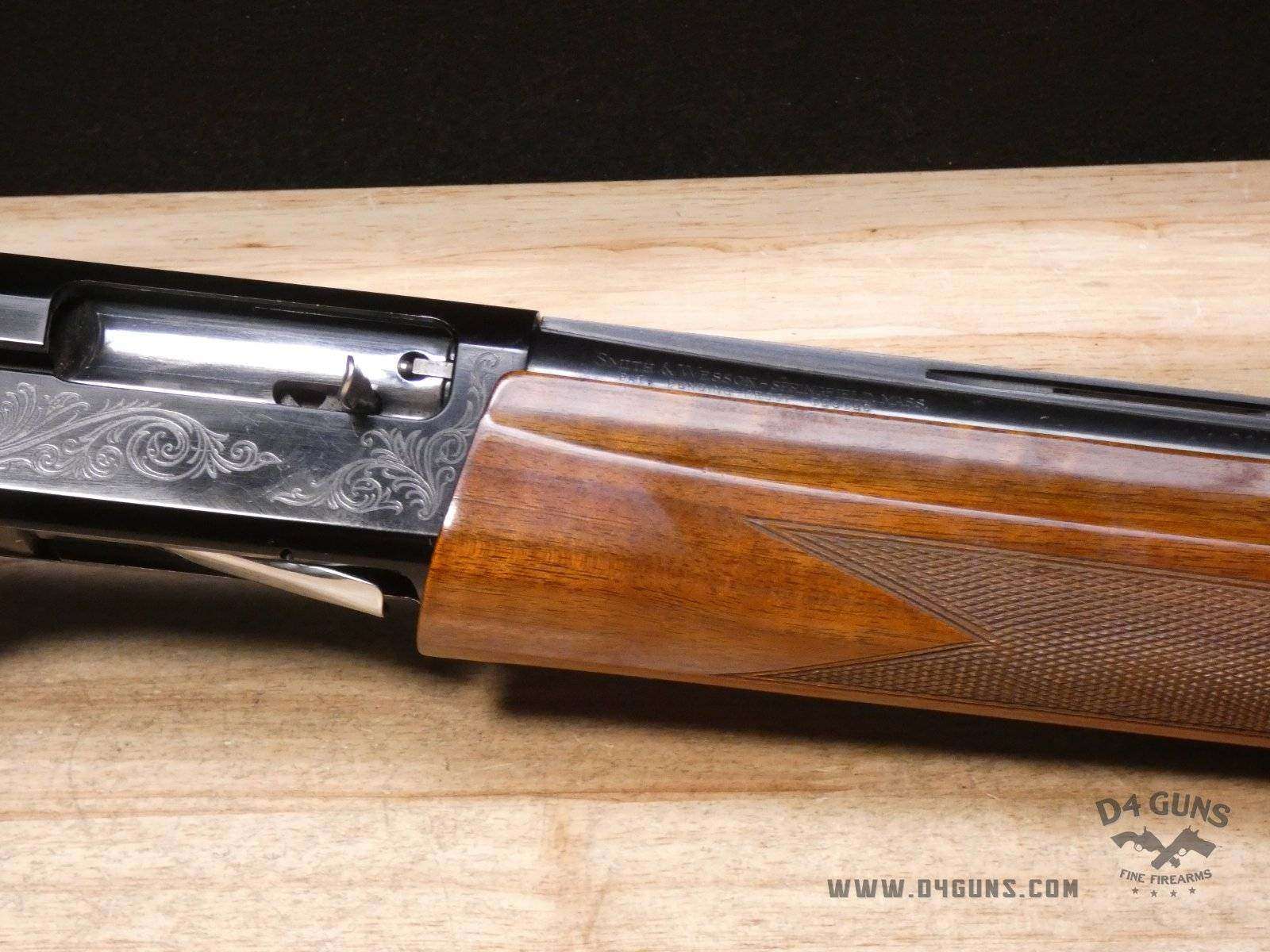 For sale is a Smith & Wesson Model 1000 semi-automatic shotgun in 20ga. Serial number- FB24947. PLEASE NOTE: There is a crack present near the rear end of the stock. This shotgun has a 2 3/4" chamber with an improved cylinder. Here's the reason the Model 1000 performs when other autoloaders fail. The patented internal gas metering system compensates for pressure differences in ammunition to control bolt velocity and minimize stress on the receiver and action. This shotgun was manufactured in the late 70s or early 80s. V1-D1 Barrel Length: 26 Bore condition: Good