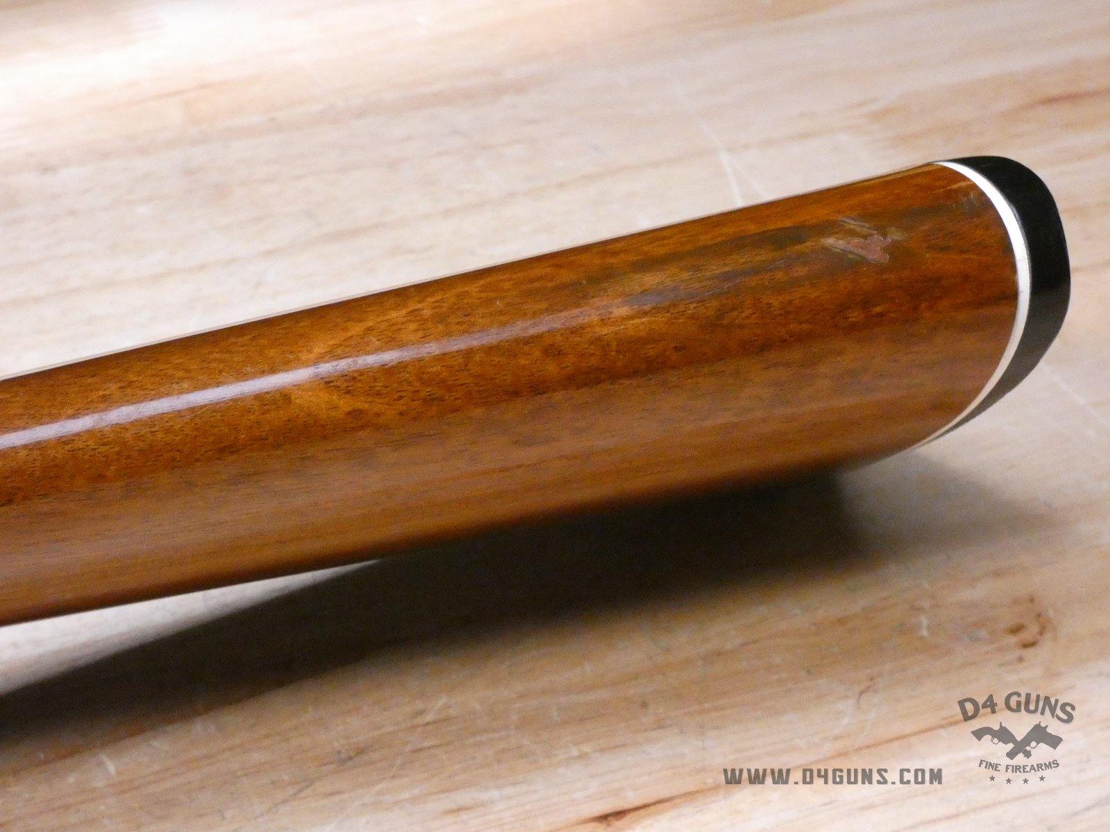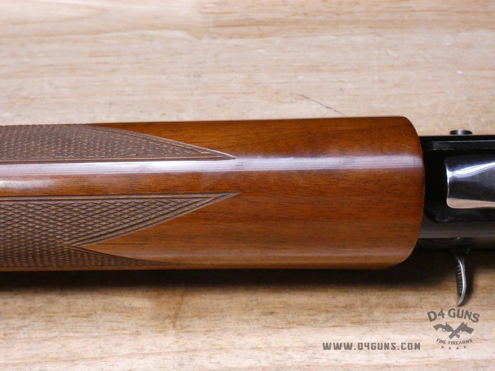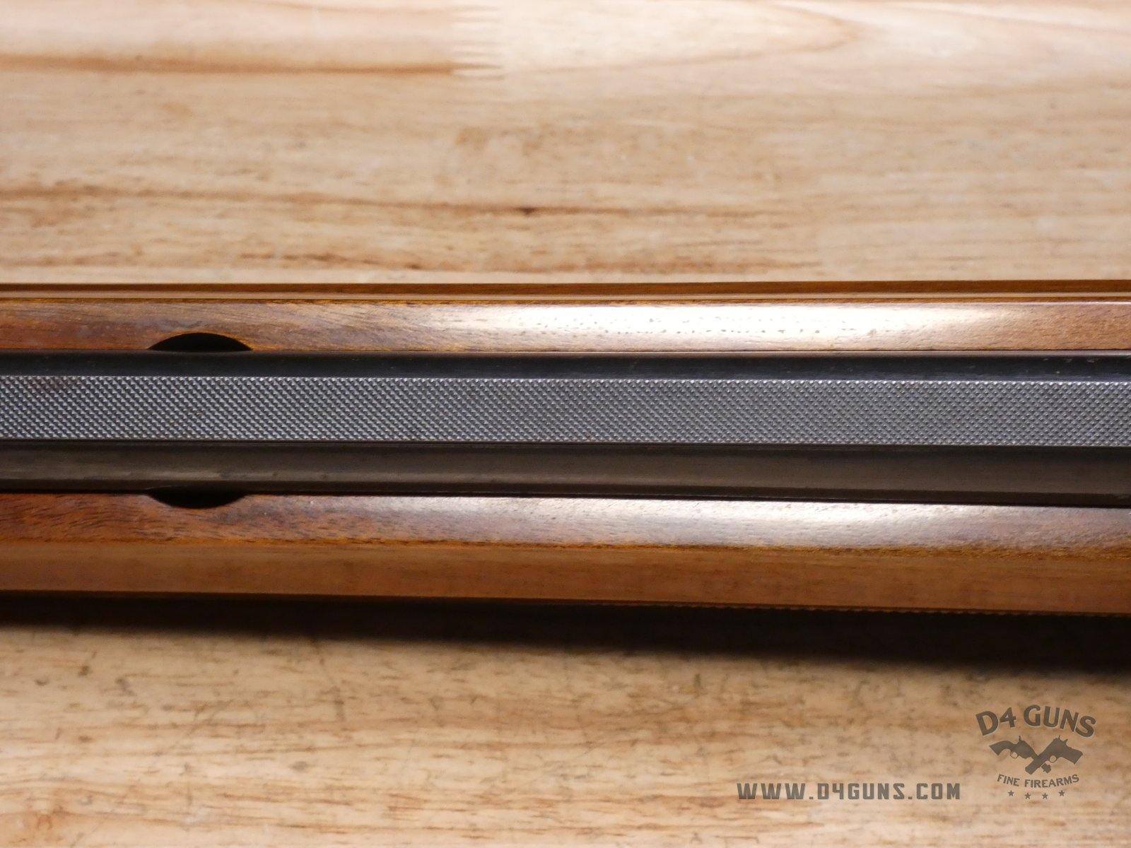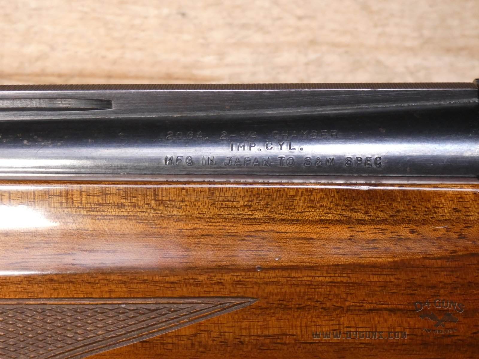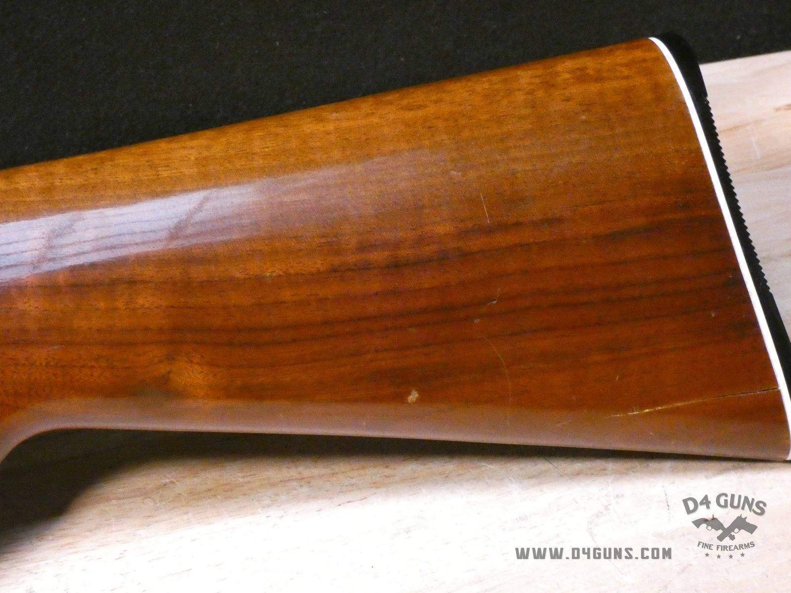 For sale is a Smith & Wesson Model 1000 semi-automatic shotgun in 20ga. Serial number- FB24947. PLEASE NOTE: There is a crack present near the rear end of the stock. This shotgun has a 2 3/4" chamber with an improved cylinder. Here's the reason the Model 1000 performs when other autoloaders fail. The patented internal gas metering system compensates for pressure differences in ammunition to control bolt velocity and minimize stress on the receiver and action. This shotgun was manufactured in the late 70s or early 80s. V1-D1 Barrel Length: 26 Bore condition: Good