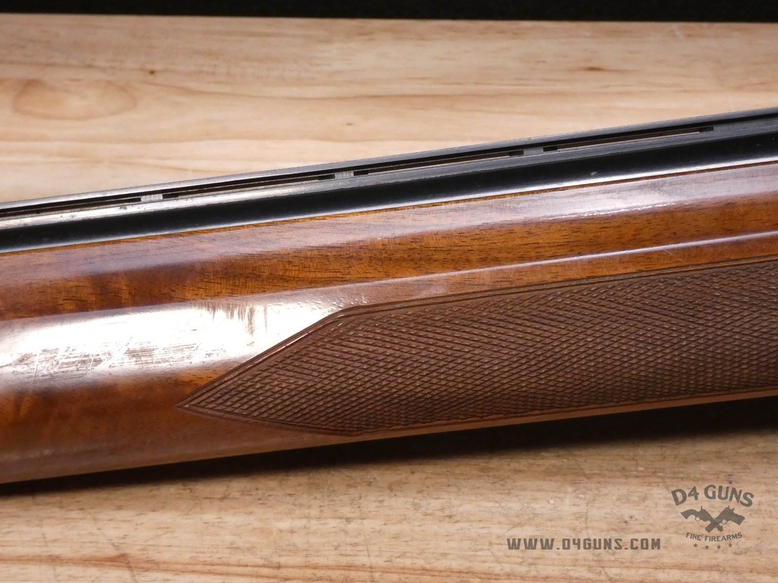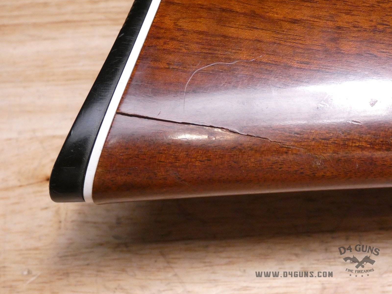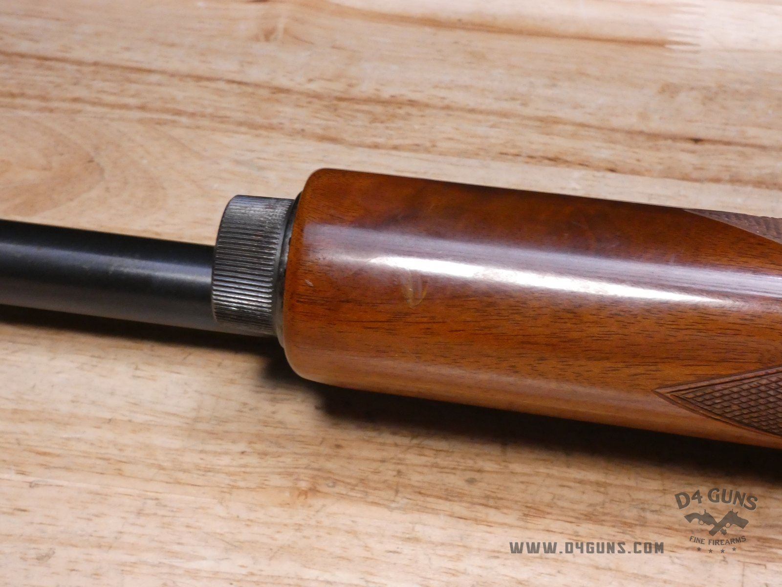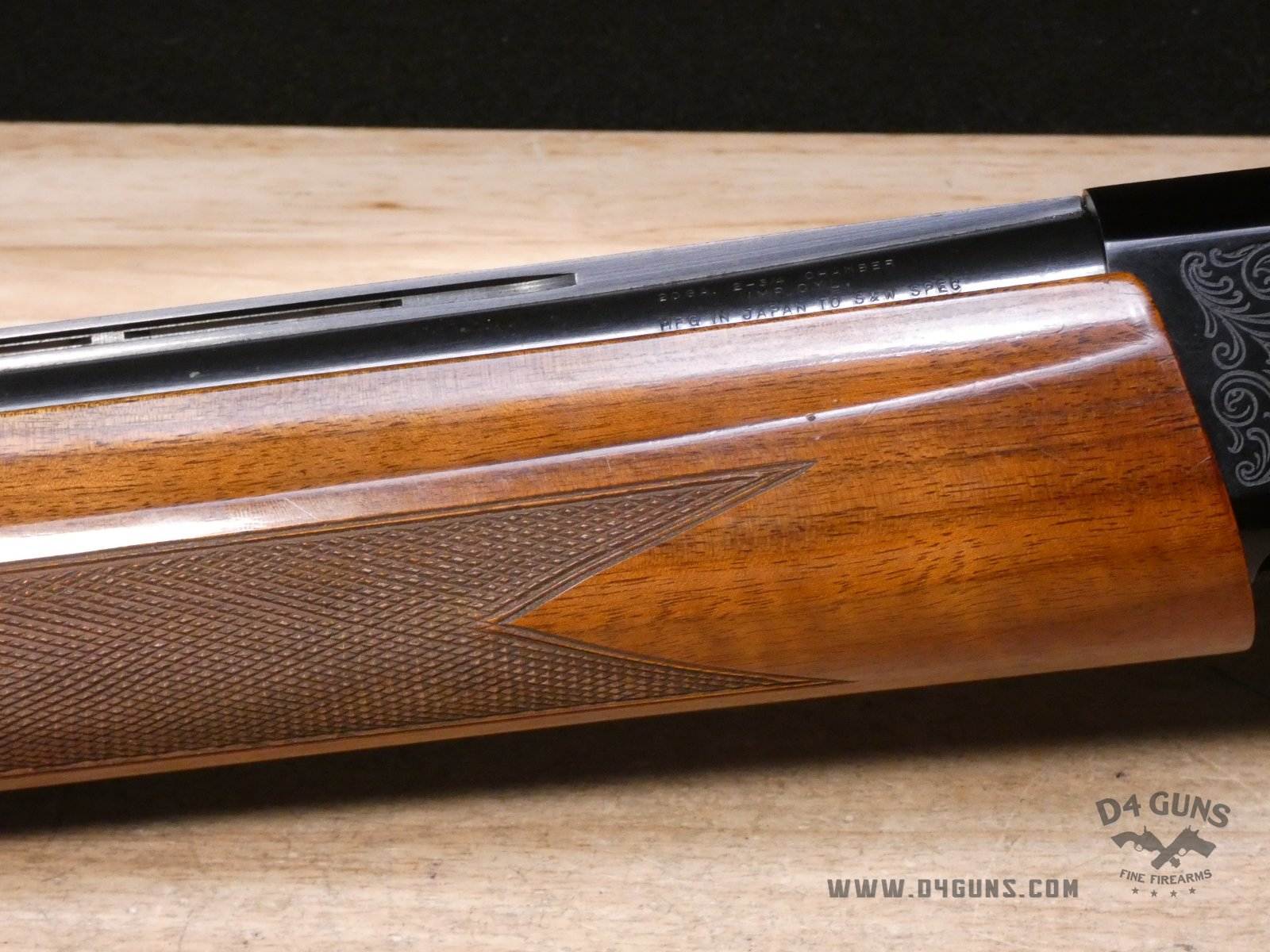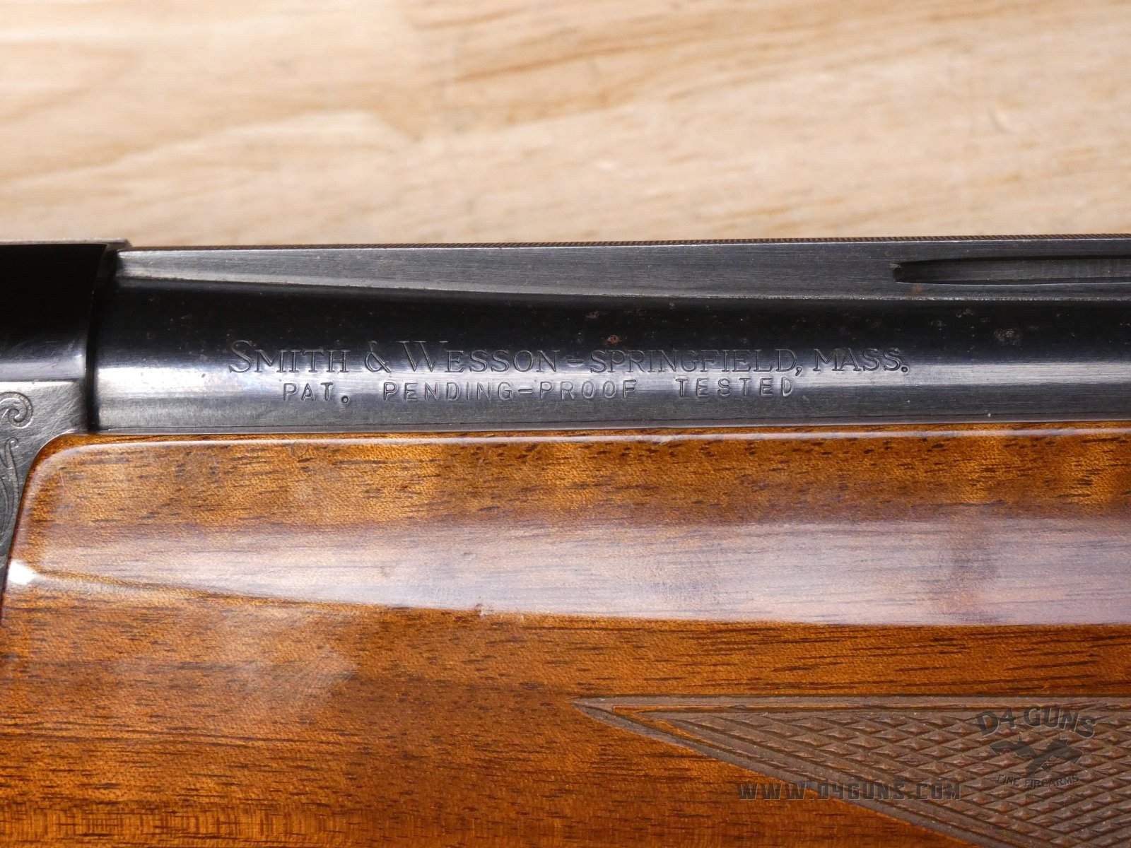 For sale is a Smith & Wesson Model 1000 semi-automatic shotgun in 20ga. Serial number- FB24947. PLEASE NOTE: There is a crack present near the rear end of the stock. This shotgun has a 2 3/4" chamber with an improved cylinder. Here's the reason the Model 1000 performs when other autoloaders fail. The patented internal gas metering system compensates for pressure differences in ammunition to control bolt velocity and minimize stress on the receiver and action. This shotgun was manufactured in the late 70s or early 80s. V1-D1 Barrel Length: 26 Bore condition: Good