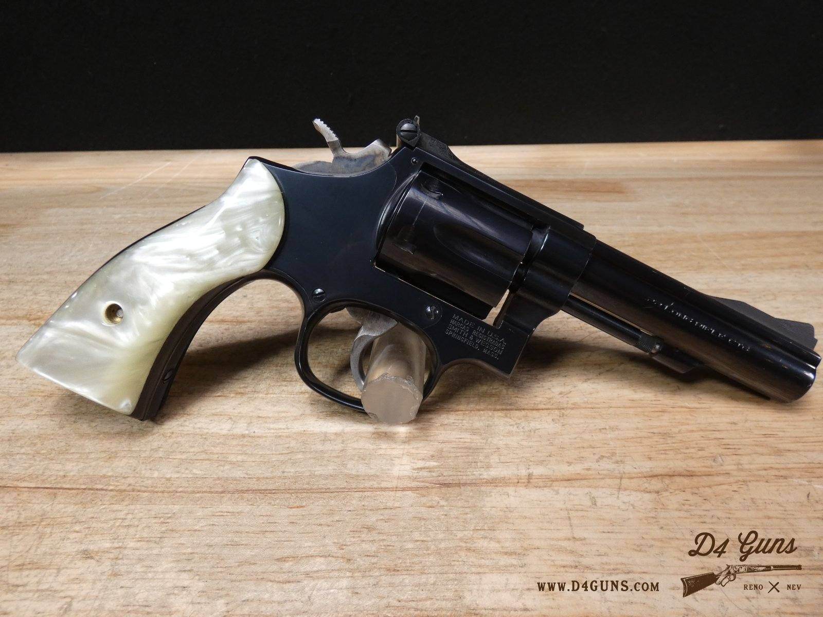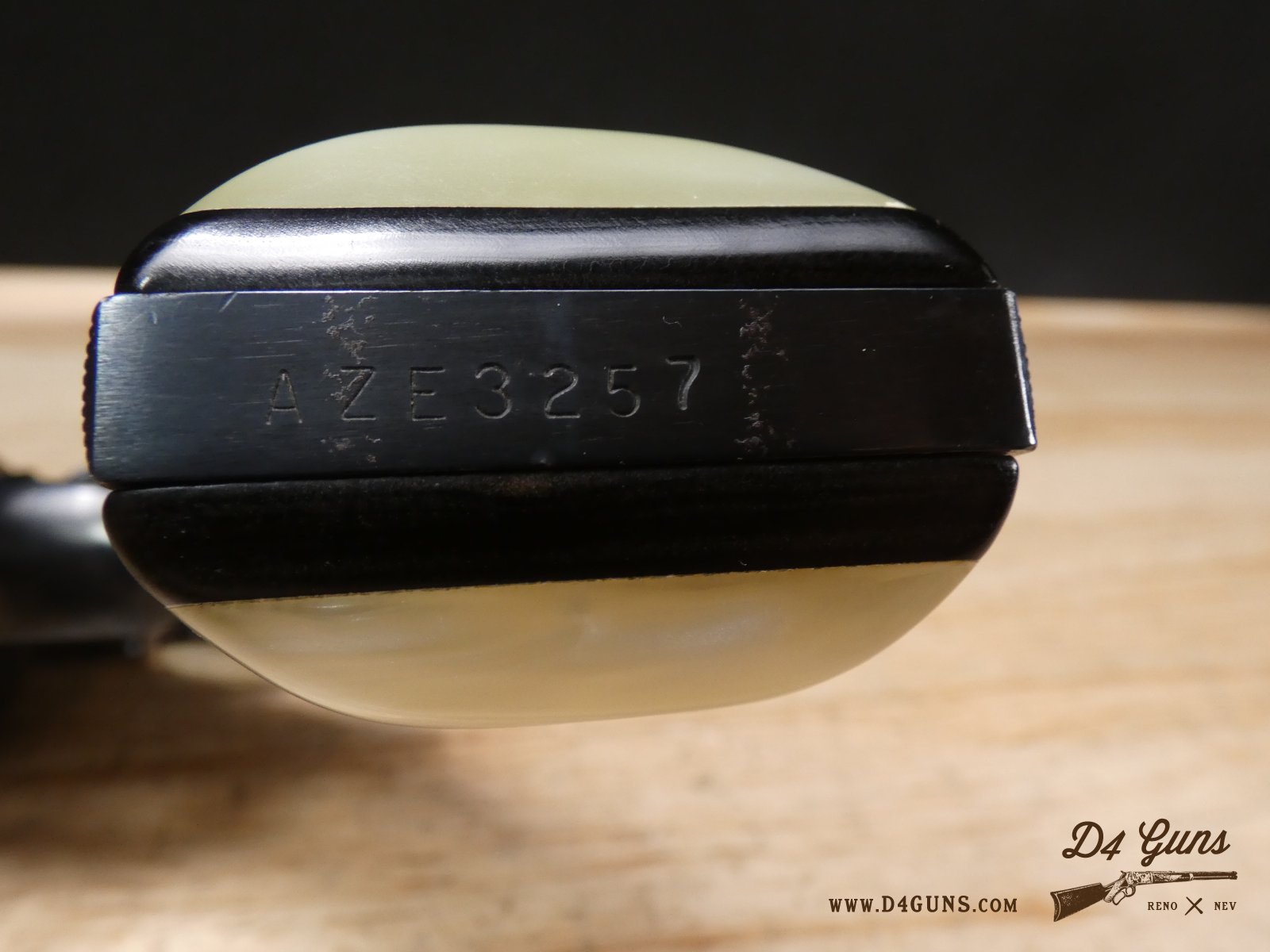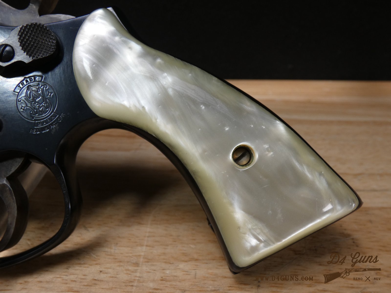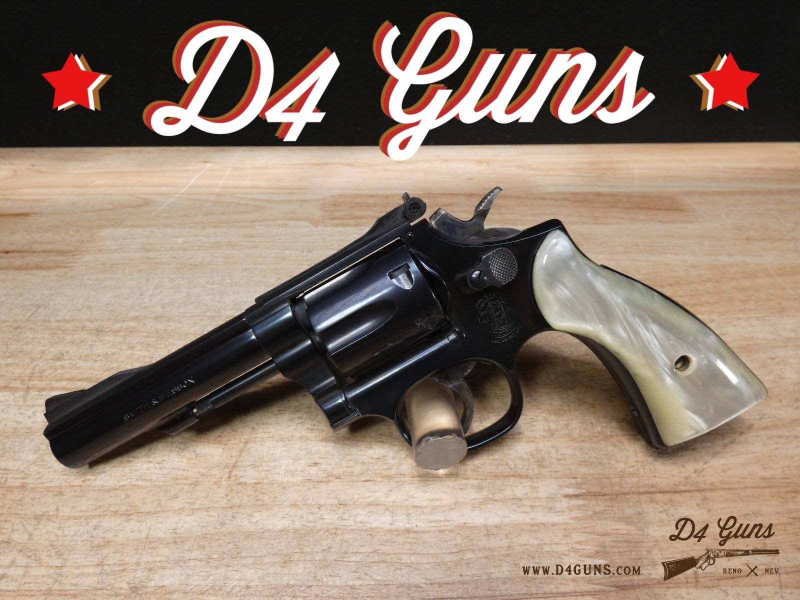 For sale is a Smith & Wesson Model 17-5 double-action revolver in .22 LR. Serial number- AZE3257. This 17-5 is in good condition and features a 4" barrel, a six round cylinder and "pearl" grips. The Smith & Wesson Model 17 is a six-shot double-action revolver built on Smith & Wesson's medium-sized K-frame. The Model 17 is a timeless revolver that was often used for competition shooting. The Model 17 was revived by Smith & Wesson in 2009 as the Model 17 Masterpiece (this is not a recontinued revolver). V2-J3 Barrel Length: 4 Bore condition: Good