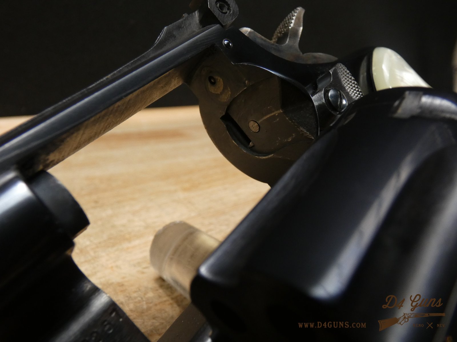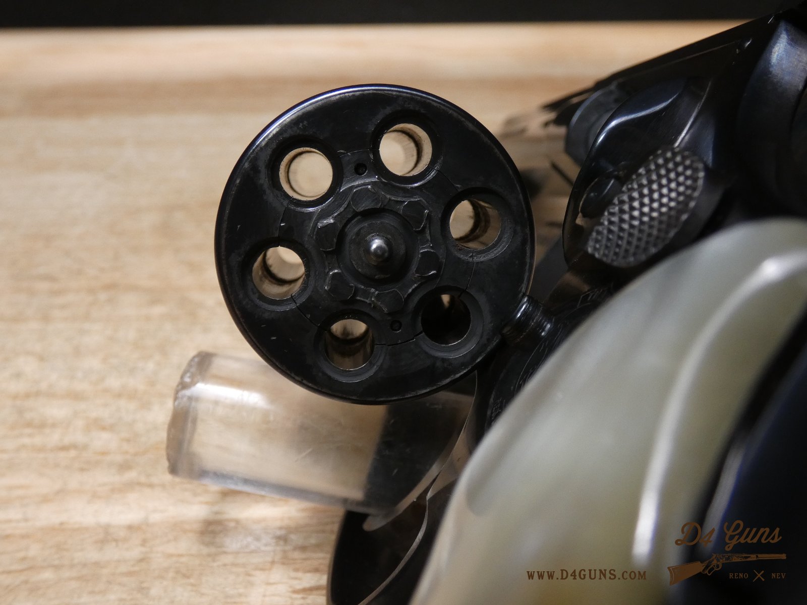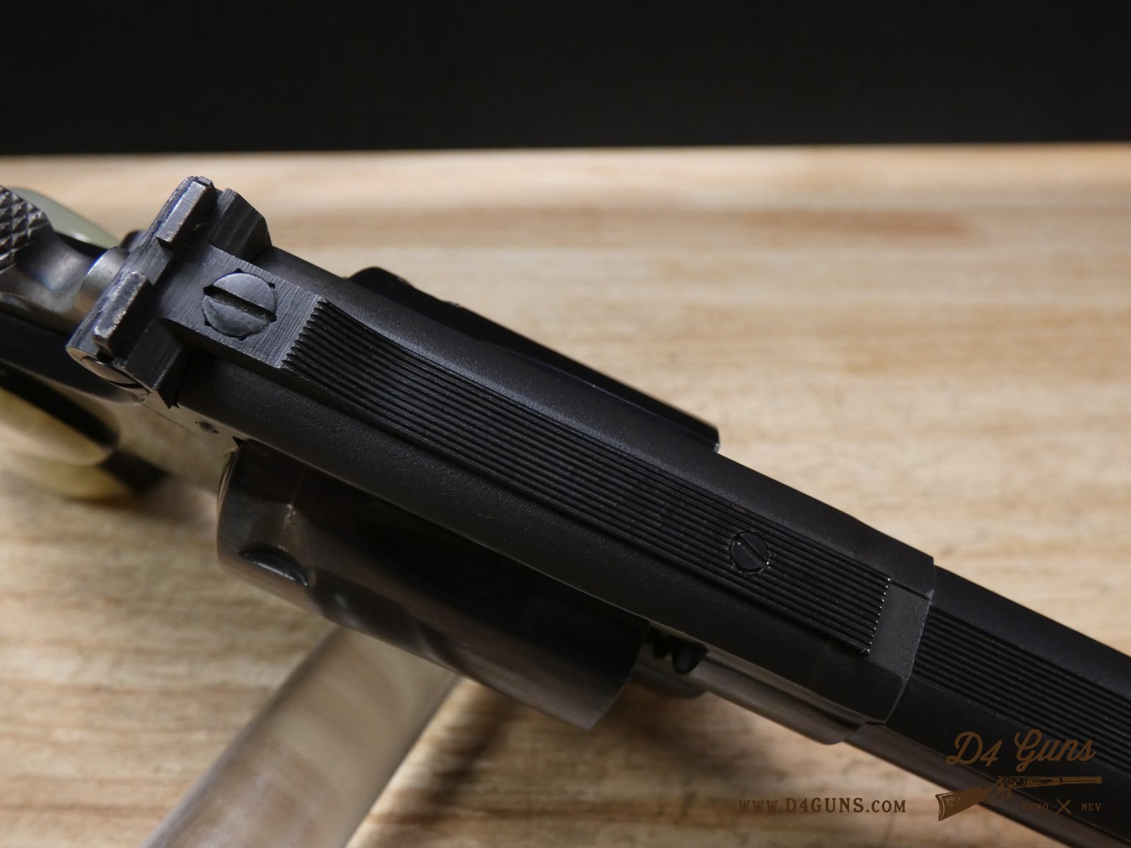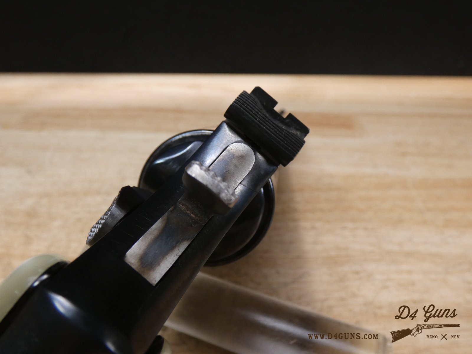 For sale is a Smith & Wesson Model 17-5 double-action revolver in .22 LR. Serial number- AZE3257. This 17-5 is in good condition and features a 4" barrel, a six round cylinder and "pearl" grips. The Smith & Wesson Model 17 is a six-shot double-action revolver built on Smith & Wesson's medium-sized K-frame. The Model 17 is a timeless revolver that was often used for competition shooting. The Model 17 was revived by Smith & Wesson in 2009 as the Model 17 Masterpiece (this is not a recontinued revolver). V2-J3 Barrel Length: 4 Bore condition: Good