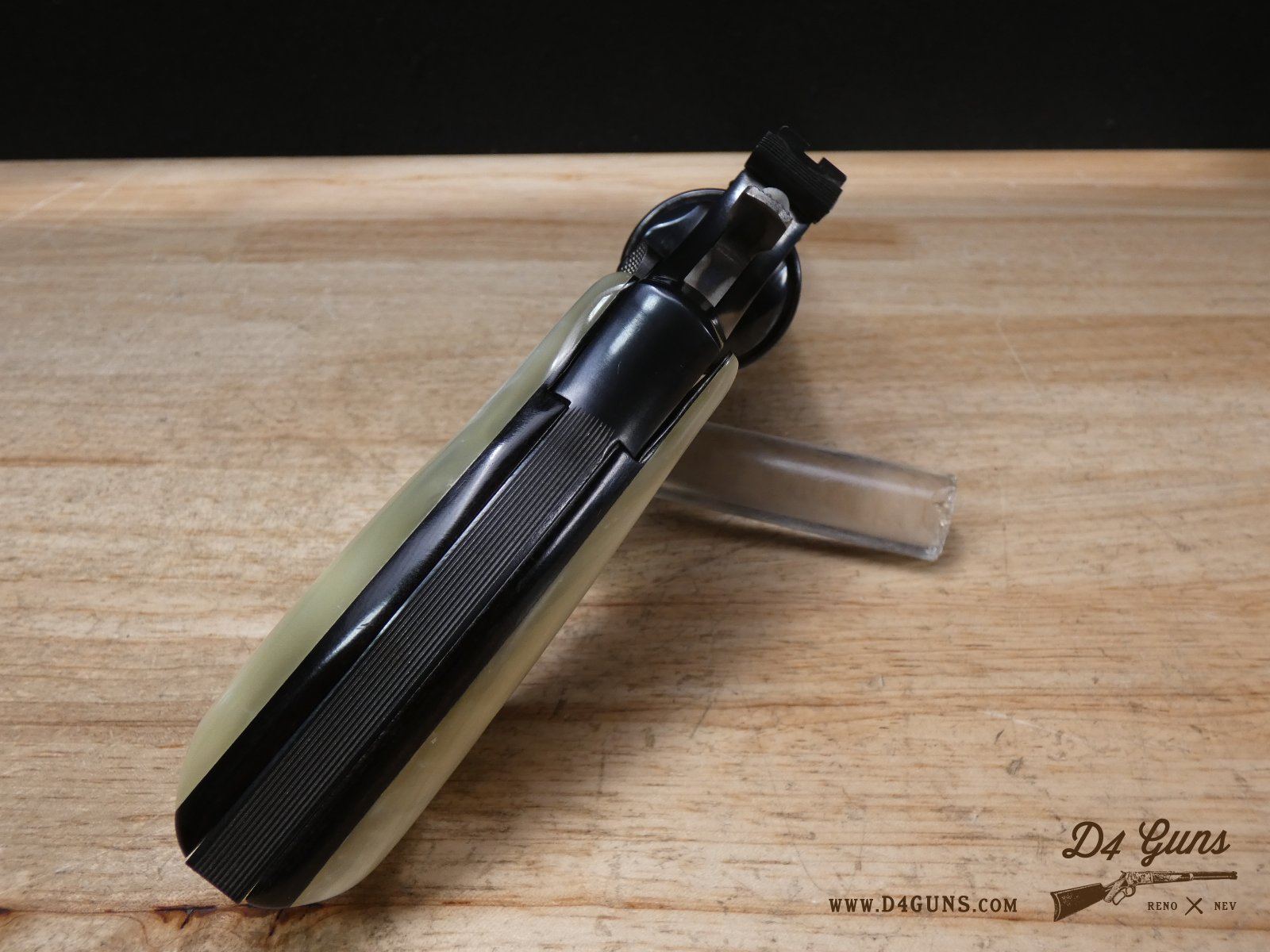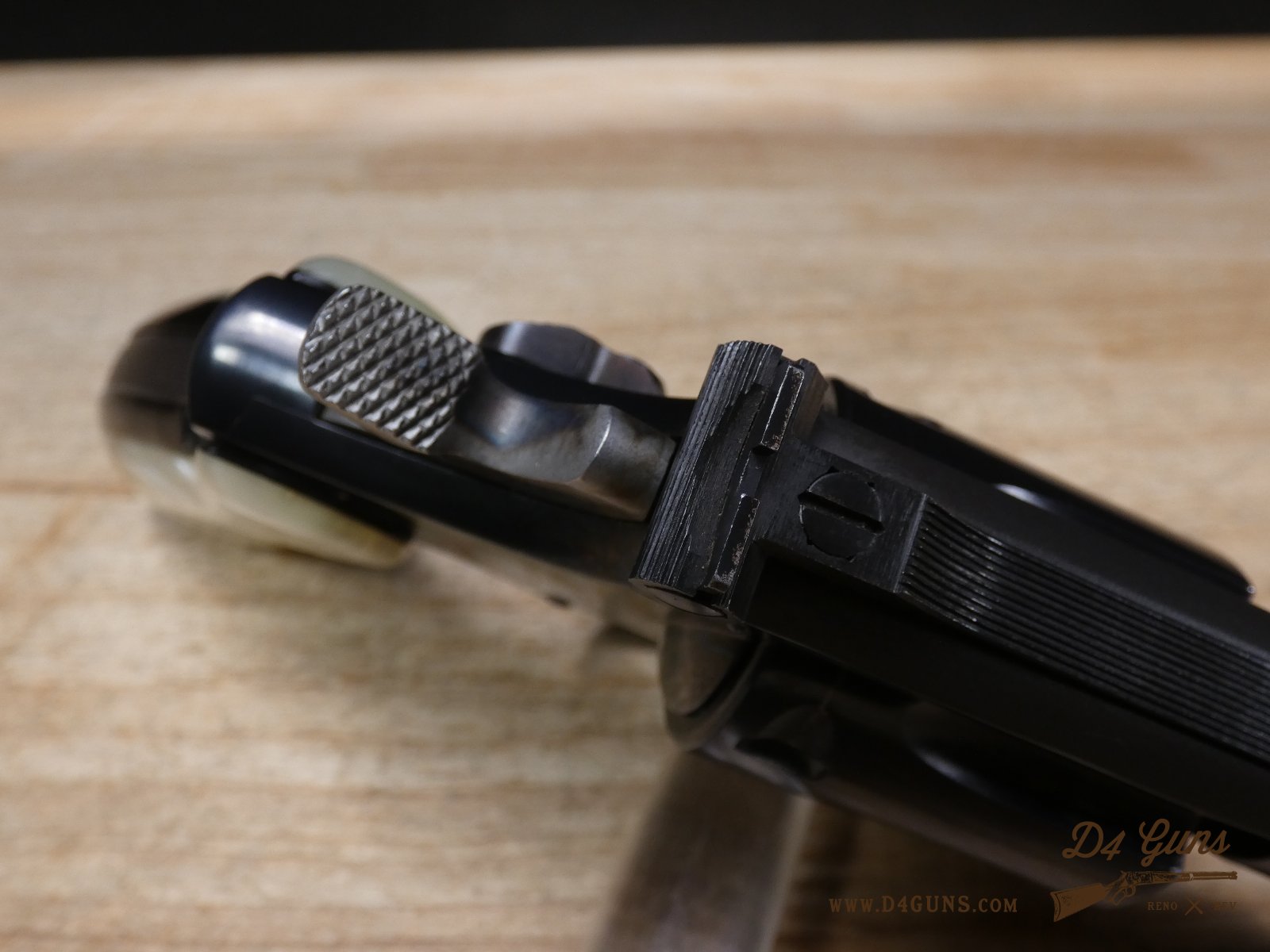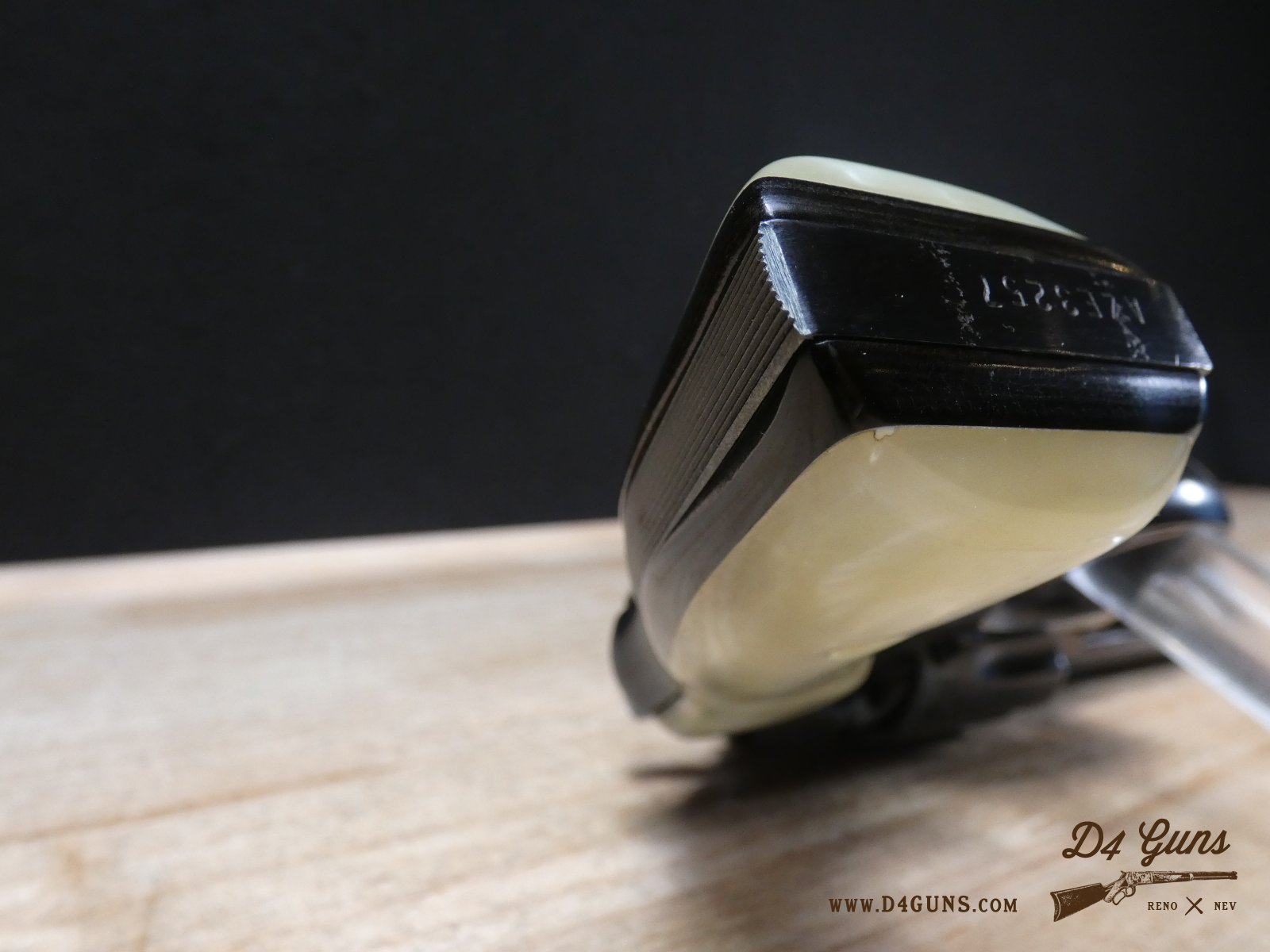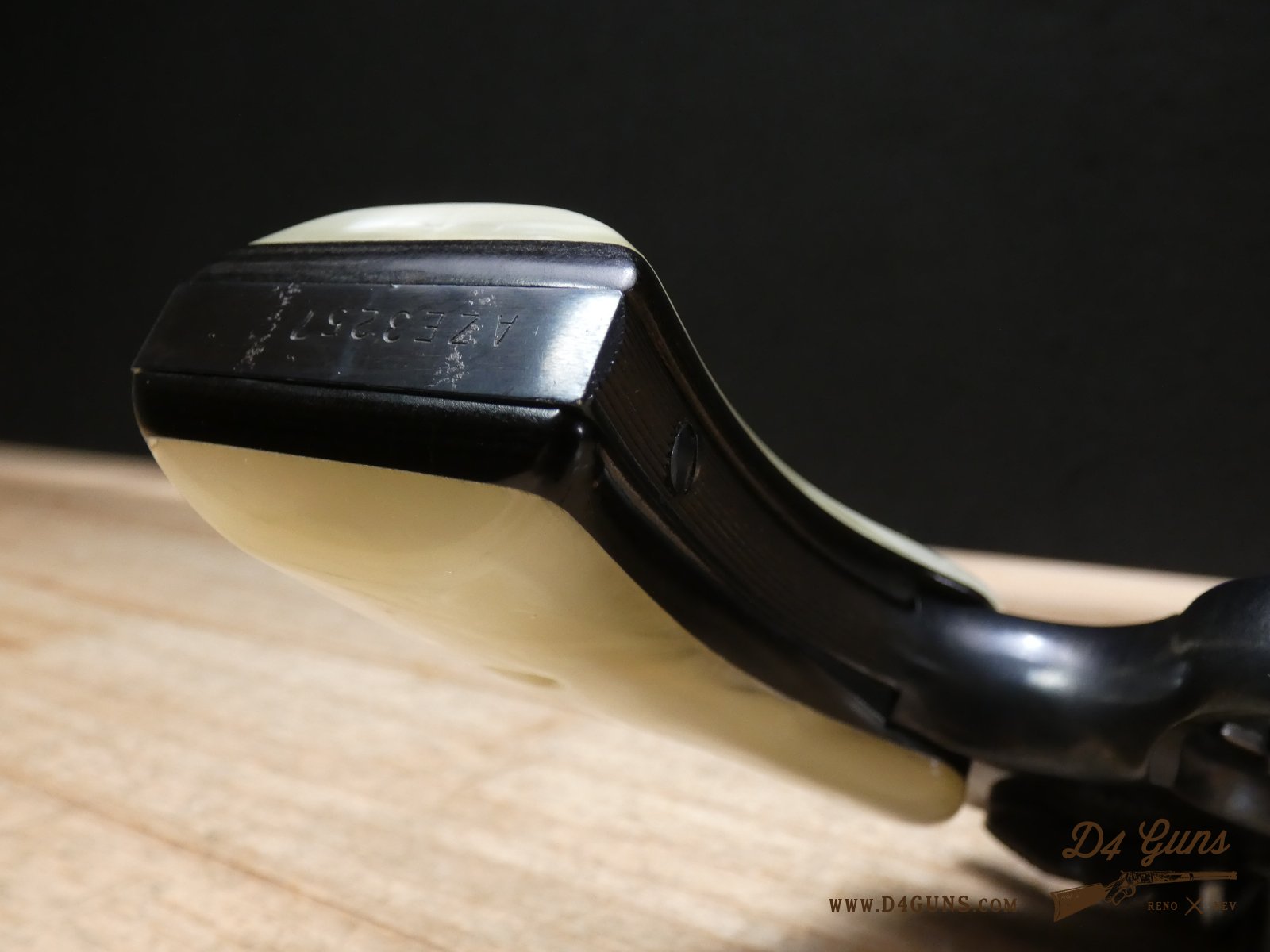 For sale is a Smith & Wesson Model 17-5 double-action revolver in .22 LR. Serial number- AZE3257. This 17-5 is in good condition and features a 4" barrel, a six round cylinder and "pearl" grips. The Smith & Wesson Model 17 is a six-shot double-action revolver built on Smith & Wesson's medium-sized K-frame. The Model 17 is a timeless revolver that was often used for competition shooting. The Model 17 was revived by Smith & Wesson in 2009 as the Model 17 Masterpiece (this is not a recontinued revolver). V2-J3 Barrel Length: 4 Bore condition: Good