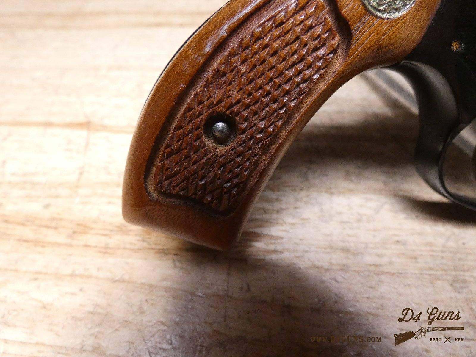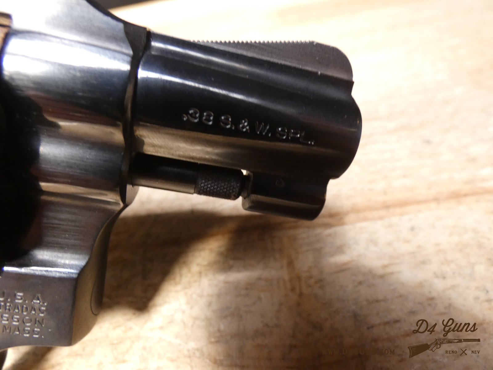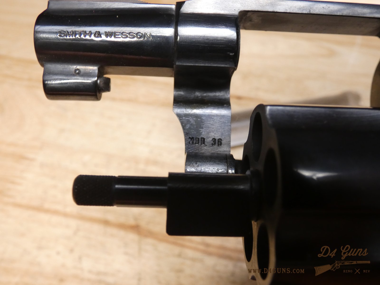 For sale is a Smith & Wesson Model 36 revolver in .38 S&W SPL. Serial number- ABV9143. This 5 shot Model 36 is in good condition. The Model 36 was designed in the era just after World War II, when Smith & Wesson stopped producing war materials and resumed normal production. For the Model 36, they sought to design a revolver that could fire the more powerful .38 Special round in a small, concealable package. The new design was introduced at the International Association of Chiefs of Police (IACP) convention in 1950, and was favorably received. A vote was held to name the new revolver, and the name "Chiefs Special" won. It was produced as the "Chiefs Special" until 1957, when it then became the Model 36. This revolver has proved to be reliable and popular for personal protection due to its size and weigh V2-E2 Barrel Length: 2 Bore condition: Good