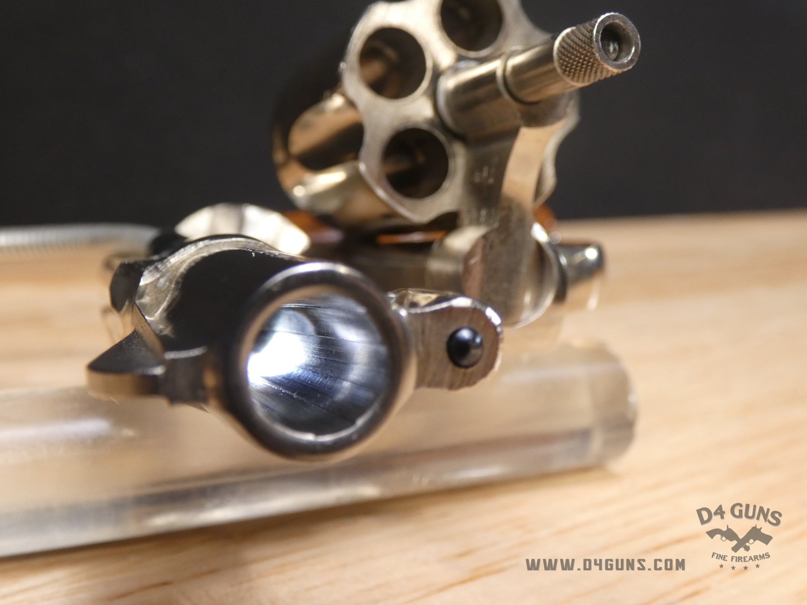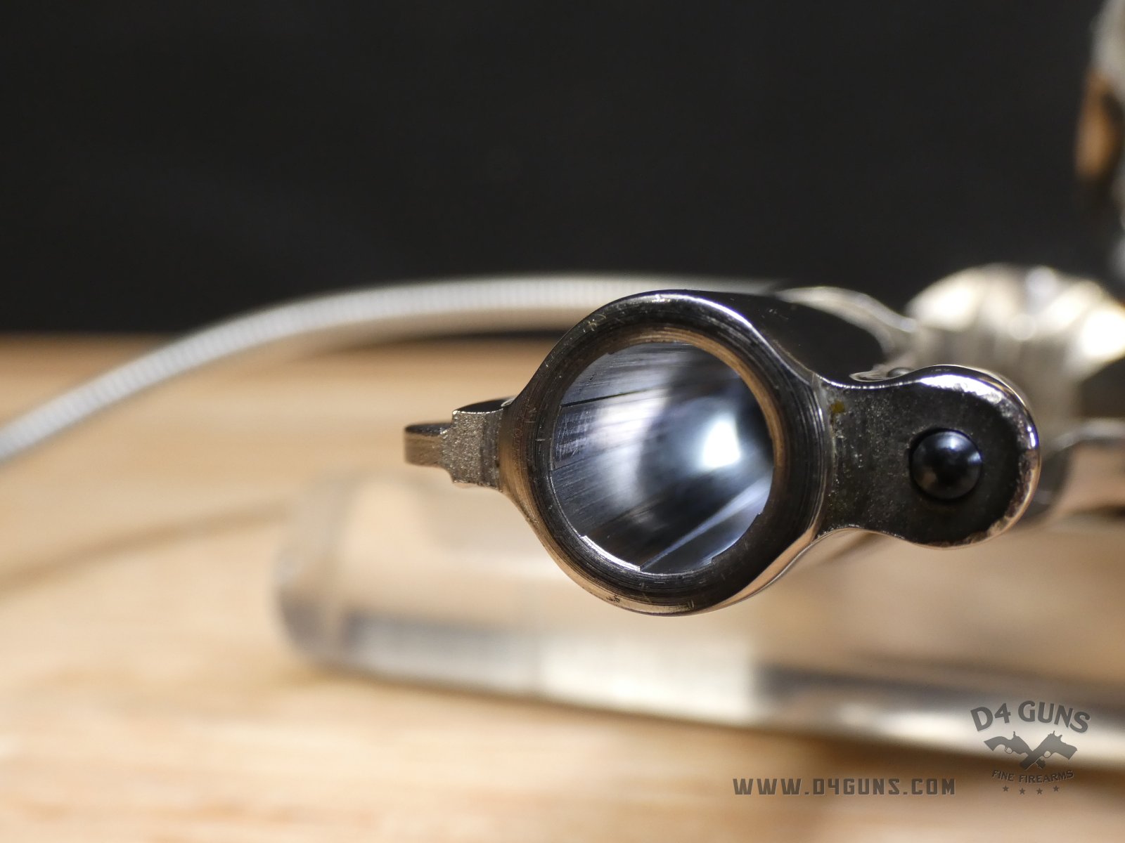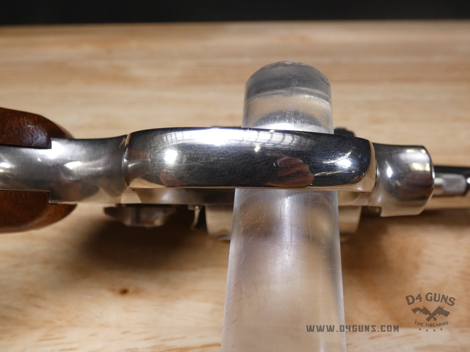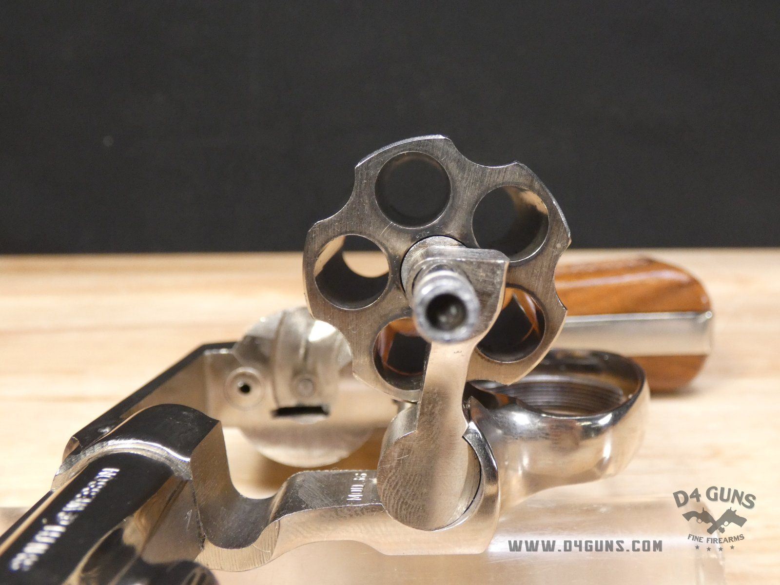 For sale is a Smith & Wesson Model 36 revolver in .38 S&W SPL. Serial number- 367J58. This 5 shot Model 36 is in good condition and features a nickel plated finish with wood grips. The Model 36 was designed in the era just after World War II, when Smith & Wesson stopped producing war materials and resumed normal production. For the Model 36, they sought to design a revolver that could fire the more powerful .38 Special round in a small, concealable package. The new design was introduced at the International Association of Chiefs of Police (IACP) convention in 1950, and was favorably received. A vote was held to name the new revolver, and the name "Chiefs Special" won. It was produced as the "Chiefs Special" until 1957, when it then became the Model 36. This revolver has proved to be reliable and popular for personal protection due to its size and weight. V2-E1 Barrel Length: 2 Bore condition: Excellent