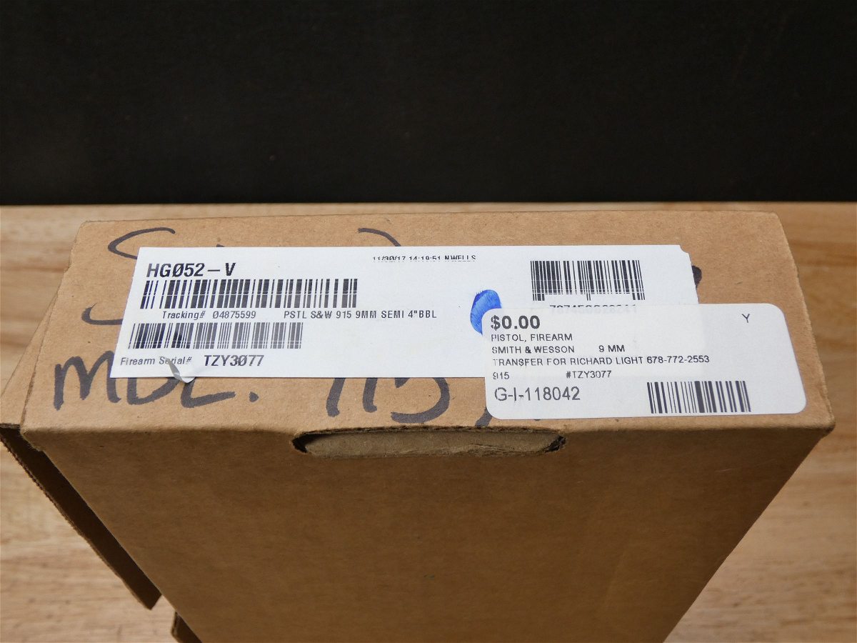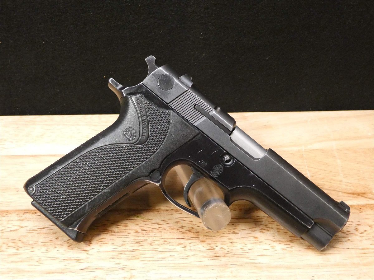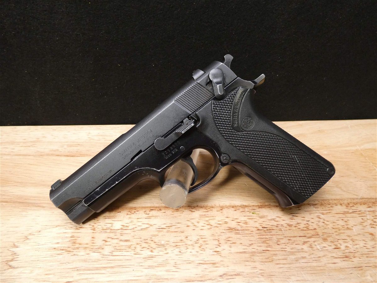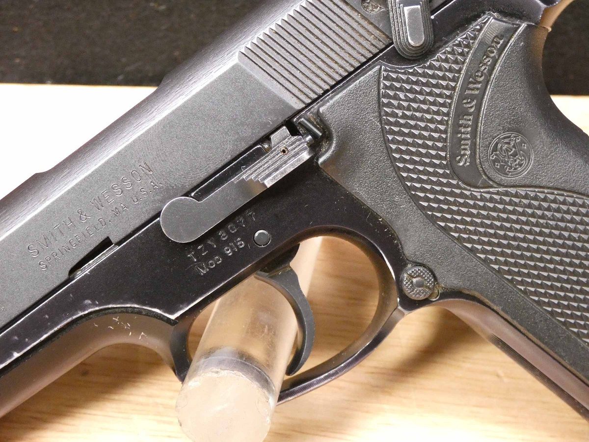 For sale is a Smith & Wesson Model 915 semi automatic pistol in 9MM. Serial number- TZY3077. This S&W 915 is in good condition and comes with a box and one 10-round magazine and one 15-round magazine. This 915 features a three point fixed sight, a 4 inch "9mm parabellum" stamped barrel, a rounded trigger guard and a left side only decocker lever/safety. The Smith & Wesson Model 915, introduced as a budget friendly 9mm semi-automatic pistol, is a personal-protection pistol which has a pronounced quality advantage over its sibling the Model 910 making it clear why this pistol has continued to have a loyal following many years after being discontinued. V2-E1 Barrel Length: 4 Bore condition: Excellent