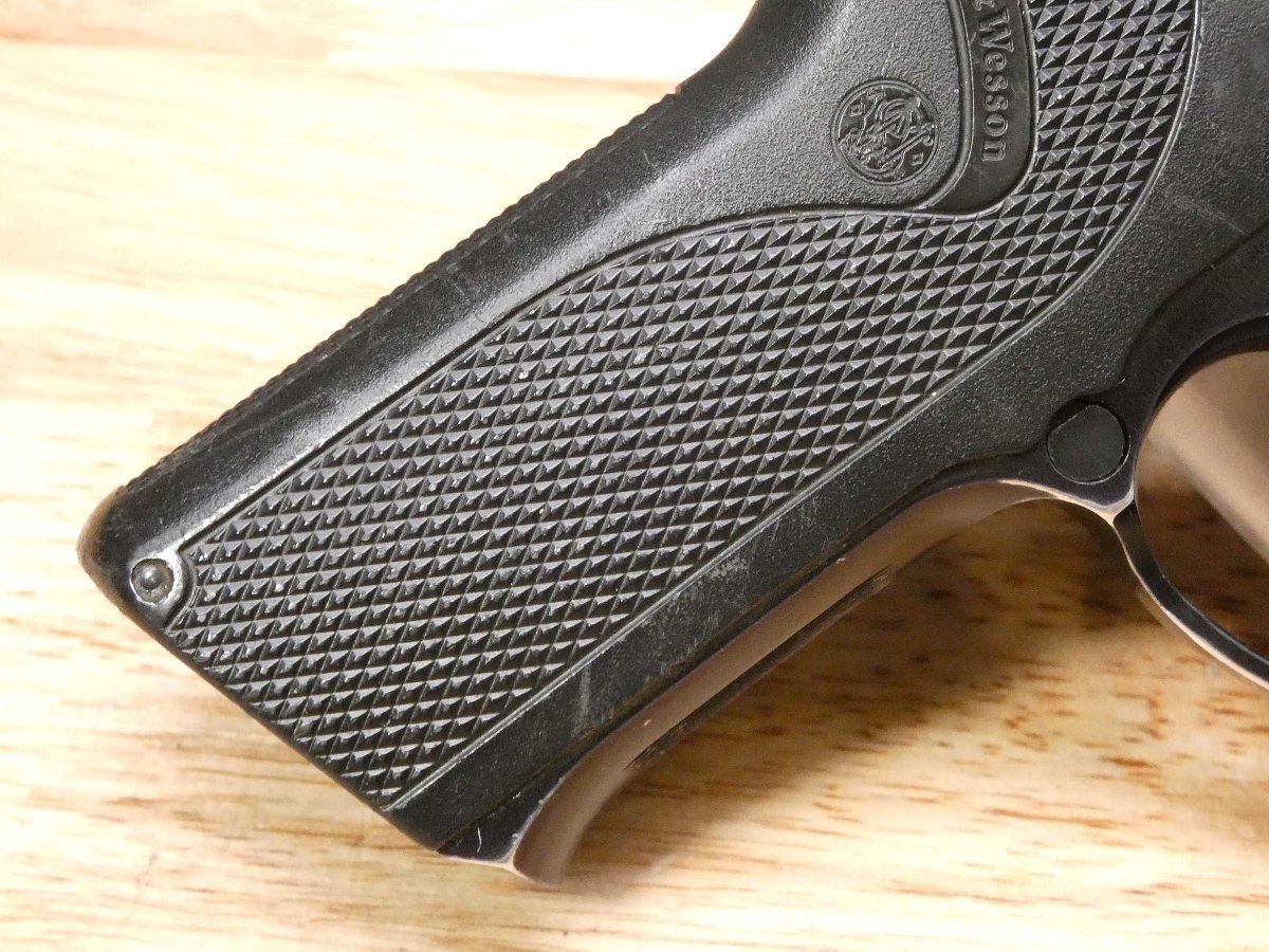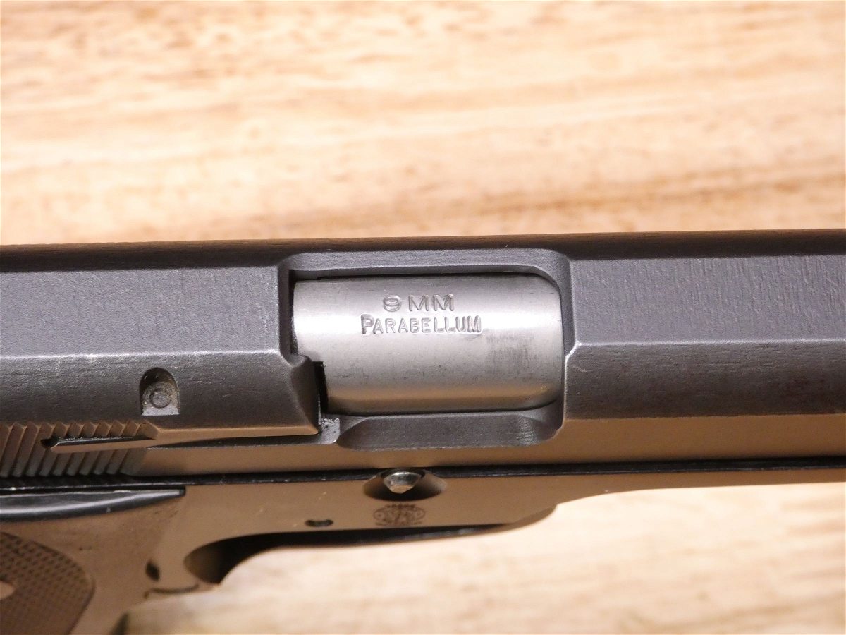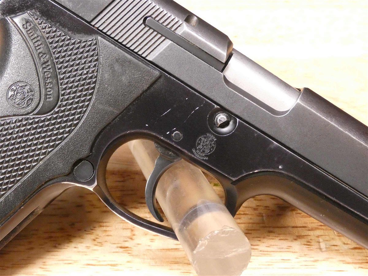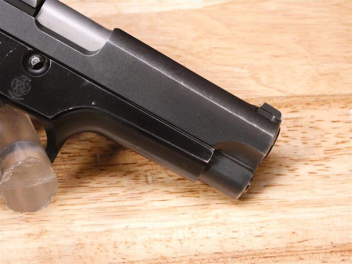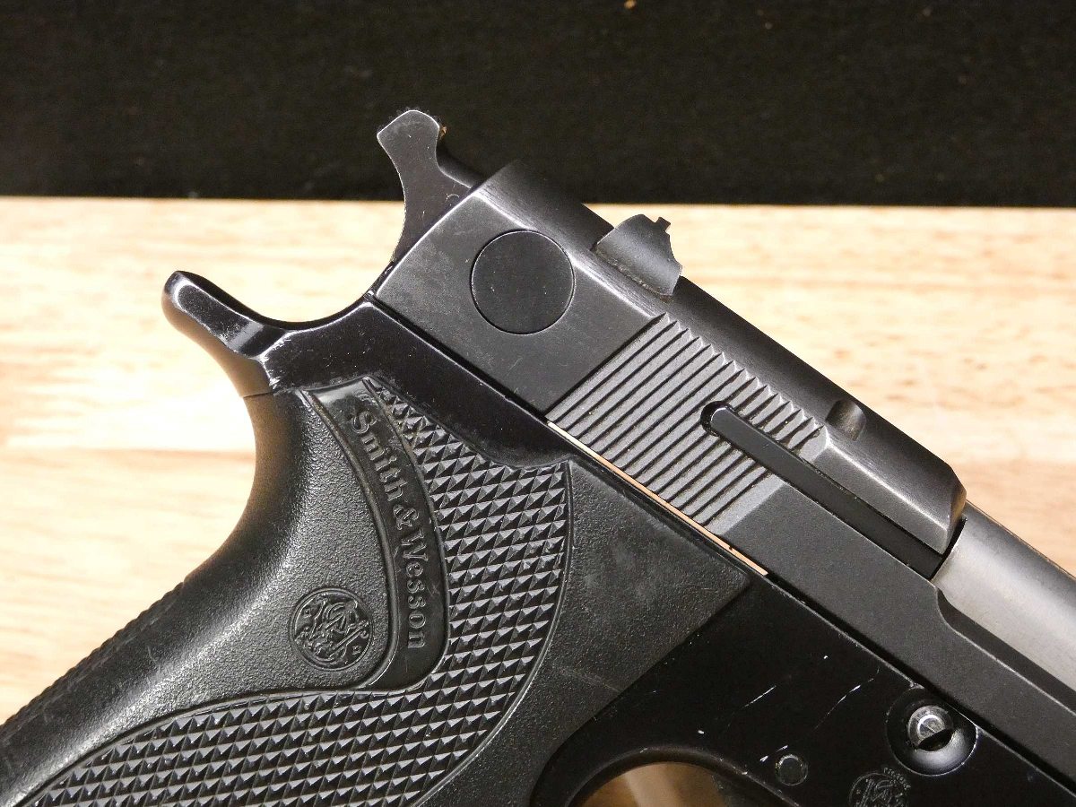 For sale is a Smith & Wesson Model 915 semi automatic pistol in 9MM. Serial number- TZY3077. This S&W 915 is in good condition and comes with a box and one 10-round magazine and one 15-round magazine. This 915 features a three point fixed sight, a 4 inch "9mm parabellum" stamped barrel, a rounded trigger guard and a left side only decocker lever/safety. The Smith & Wesson Model 915, introduced as a budget friendly 9mm semi-automatic pistol, is a personal-protection pistol which has a pronounced quality advantage over its sibling the Model 910 making it clear why this pistol has continued to have a loyal following many years after being discontinued. V2-E1 Barrel Length: 4 Bore condition: Excellent