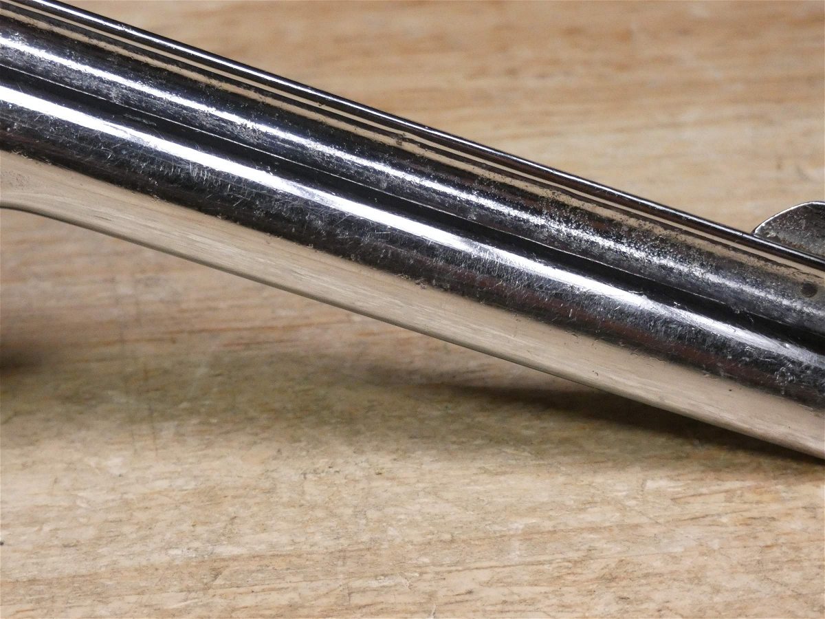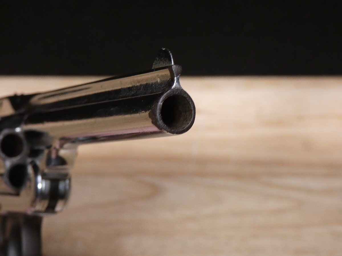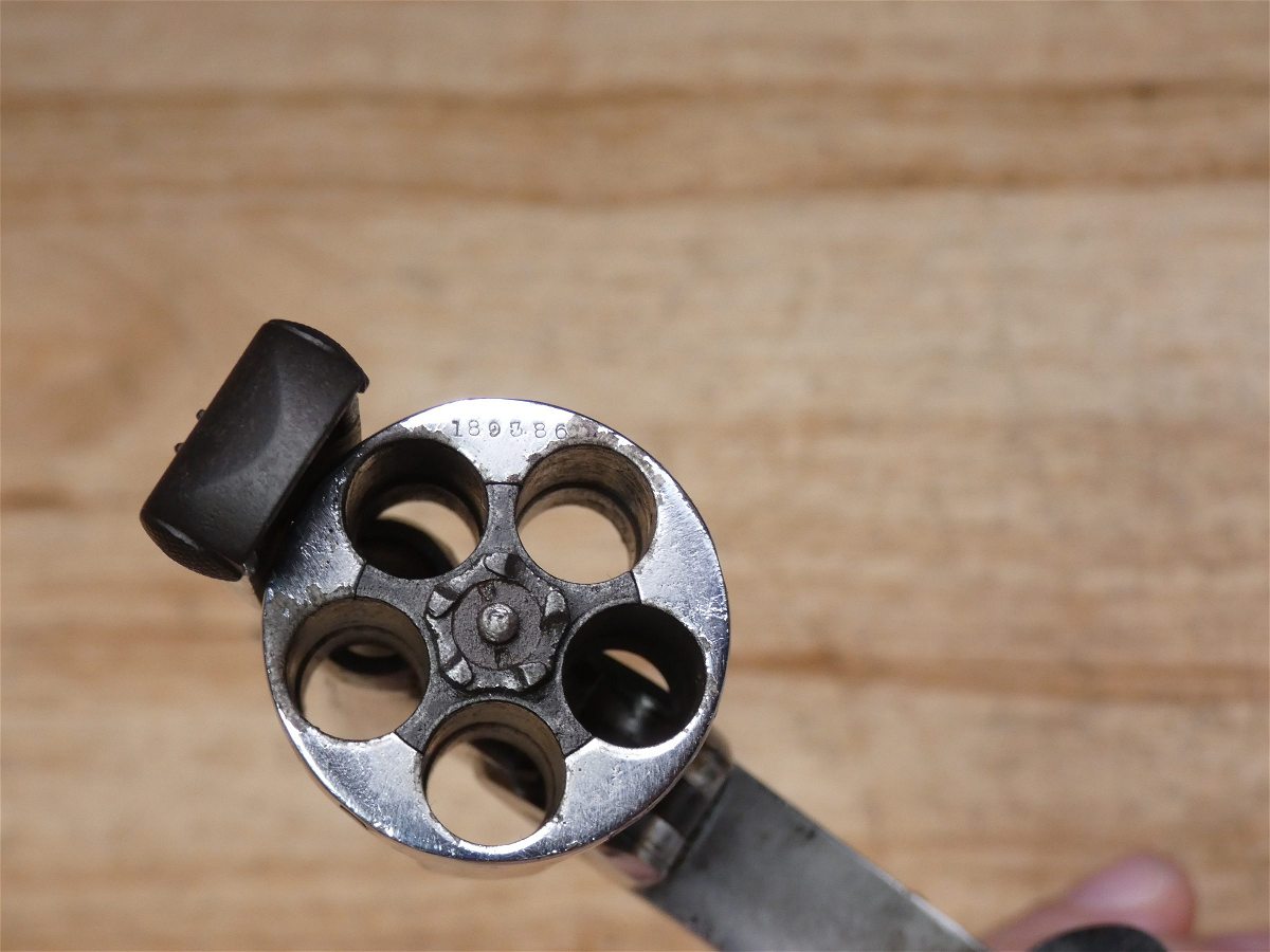 This Smith & Wesson Safety Hammerless or The New Departure was nicknamed by collectors as the Lemon Squeezer. It is a double-action revolver that was produced from 1887 to 1940 by Smith & Wesson. Based on the Smith & Wesson Model 2 double-action design, the revolver incorporated an internal hammer and an external grip safety on its backstrap. These top-break revolvers were designed for fast reloading and concealed carry as the hammer was internal and would not snag on drawing the revolver from a pocket. They were known as "The New Departure" to reflect the company's new approach to designing revolvers. V2-E4 Barrel Length: 5 Bore condition: Good