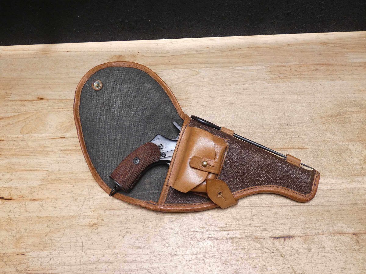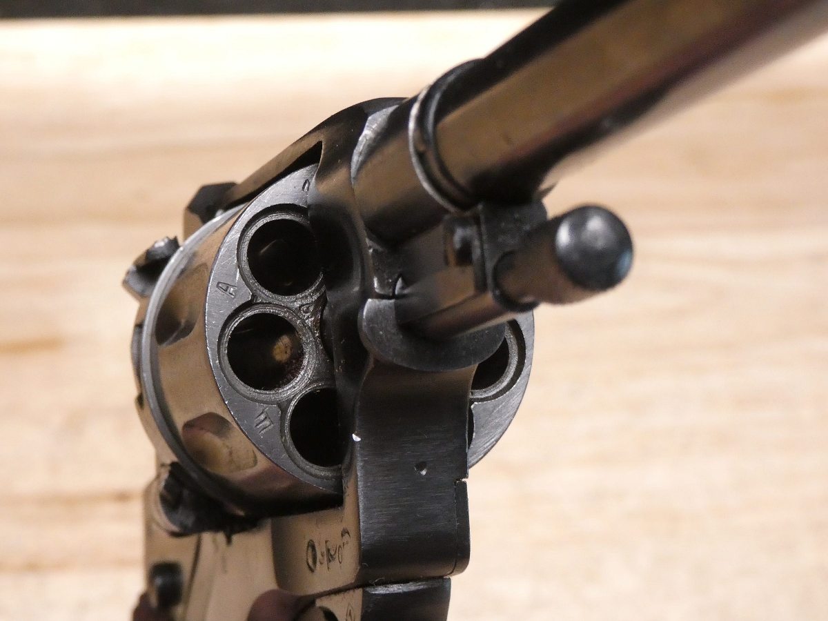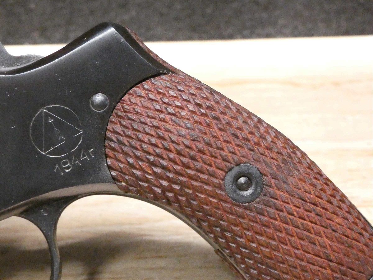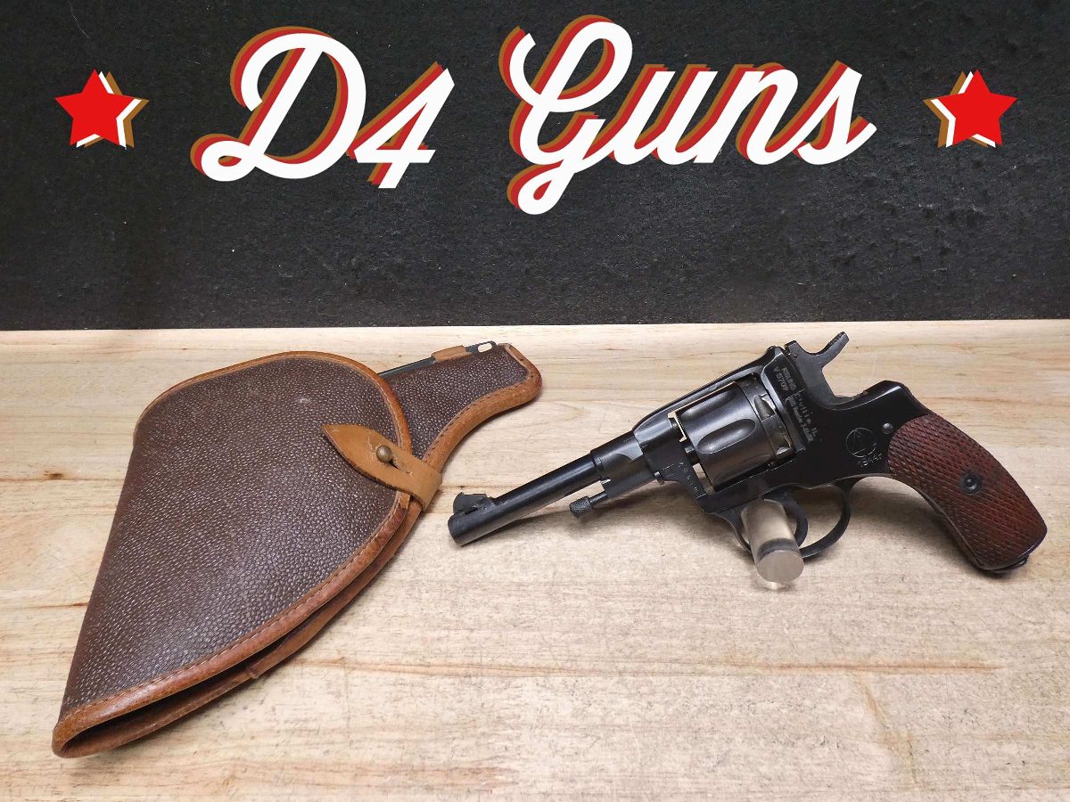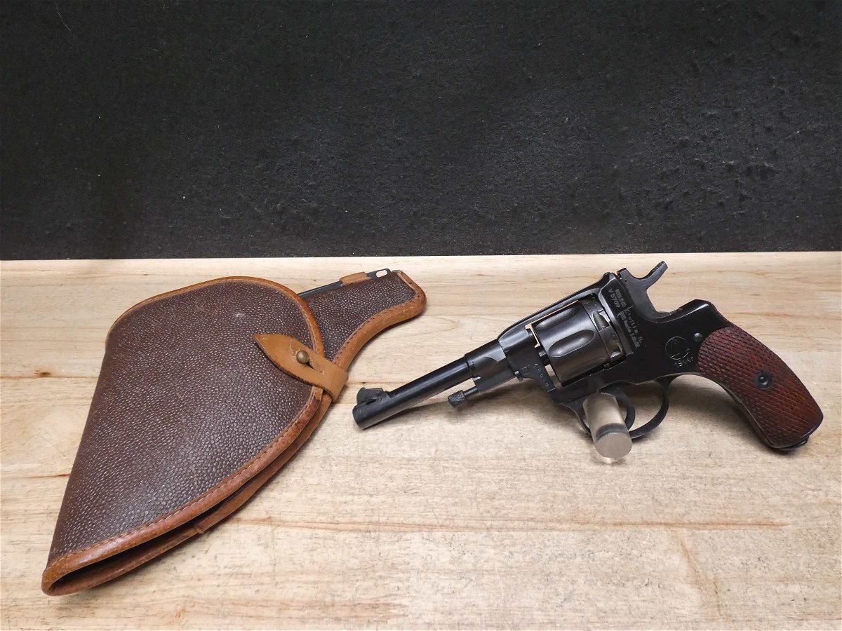 For sale is an Izhevsk Nagant M1895 double-action revolver in 7.62x38mmR. Serial number – V5709. Mfg Dated: 1944. This revolver is in great condition especially considering its age. It also comes with an issued Soviet Nagant holster with the cleaning rod. This iconic Russian pistol was adopted by Imperial Russia and later the Soviet Union. It served Russia during World War I and World War II. A unique feature of the M1895 Nagant is the cylinder that slides forward and seals the cylinder gap. The sealing feature also made it possible to suppress the revolver marking the sidearm as the first suppressible revolver. V2-D3 Barrel Length: 4.5 Bore condition: Good Year Manufactured: 1944